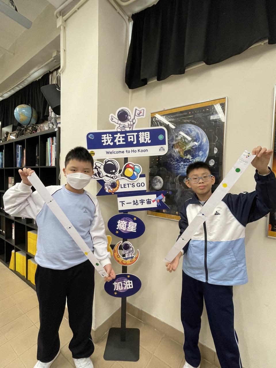 為配合常識科學習主題「科技與創新」,本校安排六年級各班學生分別於11月尾及十二月初參與「可觀詮宇宙」小學科學探究課程(我們的太陽系),他們透過體驗式戶外參觀活動進行全方位學習。學生在學習過程中透過製作活動、運用濾光鏡觀測太陽、模擬星象館等設施,了解太陽系、地球與宇宙星空的關係,以培養學生保護環境的態度。