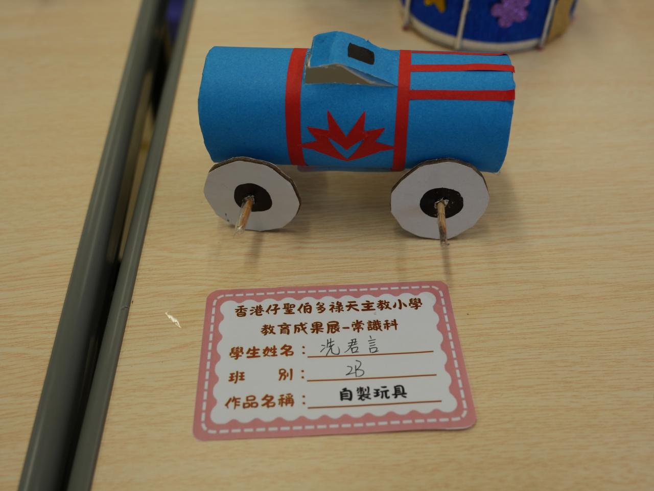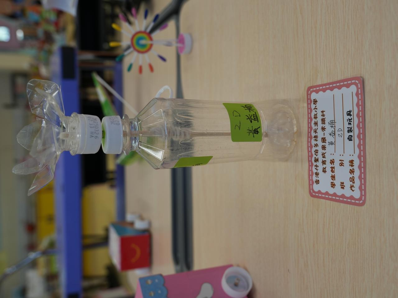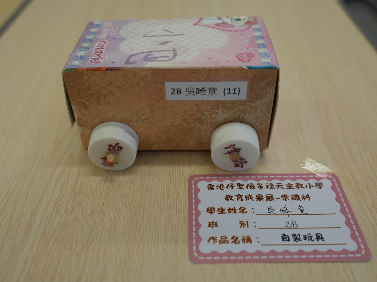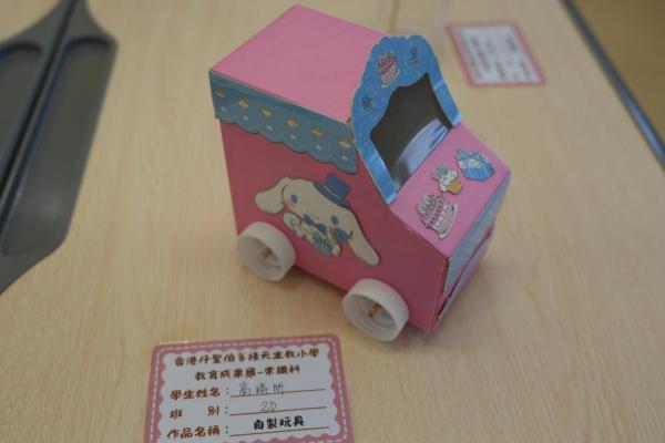 二年級學生利用回收物自行製作一個玩具,讓學生發揮創意之餘,亦希望他們養成環保生活的習慣。