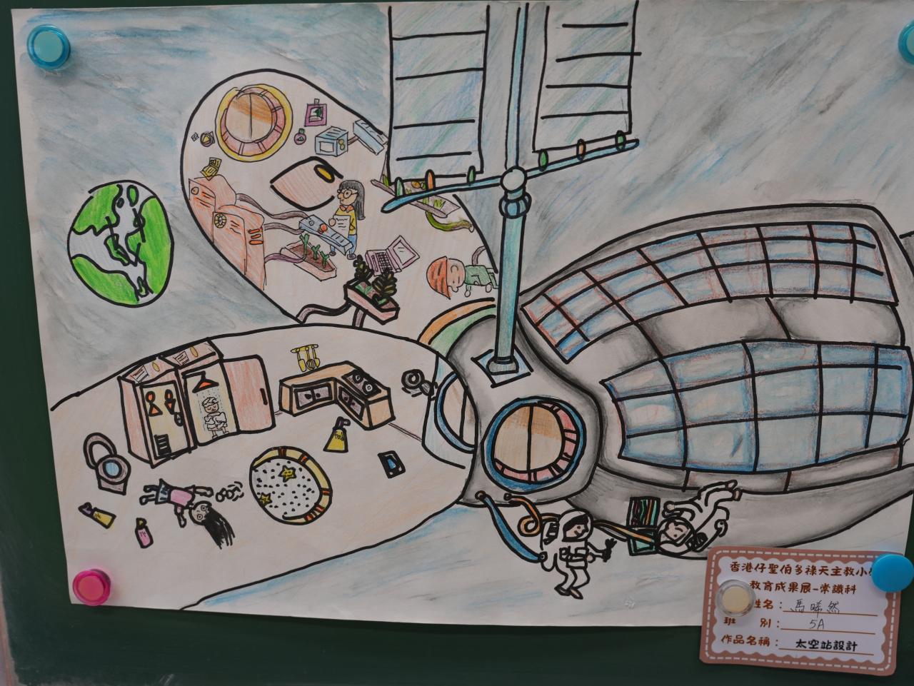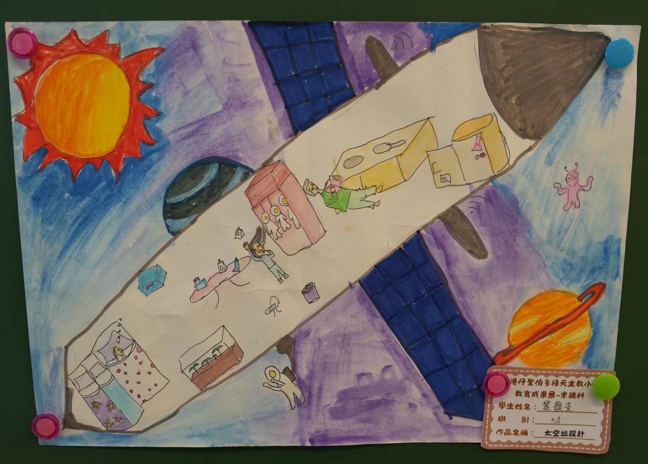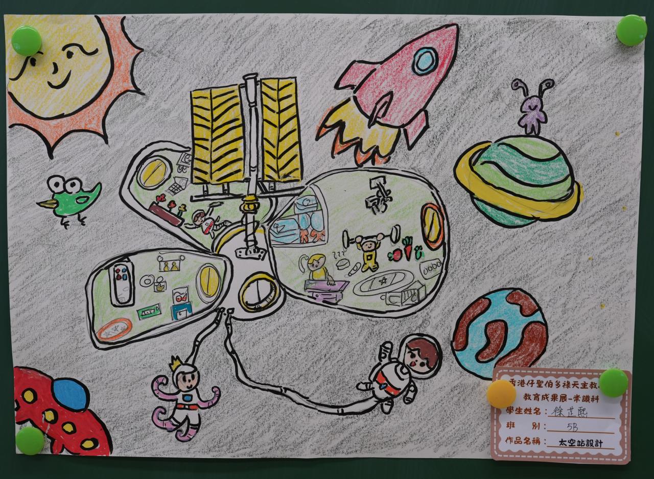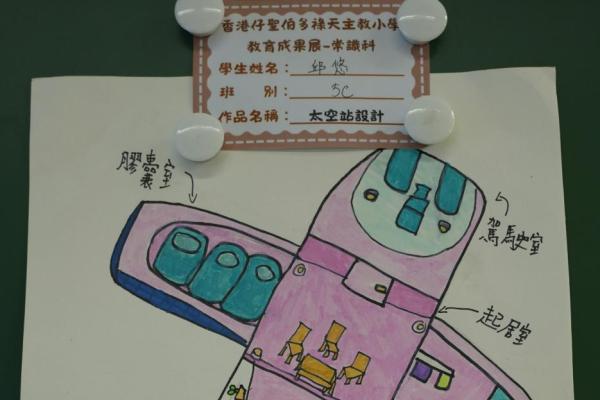 五年級學生為解決太空人在太空生活中遇到的困難,學生設計太空站,希望能給太空人在太空中有舒適的環境居住,藉此讓學生發揮創意之餘,亦認識太空科技與日常生活的關係。