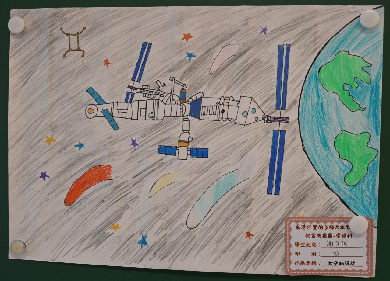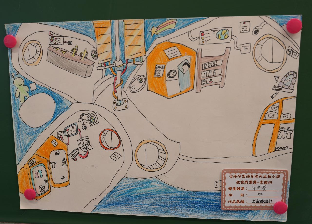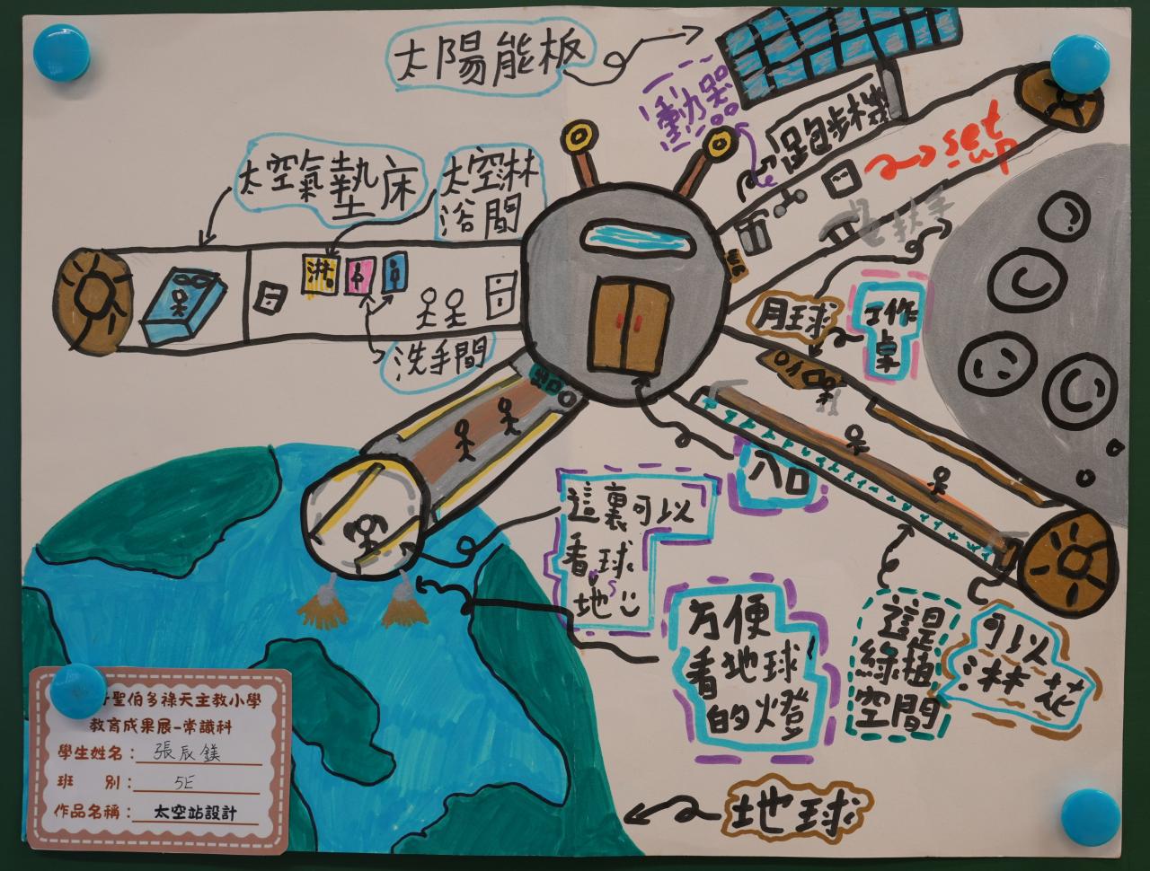 五年級學生為解決太空人在太空生活中遇到的困難,學生設計太空站,希望能給太空人在太空中有舒適的環境居住,藉此讓學生發揮創意之餘,亦認識太空科技與日常生活的關係。
