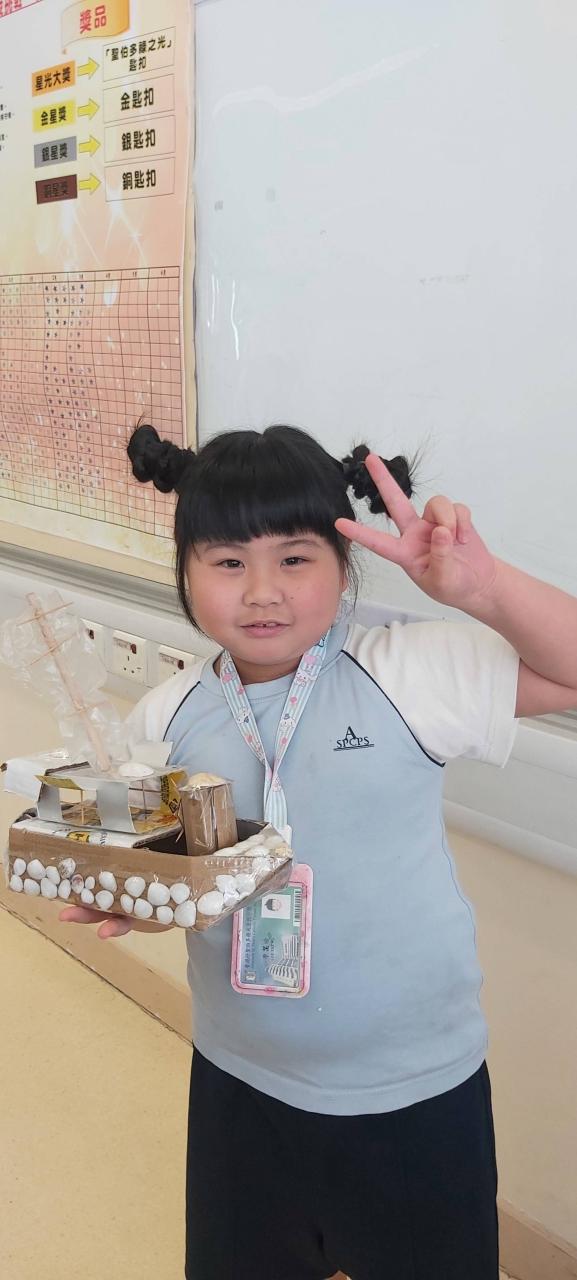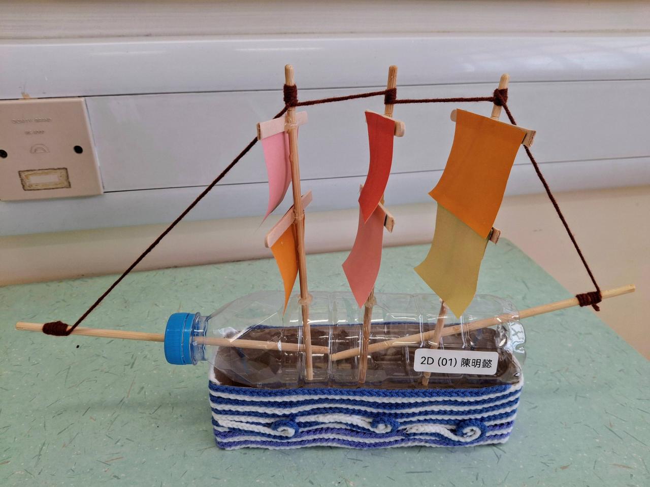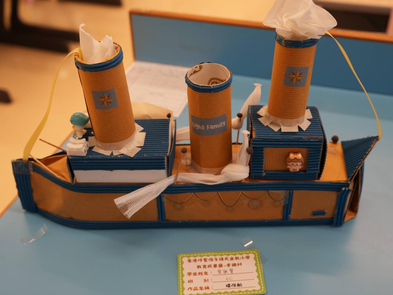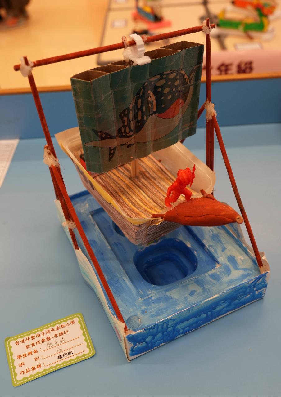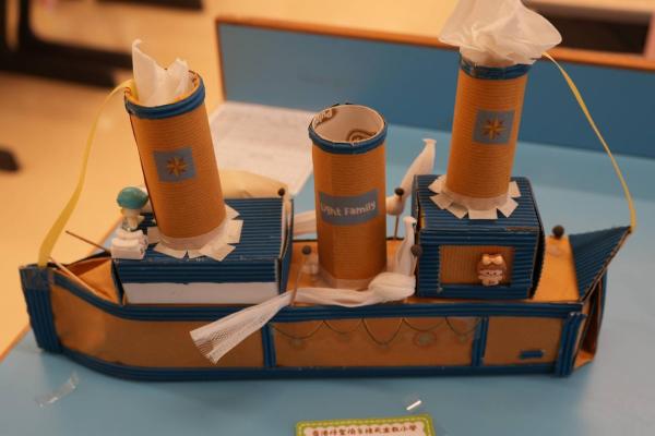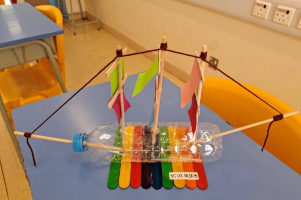 配合學校的學習主題口號–乘風破浪勇往前,學生於假期中設計並製作了一艘利用回收物製成的船,讓學生發揮他們的創意。