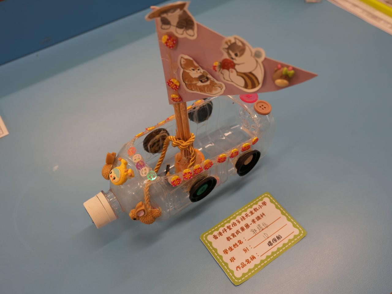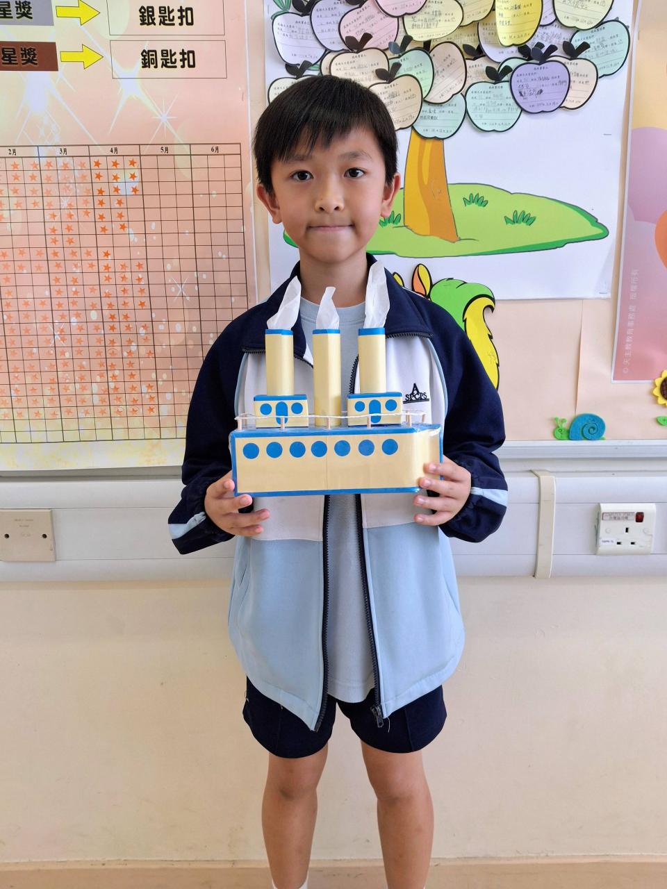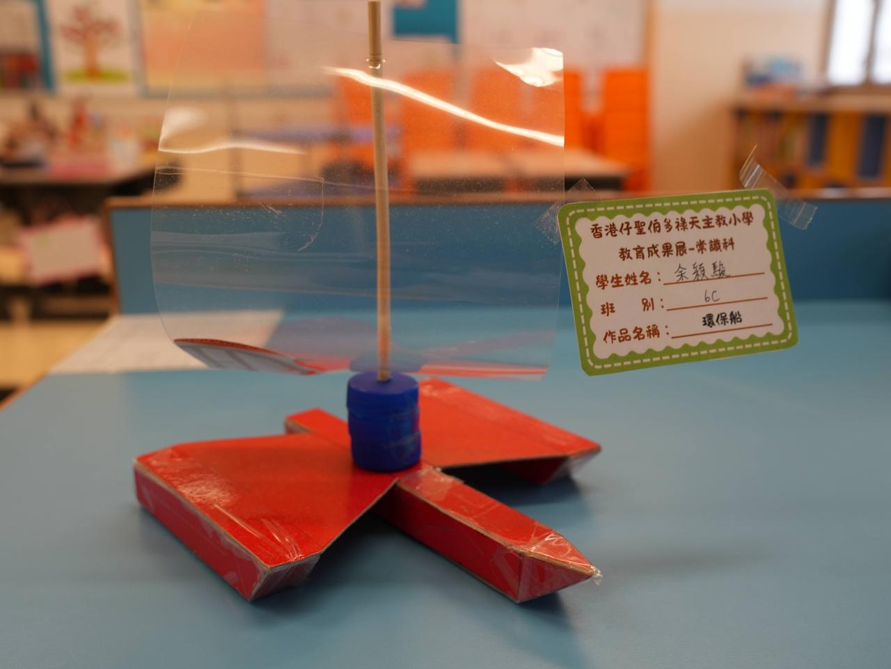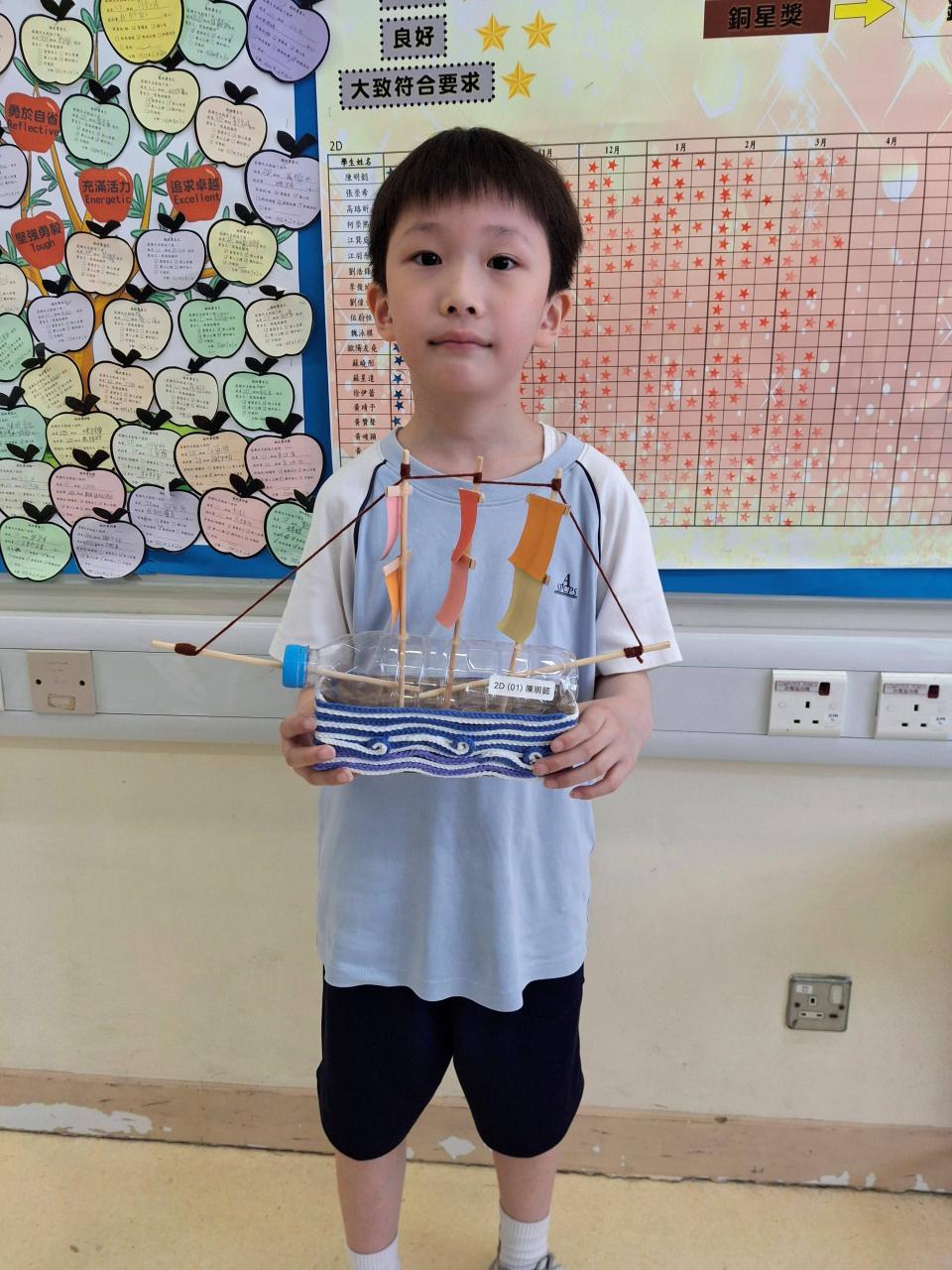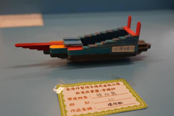 配合學校的學習主題口號–乘風破浪勇往前,學生於假期中設計並製作了一艘利用回收物製成的船,讓學生發揮他們的創意。