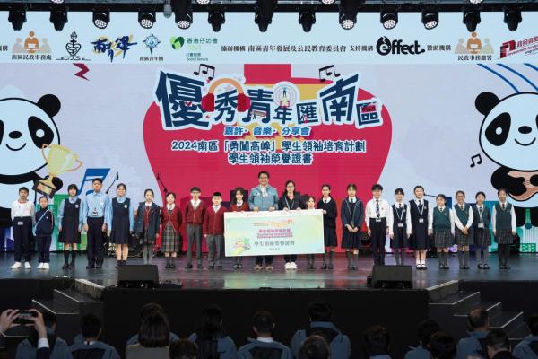 本校學生於領袖才能及藝術範疇方面有傑出的表現,獲得多個由南區民政事務處、南區學校聯會、南區青年團、南青鋒、香港仔坊會及南區青年發展及公民教育委員會頒發的獎項,並參與了於16/02/2025(日)晚上假香港海洋公園怡慶坊舉辦的「優秀青年匯南區 嘉許·音樂·分享會」,以及表揚一眾在個人有卓越表現、具領袖潛能,以及樂意為社區作出貢獻的青年。