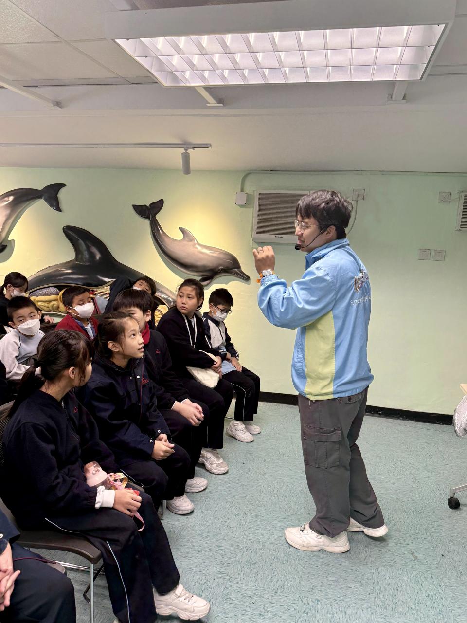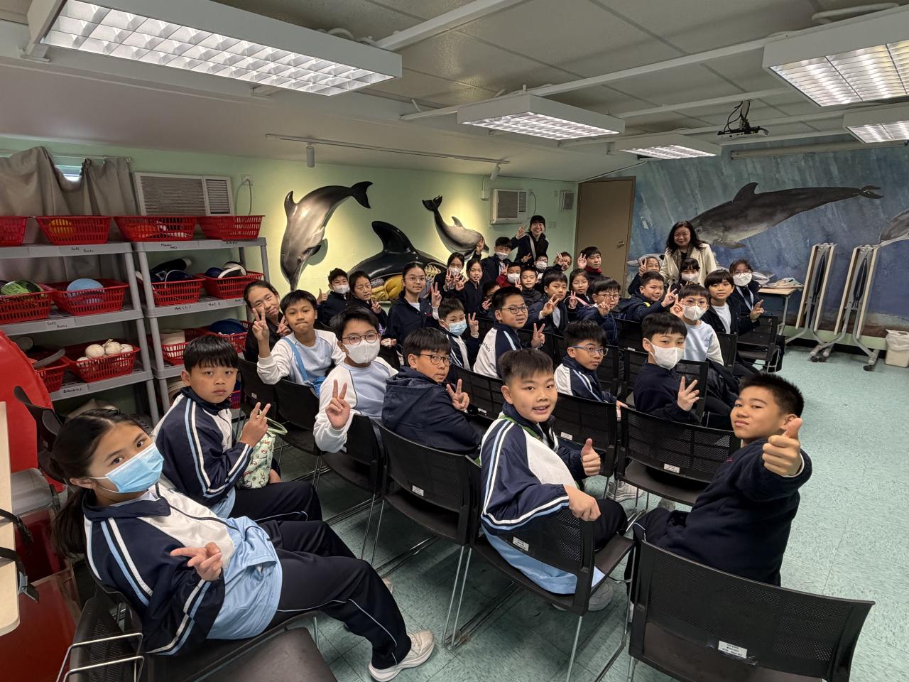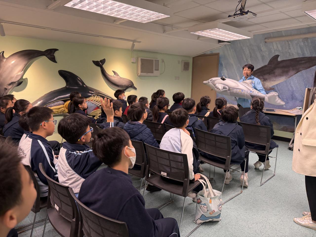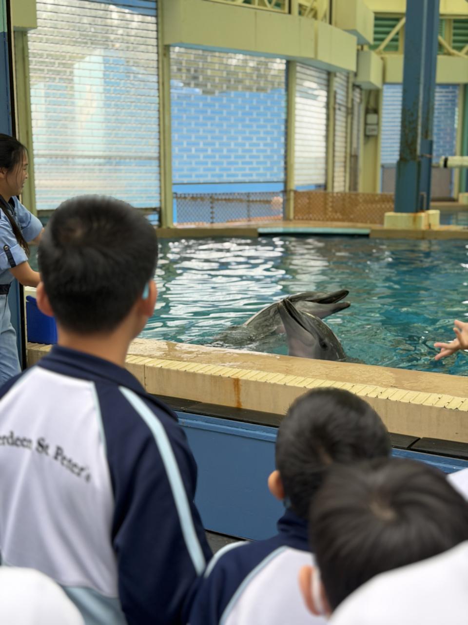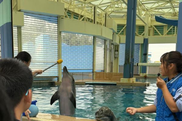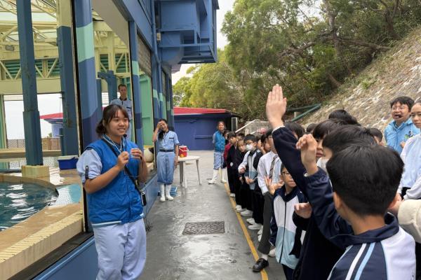 本校學生環境保護大使及小四至小六部分節能大使,前往香港海洋公園參加「搜證遊學豚」活動。同學們認識到海豚的特徵、生活習性與面臨的危機等,他們更踴躍參與搶答環節,勝出的同學贏得與海豚近距離互動的機會。活動中,大家積極向保育員提問,充滿好奇心的同學想知道海豚最長壽命、海豚智商等趣味知識。是次活動讓同學們在實踐中增長見識,了解到海豚面對的生存危機,知道要肩負起保護海洋的責任,亦會以環境保護大使及節能大使的身份,向同學們宣揚愛護環境的信息。 請觀看同學們的訪問,看看他們在這次活動的收穫。