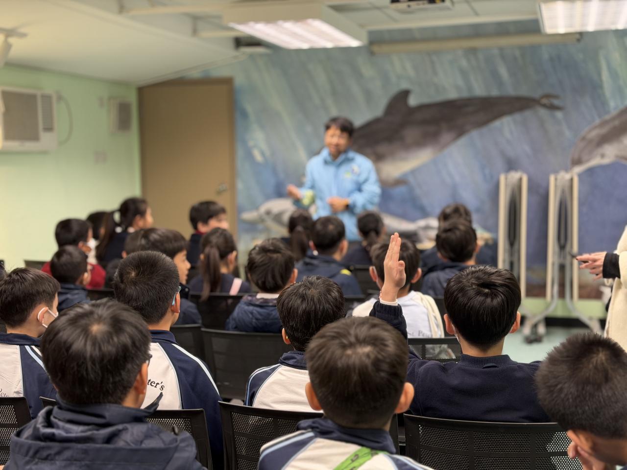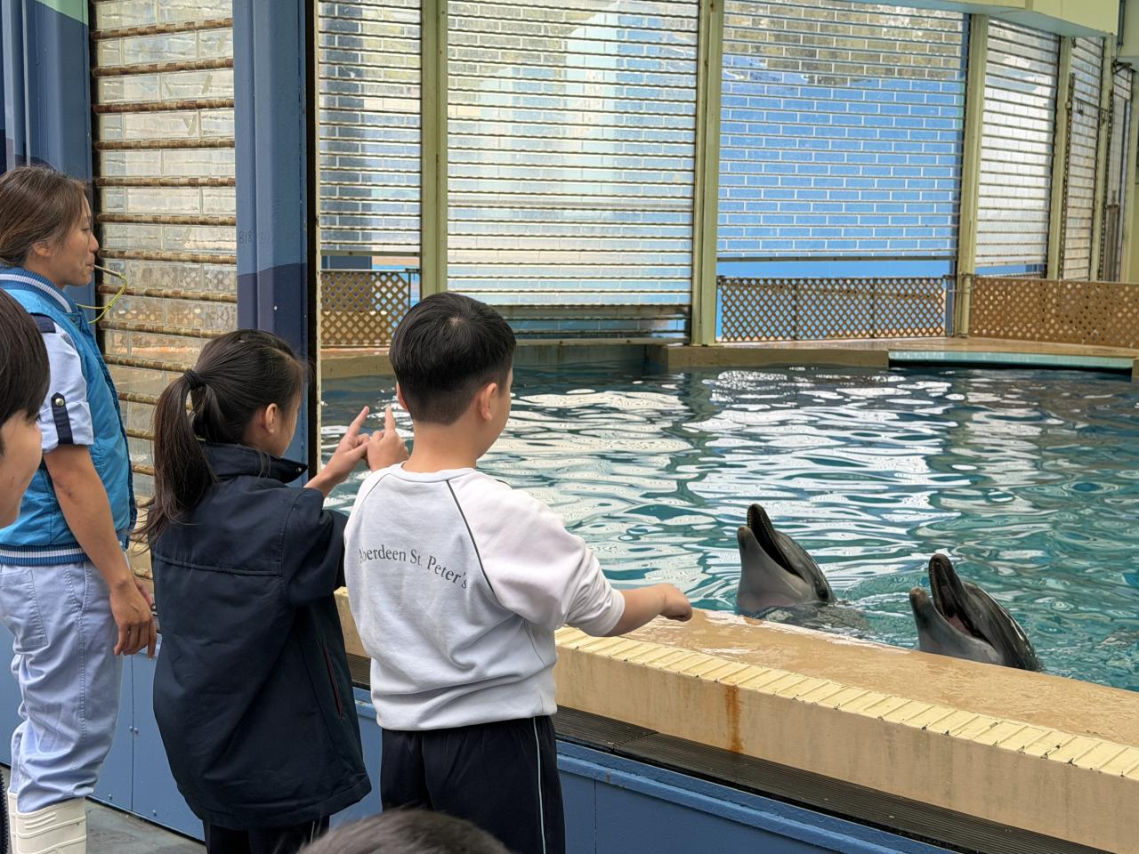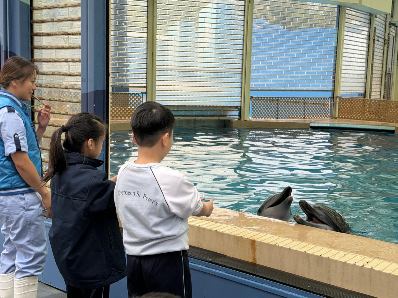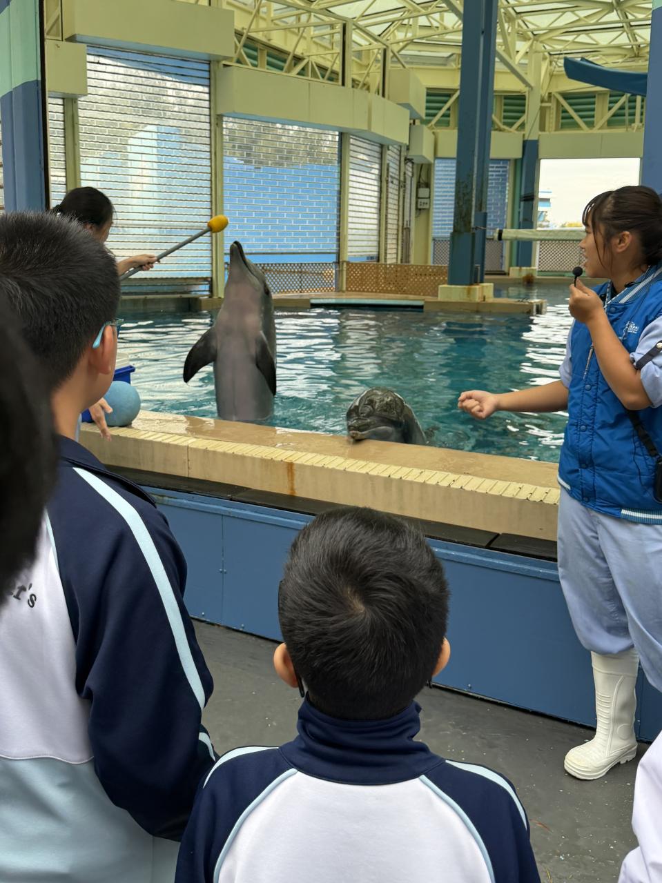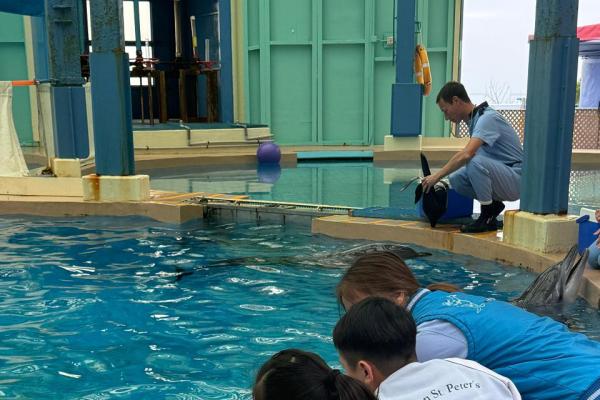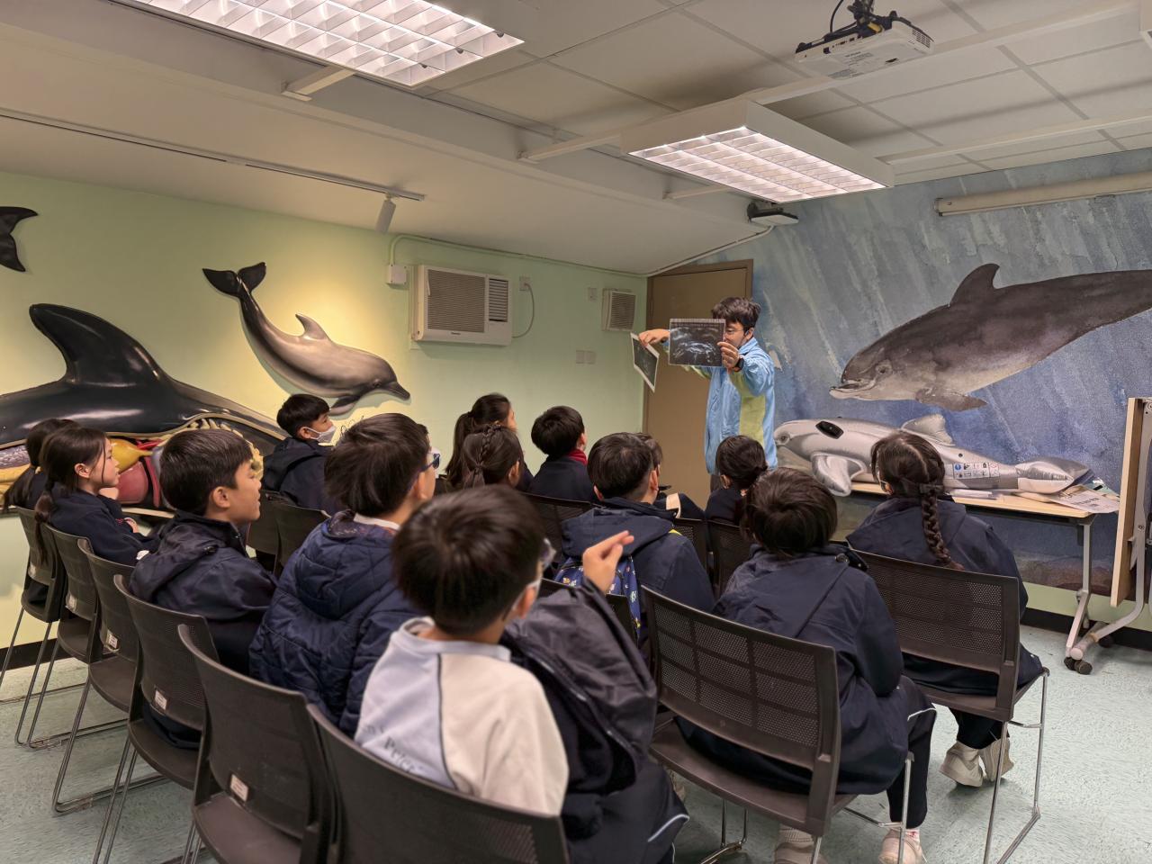 本校學生環境保護大使及小四至小六部分節能大使,前往香港海洋公園參加「搜證遊學豚」活動。同學們認識到海豚的特徵、生活習性與面臨的危機等,他們更踴躍參與搶答環節,勝出的同學贏得與海豚近距離互動的機會。活動中,大家積極向保育員提問,充滿好奇心的同學想知道海豚最長壽命、海豚智商等趣味知識。是次活動讓同學們在實踐中增長見識,了解到海豚面對的生存危機,知道要肩負起保護海洋的責任,亦會以環境保護大使及節能大使的身份,向同學們宣揚愛護環境的信息。 請觀看同學們的訪問,看看他們在這次活動的收穫。