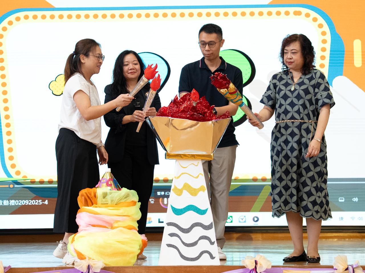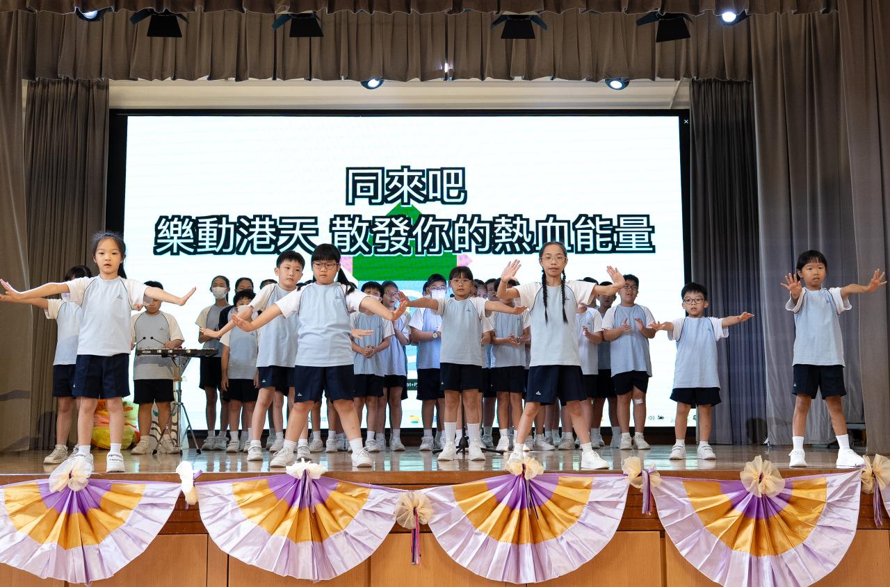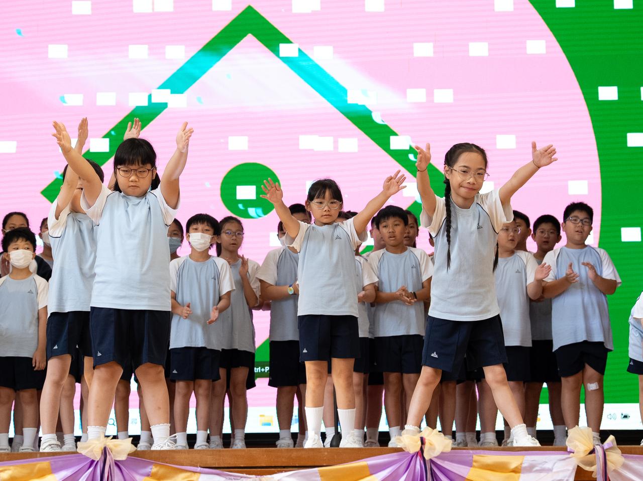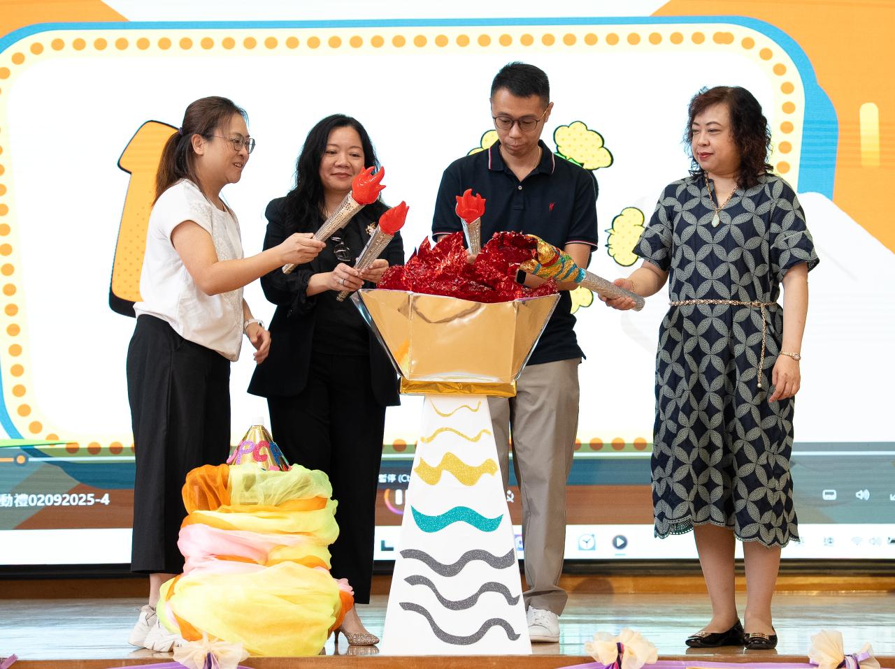 「樂動港天 Get Moving」啟動禮已於02/09/2025在本校禮堂圓滿結束。當天由四位學生擔任司儀,向全體師生介紹計劃的具體內容。侯麗珊校長、楊文健副校長、關愷慇副校長及家長教師會主席葉佩恩女士共同擔任主禮嘉賓,在啟動儀式上,一個重要的環節是嘉賓手持火炬,燃點火盆,這一舉動寓意著學生的團結與合作。 隨後,李樂恩老師與6A班學生獻唱了計劃的主題曲,而初小同學則以舞蹈形式,一同為整個啟動禮增添了無限的活力與色彩。 侯麗珊校長在致辭中,以「Get Moving」,深入淺出地闡釋了夢想與行動的關係,唯有制定周詳的計劃,並持之以恆地付諸努力才能達成目標。校長還引領全體師生齊聲朗讀了本年學習主題,「港天之星意志堅 與主偕行創新篇」,激勵著大家不斷奮進,以堅毅意志與信仰同行,開拓嶄新學習里程。