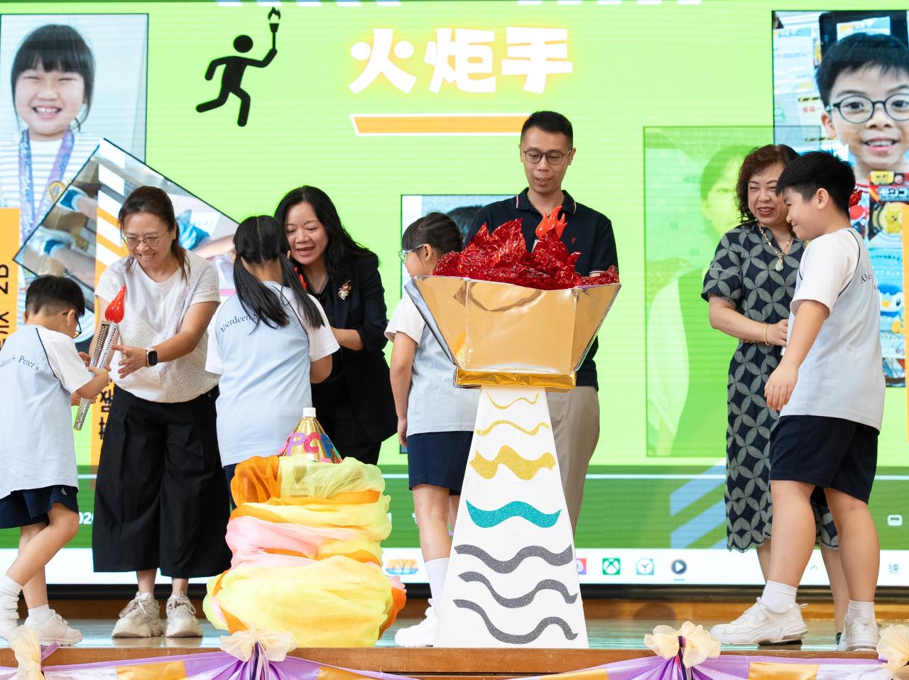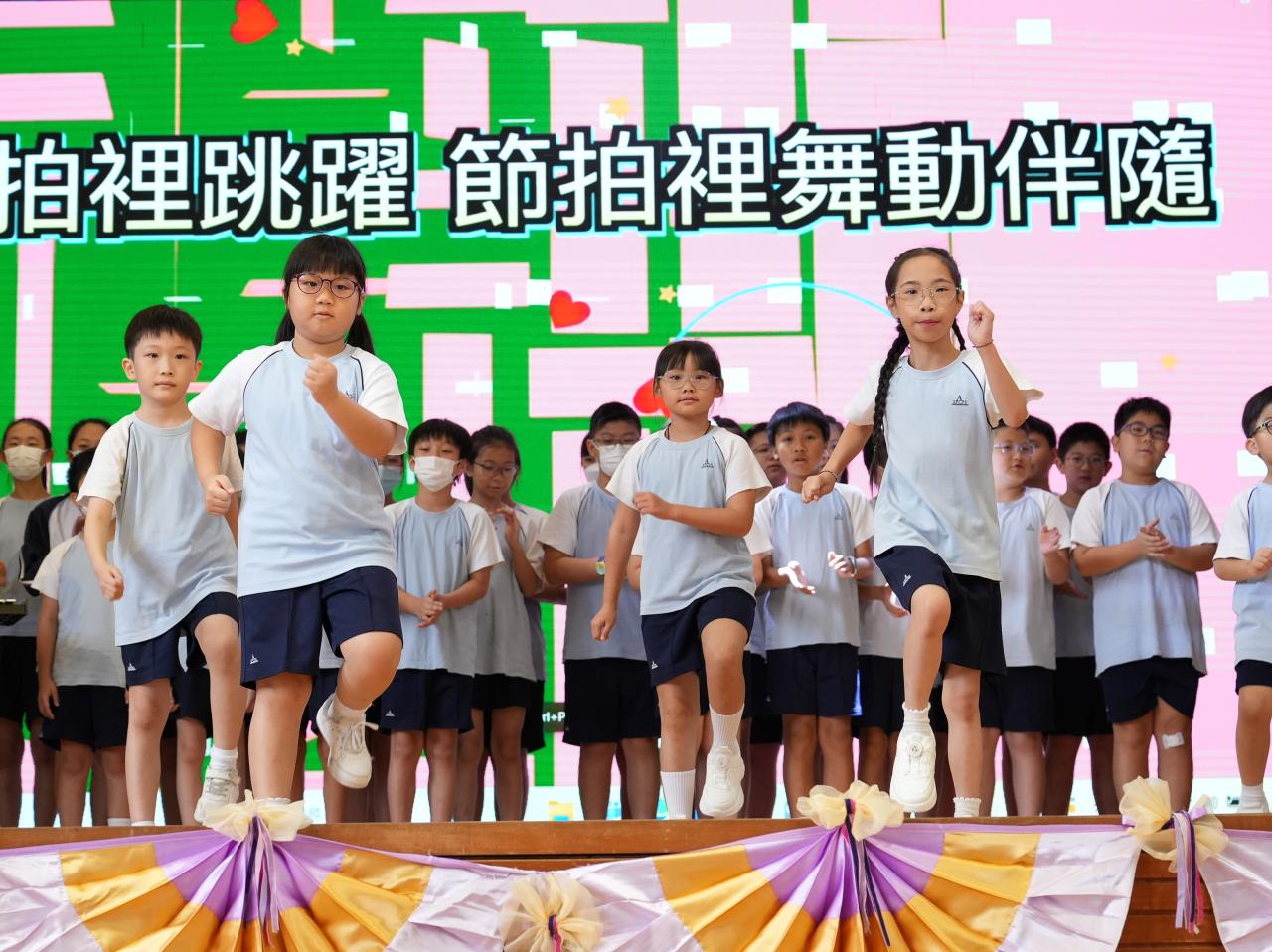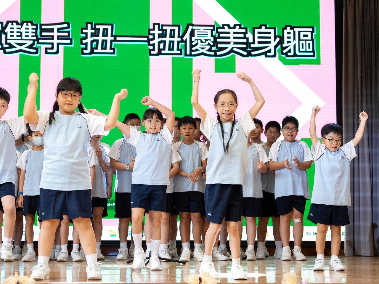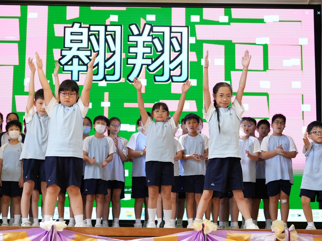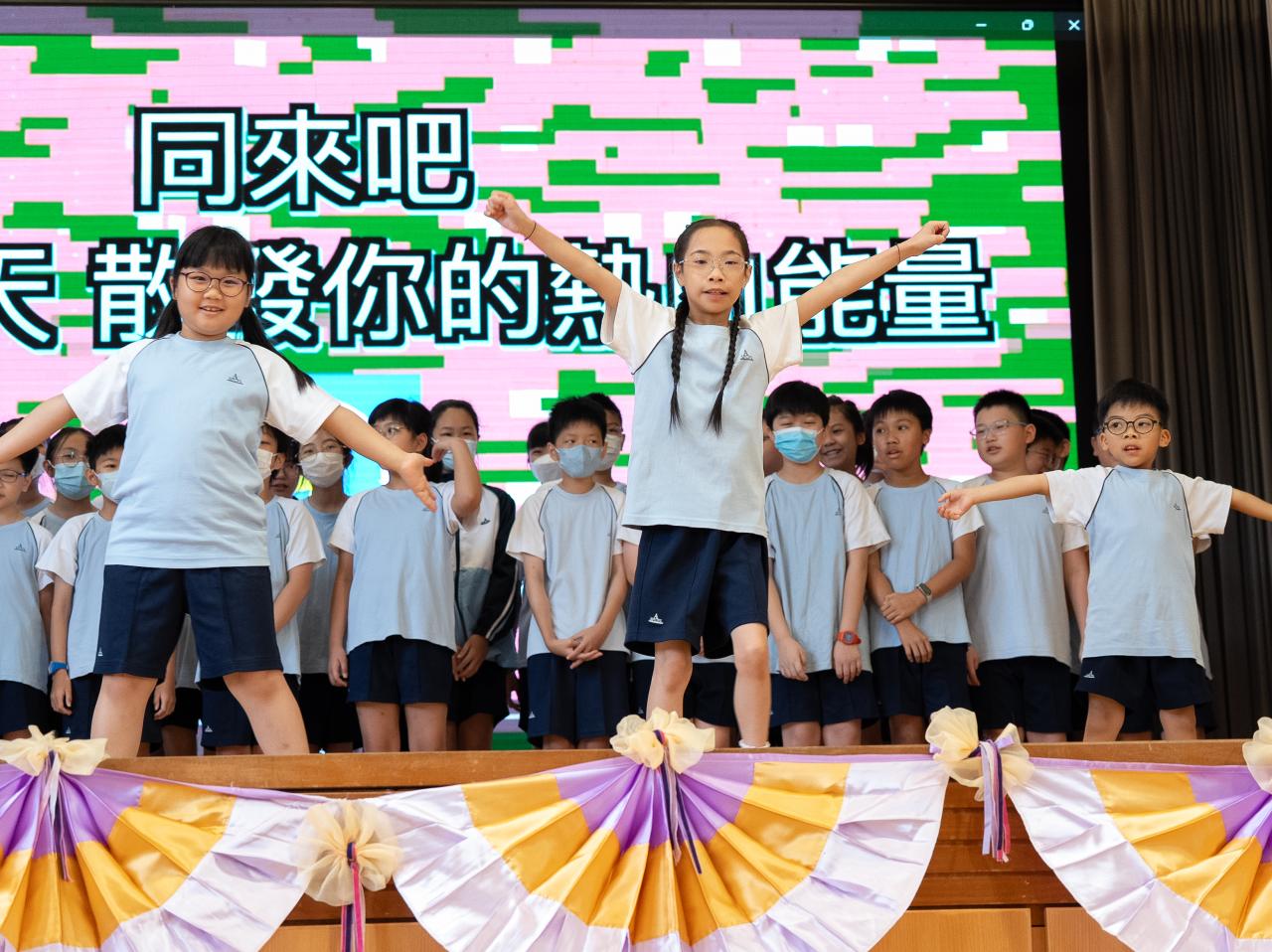 「樂動港天 Get Moving」啟動禮已於02/09/2025在本校禮堂圓滿結束。當天由四位學生擔任司儀,向全體師生介紹計劃的具體內容。侯麗珊校長、楊文健副校長、關愷慇副校長及家長教師會主席葉佩恩女士共同擔任主禮嘉賓,在啟動儀式上,一個重要的環節是嘉賓手持火炬,燃點火盆,這一舉動寓意著學生的團結與合作。 隨後,李樂恩老師與6A班學生獻唱了計劃的主題曲,而初小同學則以舞蹈形式,一同為整個啟動禮增添了無限的活力與色彩。 侯麗珊校長在致辭中,以「Get Moving」,深入淺出地闡釋了夢想與行動的關係,唯有制定周詳的計劃,並持之以恆地付諸努力才能達成目標。校長還引領全體師生齊聲朗讀了本年學習主題,「港天之星意志堅 與主偕行創新篇」,激勵著大家不斷奮進,以堅毅意志與信仰同行,開拓嶄新學習里程。