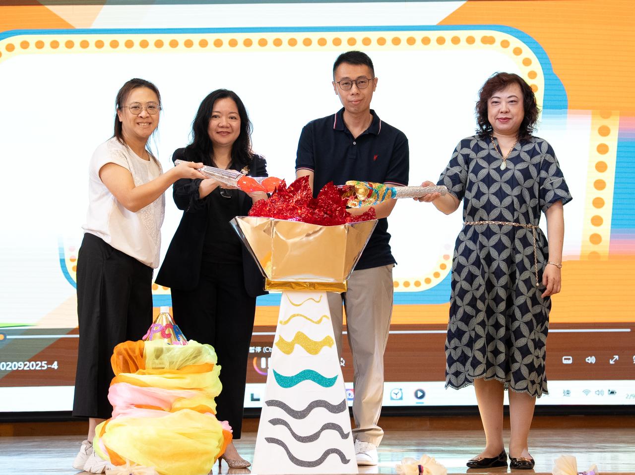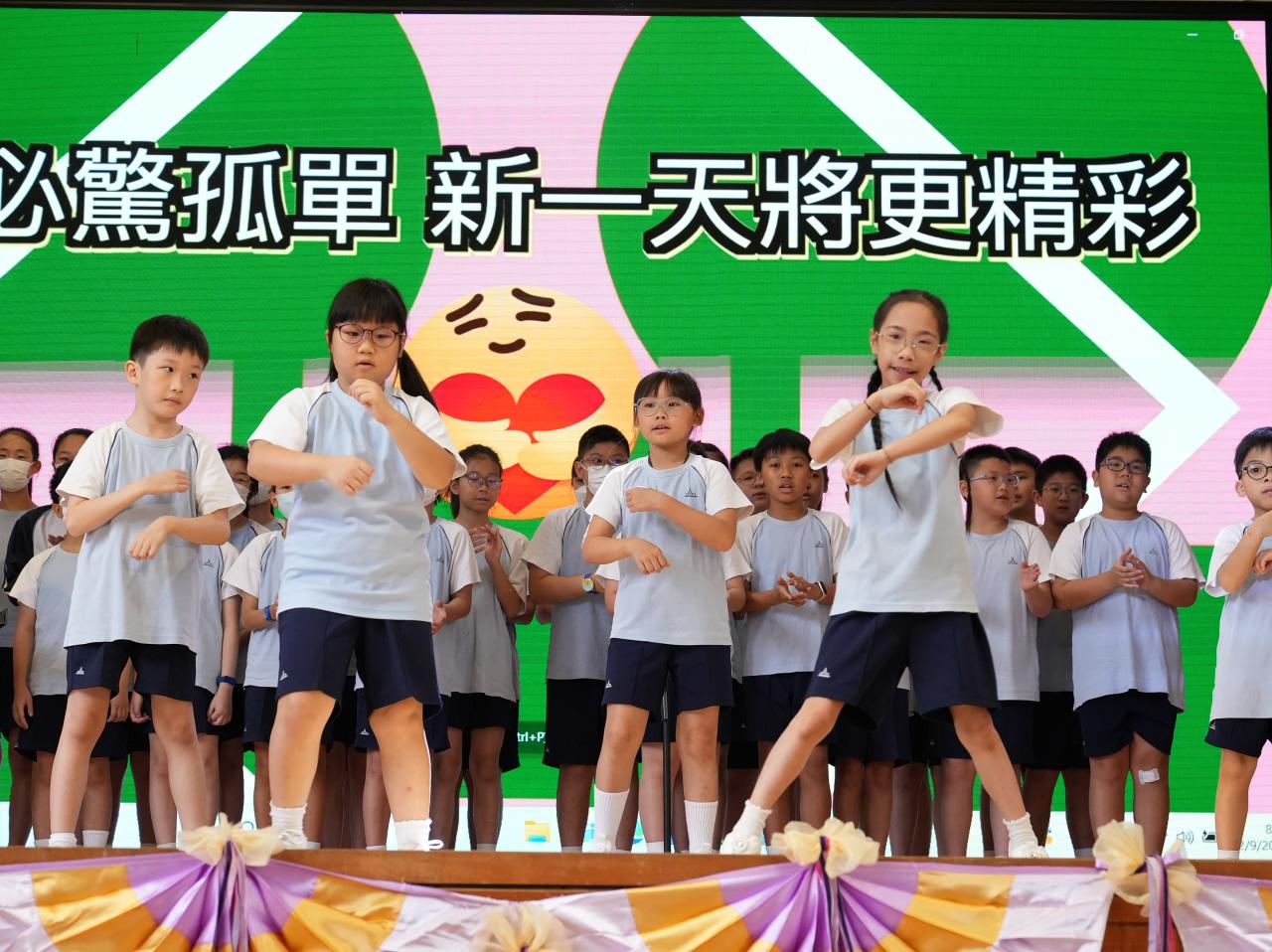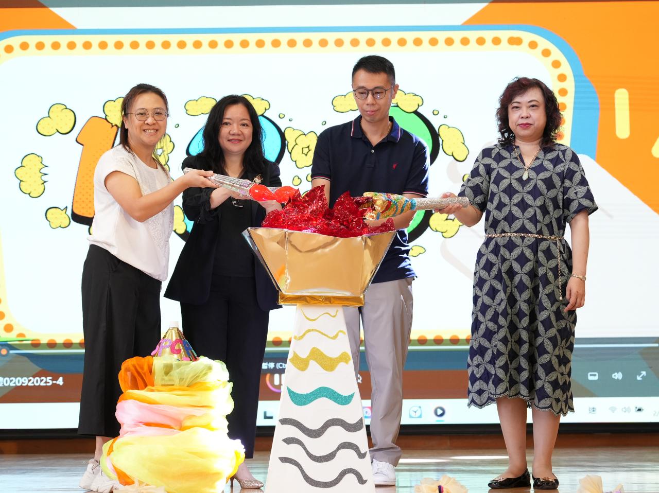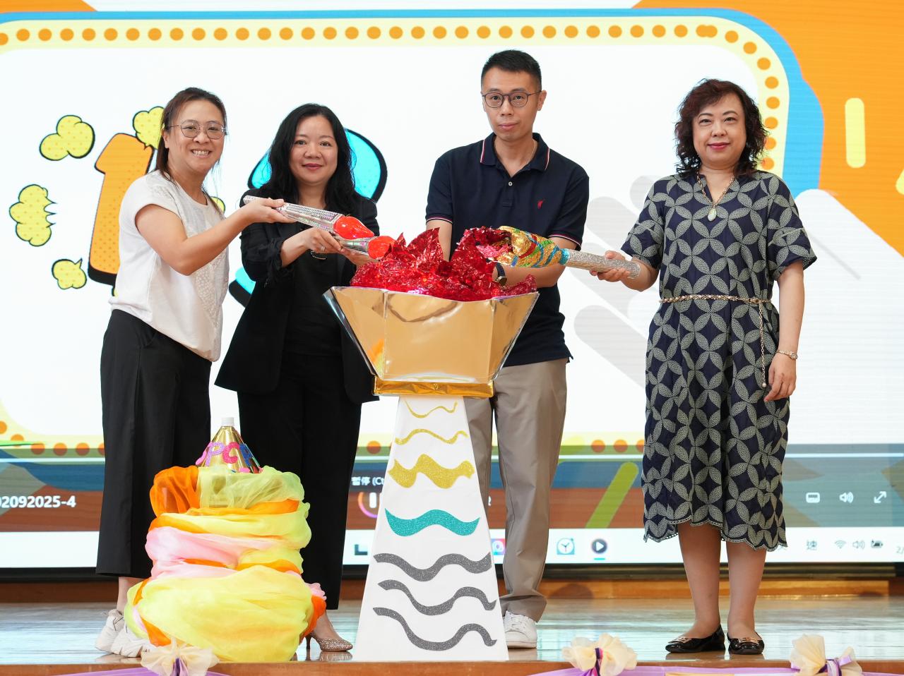 「樂動港天 Get Moving」啟動禮已於02/09/2025在本校禮堂圓滿結束。當天由四位學生擔任司儀,向全體師生介紹計劃的具體內容。侯麗珊校長、楊文健副校長、關愷慇副校長及家長教師會主席葉佩恩女士共同擔任主禮嘉賓,在啟動儀式上,一個重要的環節是嘉賓手持火炬,燃點火盆,這一舉動寓意著學生的團結與合作。 隨後,李樂恩老師與6A班學生獻唱了計劃的主題曲,而初小同學則以舞蹈形式,一同為整個啟動禮增添了無限的活力與色彩。 侯麗珊校長在致辭中,以「Get Moving」,深入淺出地闡釋了夢想與行動的關係,唯有制定周詳的計劃,並持之以恆地付諸努力才能達成目標。校長還引領全體師生齊聲朗讀了本年學習主題,「港天之星意志堅 與主偕行創新篇」,激勵著大家不斷奮進,以堅毅意志與信仰同行,開拓嶄新學習里程。