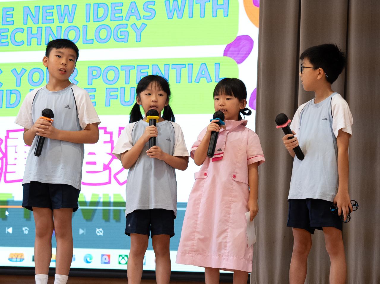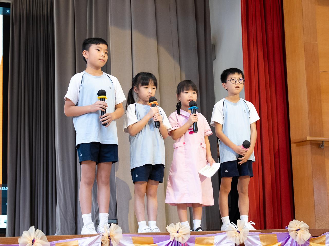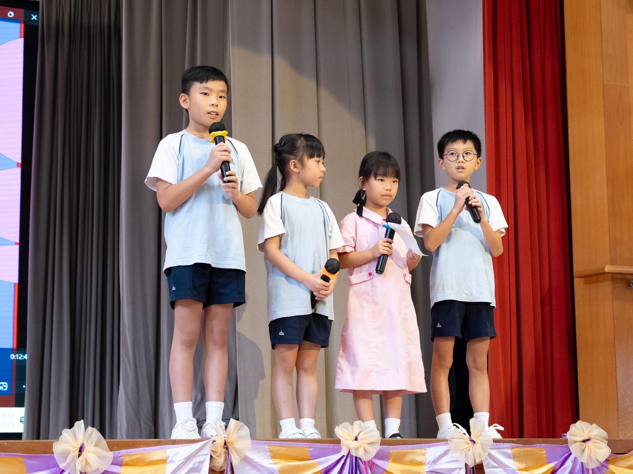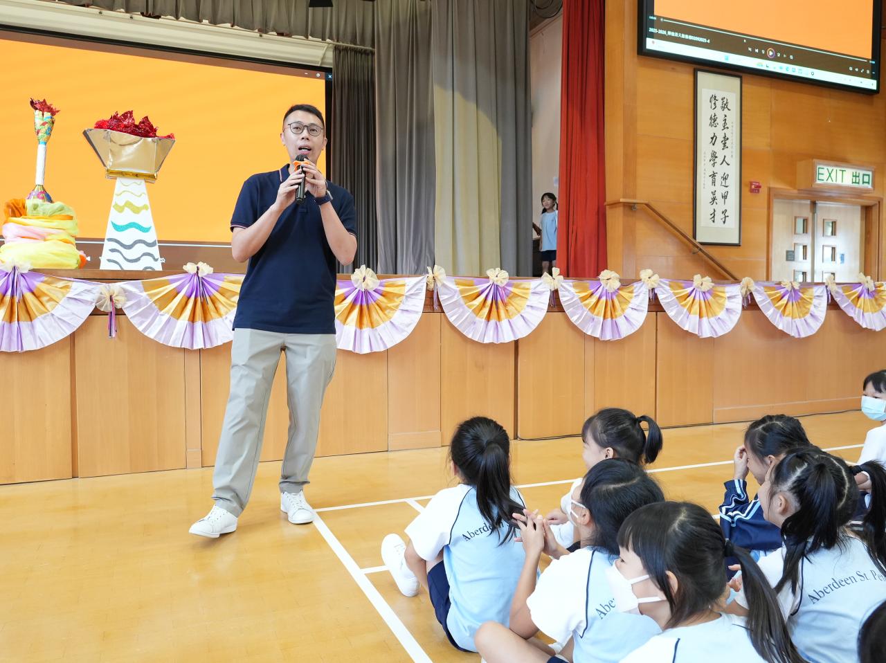 「樂動港天 Get Moving」啟動禮已於02/09/2025在本校禮堂圓滿結束。當天由四位學生擔任司儀,向全體師生介紹計劃的具體內容。侯麗珊校長、楊文健副校長、關愷慇副校長及家長教師會主席葉佩恩女士共同擔任主禮嘉賓,在啟動儀式上,一個重要的環節是嘉賓手持火炬,燃點火盆,這一舉動寓意著學生的團結與合作。 隨後,李樂恩老師與6A班學生獻唱了計劃的主題曲,而初小同學則以舞蹈形式,一同為整個啟動禮增添了無限的活力與色彩。 侯麗珊校長在致辭中,以「Get Moving」,深入淺出地闡釋了夢想與行動的關係,唯有制定周詳的計劃,並持之以恆地付諸努力才能達成目標。校長還引領全體師生齊聲朗讀了本年學習主題,「港天之星意志堅 與主偕行創新篇」,激勵著大家不斷奮進,以堅毅意志與信仰同行,開拓嶄新學習里程。