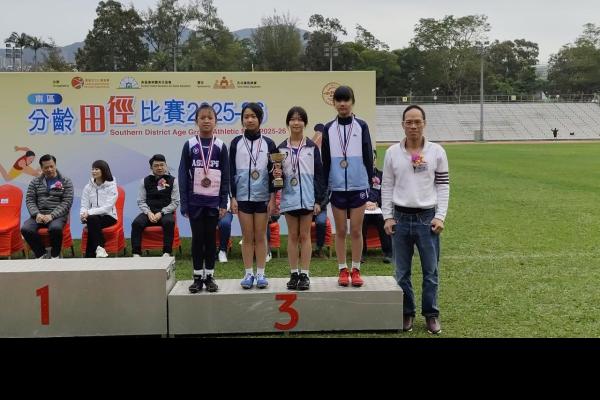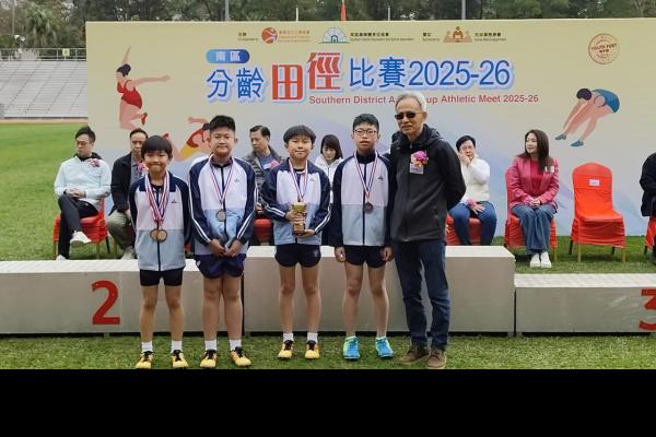 本校的田徑隊隊員於2月1日參加由康樂及文化事務署及南區康樂體育促進會合辦的「南區分齡田徑比賽2025-2026」。今次比賽共有27位隊員參加,各隊員於比賽中都全力以赴,盡力爭取獎項。當中,6A班朱凱婷、6B班徐芷熙、羅潔恩及6D班周珈睿於小學(女子組)4x100米接力邀請賽獲得季軍;而6A班梁振豐、6C班劉永軒、羅朗熙及6D班梁向軒亦獲得小學(男子組)4x100米接力邀請賽優異獎,為校爭光﹗