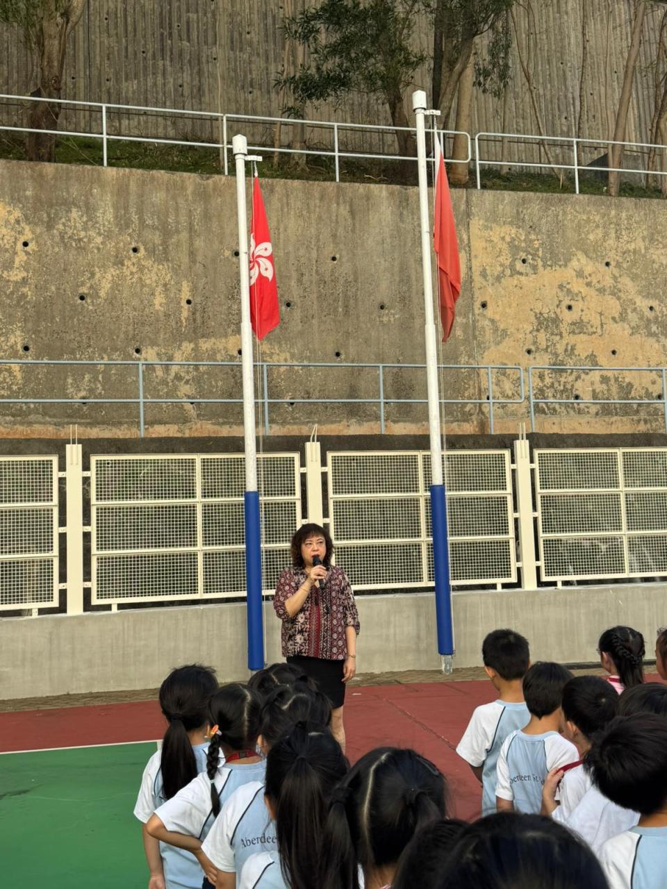 今年為中華人民共和國成立76周年,學校於2025年10月2日(四)上課前舉行升國旗儀式及奏唱國歌。侯麗珊校長主持「國旗下的講話」,增強學生的國家觀念,弘揚愛國主義精神。另外,學校還在班房進行「國慶日」網上小挑戰遊戲。