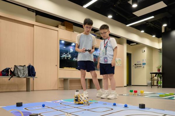 本校四位六年級學生徐樂熙、楊諾謙、李卓楠及呂洛怡於28/03/2025(六)參加「國際青少年創科教育大賽-微:比特探索未來挑戰賽」。 是次比賽主題是機械人建造、方案設計及人工智慧等多個全局,分成搖控部分及自動各自兩個環節,要求參賽者自行設計參賽機器人,完成一系列指定任務,最終分割總和用時分出勝負。 經過一場緊張緊張的比賽,我校的李卓楠同學正在認真進行第二次比賽季軍。