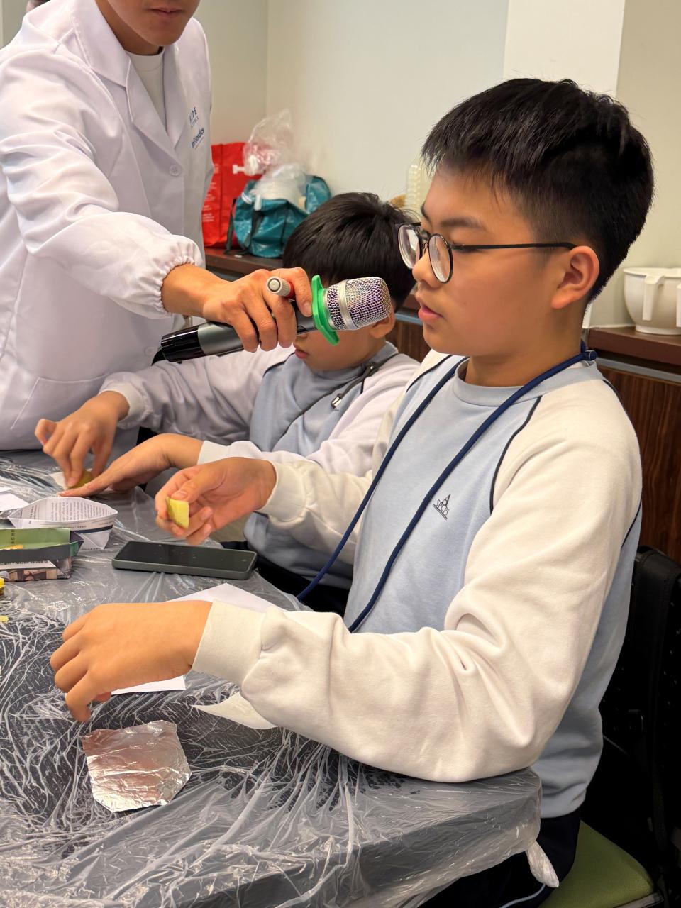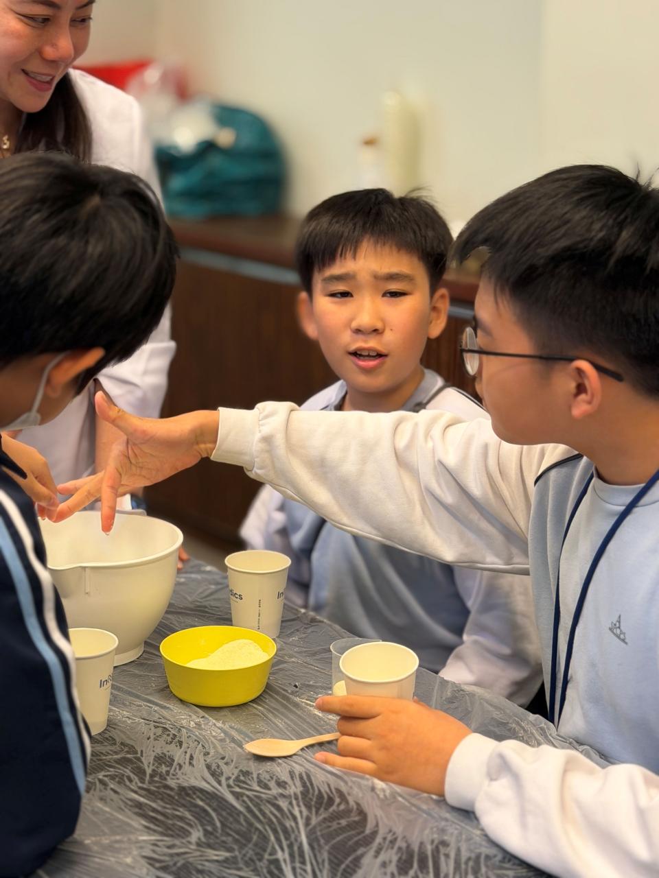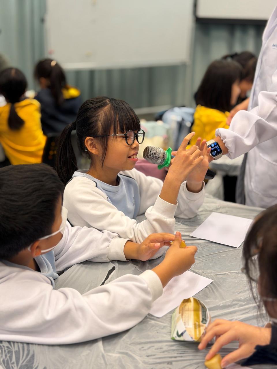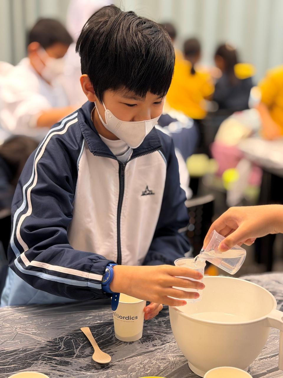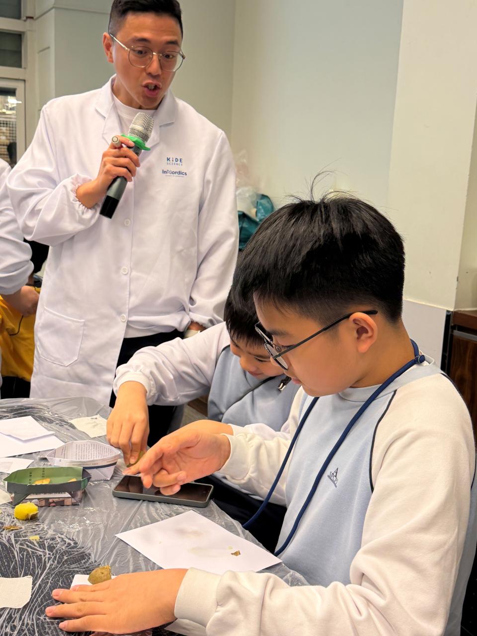 學生參加了STEM培訓工作坊。工作坊介紹了香港、芬蘭及其他北歐國家的環保概念,讓學生認識如何處理及減少廚餘。學生被分成不同小組進行匯報,向參與者分享如何在校內以3R(Reduce、Reuse、Recycle)原則推廣減少食物浪費的理念。又以芬蘭STEM教育模式,指導學生利用過期食品——薯仔和牛奶進行科學實驗。