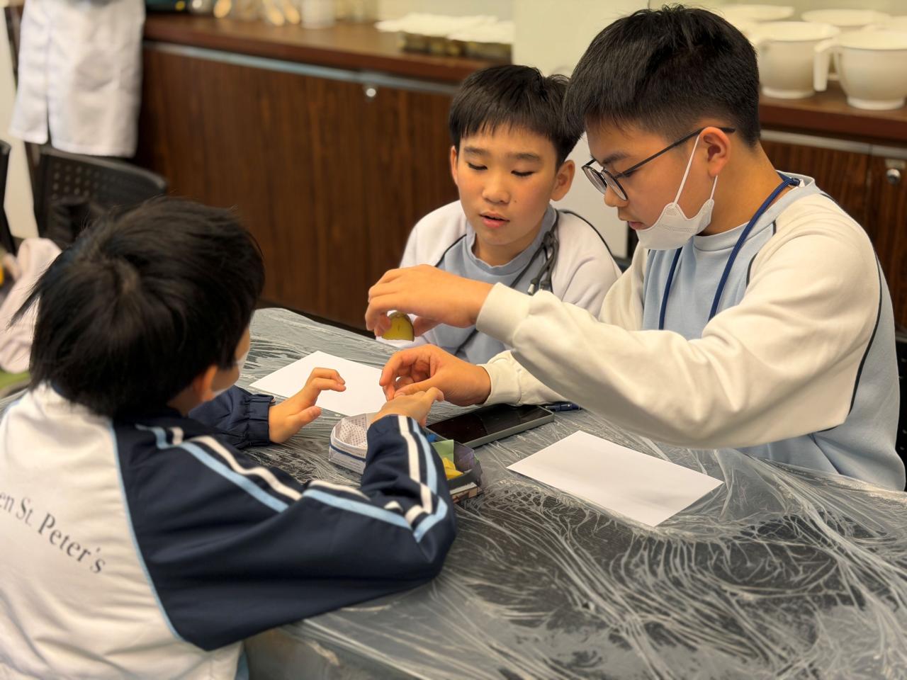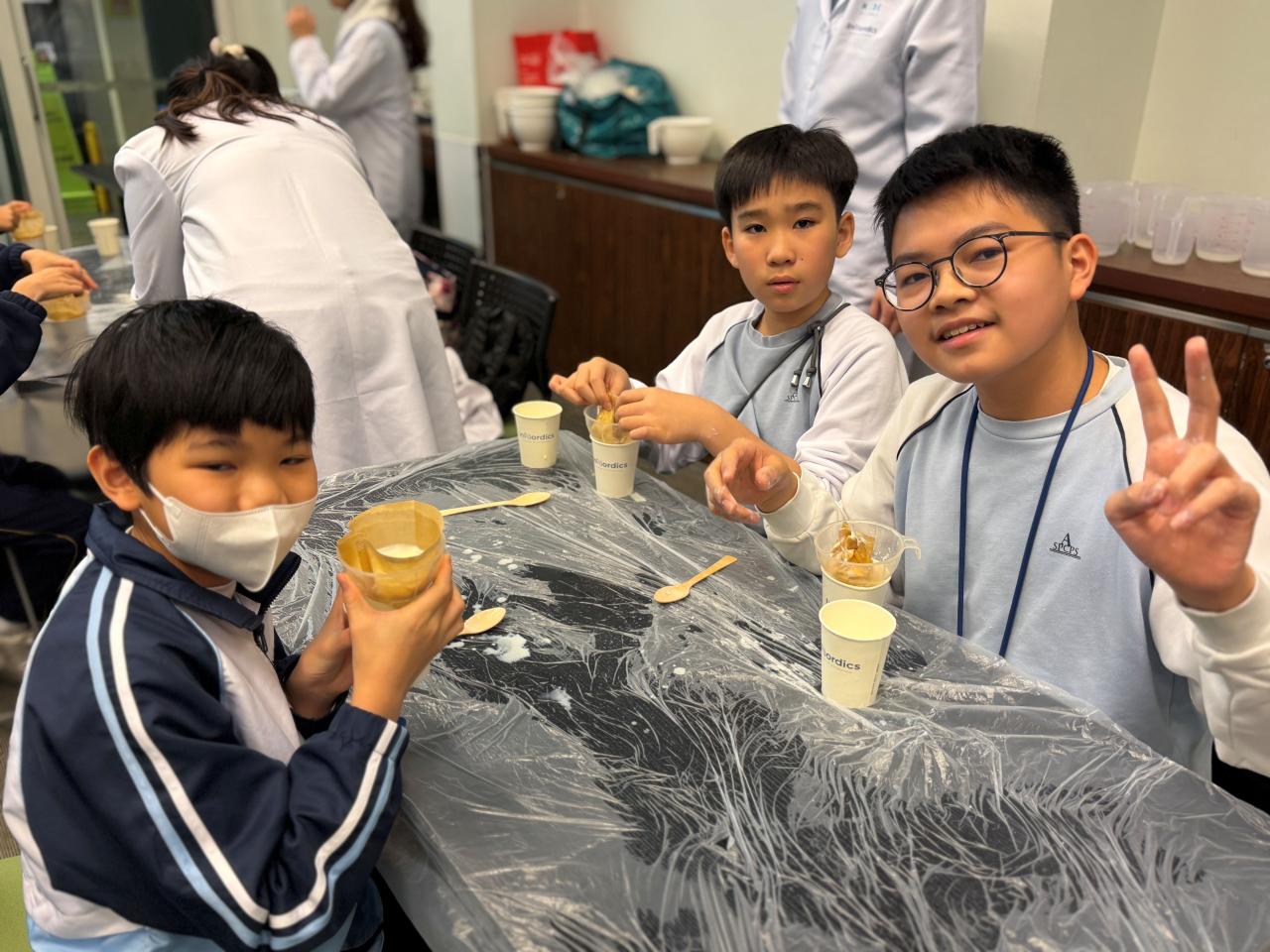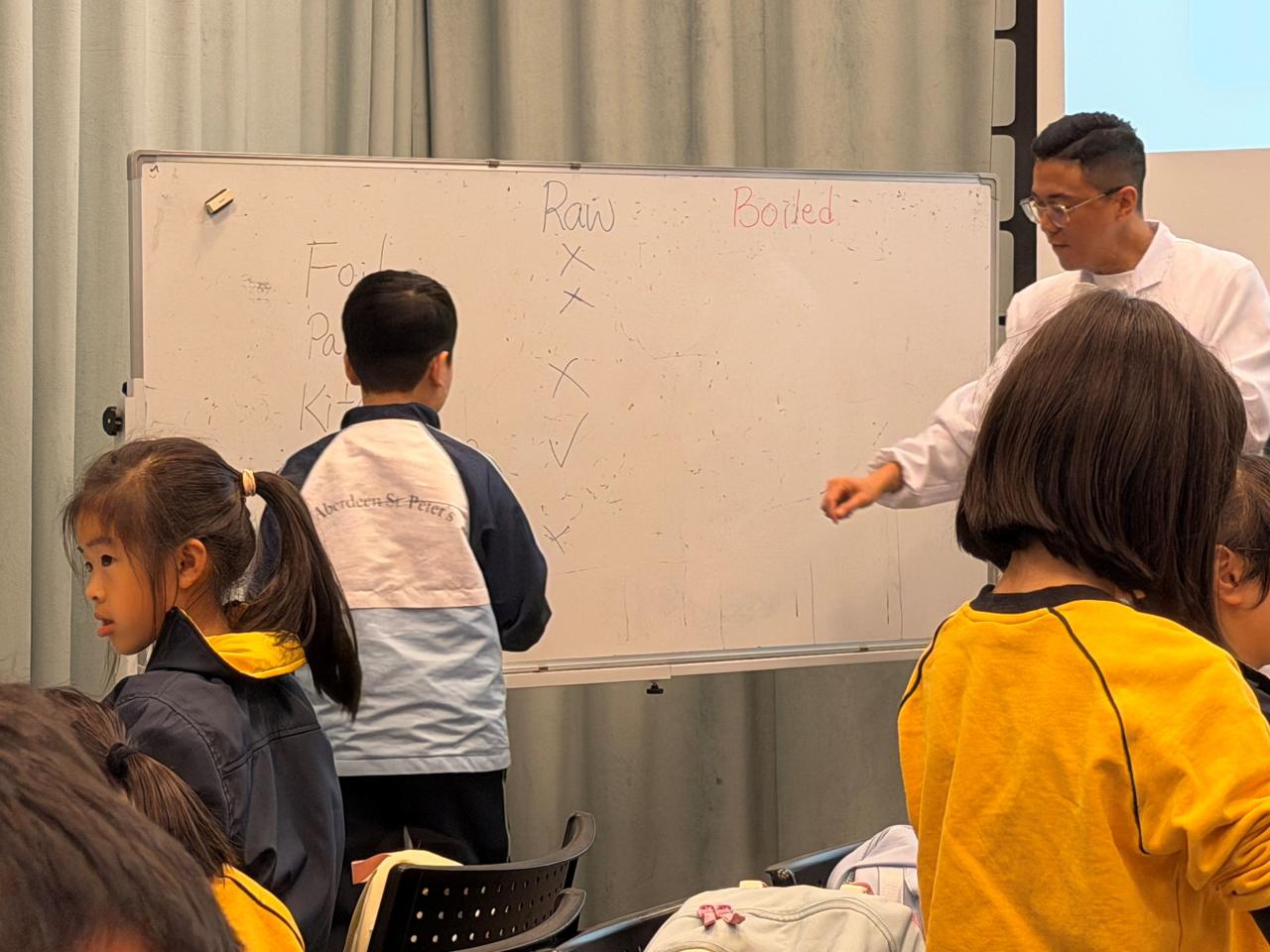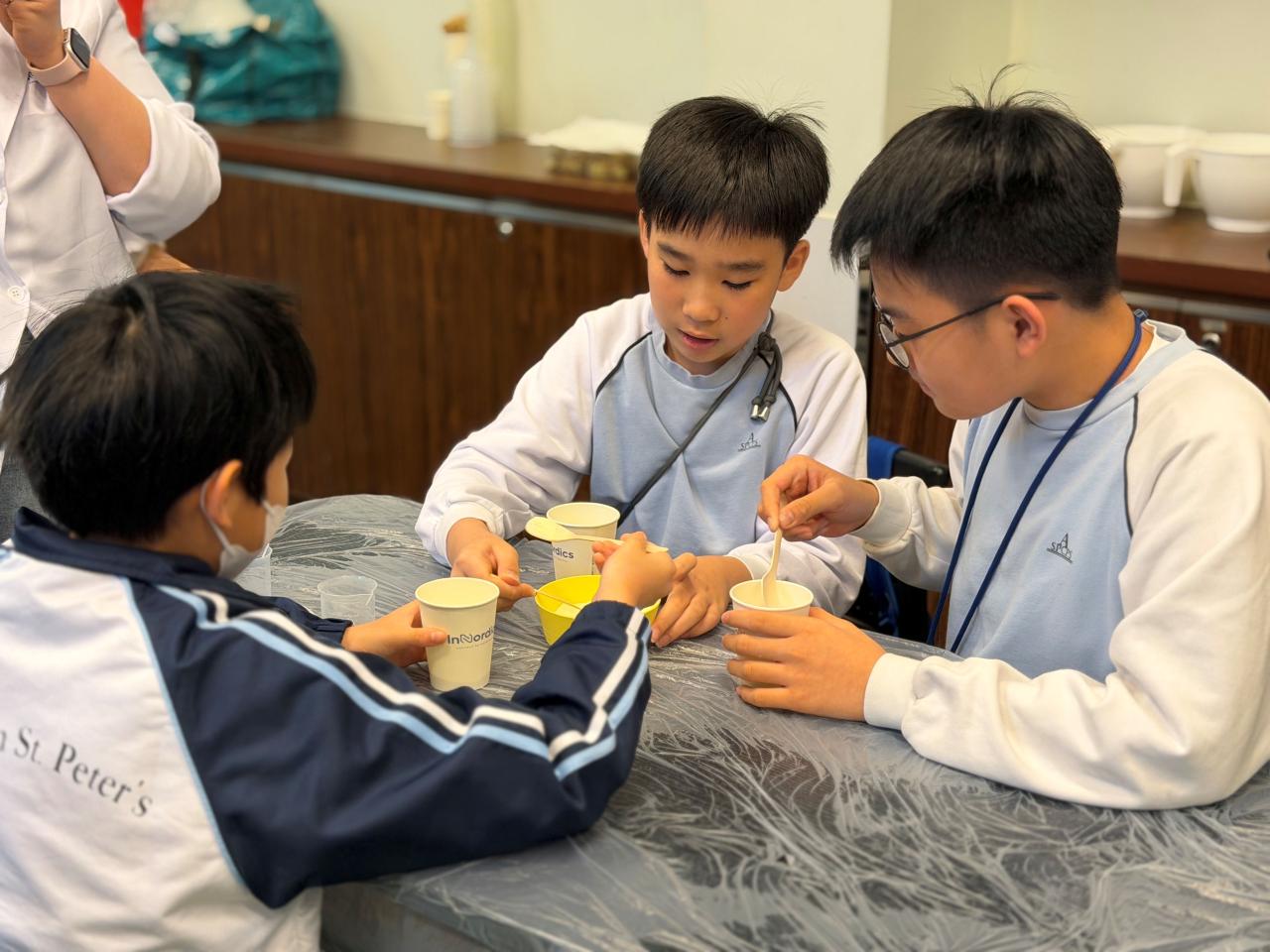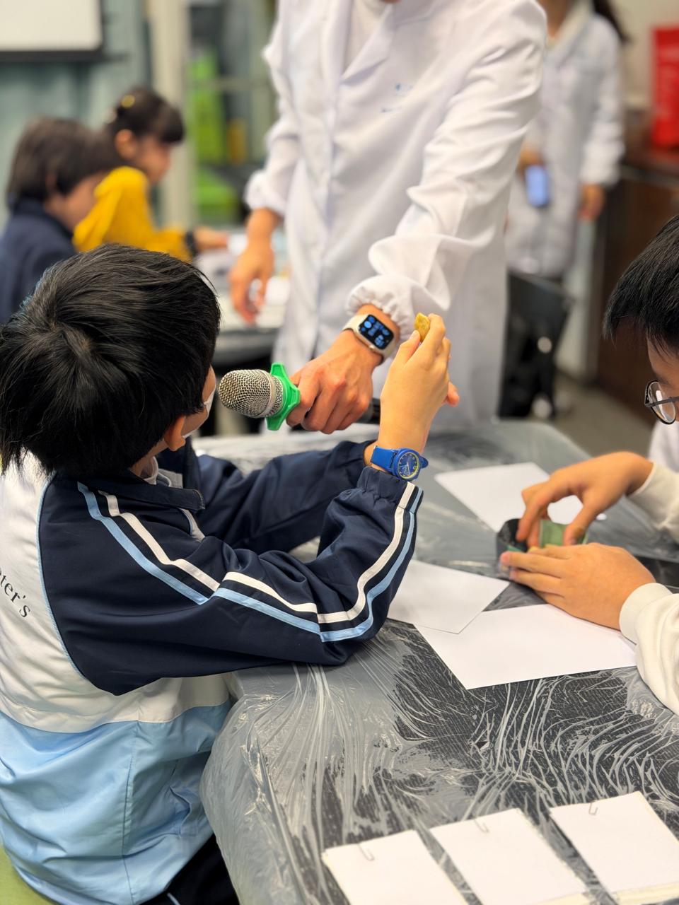 學生參加了STEM培訓工作坊。工作坊介紹了香港、芬蘭及其他北歐國家的環保概念,讓學生認識如何處理及減少廚餘。學生被分成不同小組進行匯報,向參與者分享如何在校內以3R(Reduce、Reuse、Recycle)原則推廣減少食物浪費的理念。又以芬蘭STEM教育模式,指導學生利用過期食品——薯仔和牛奶進行科學實驗。