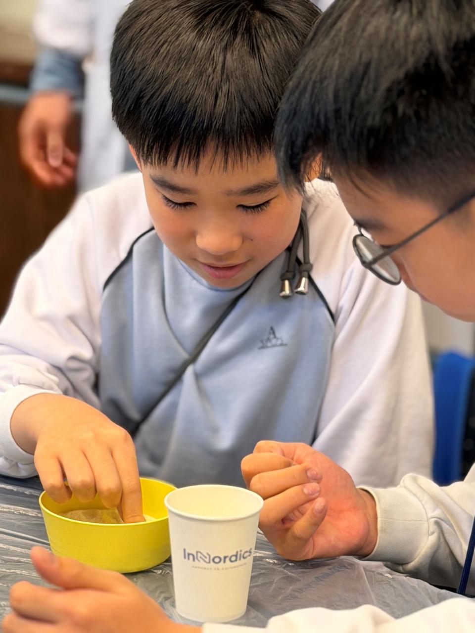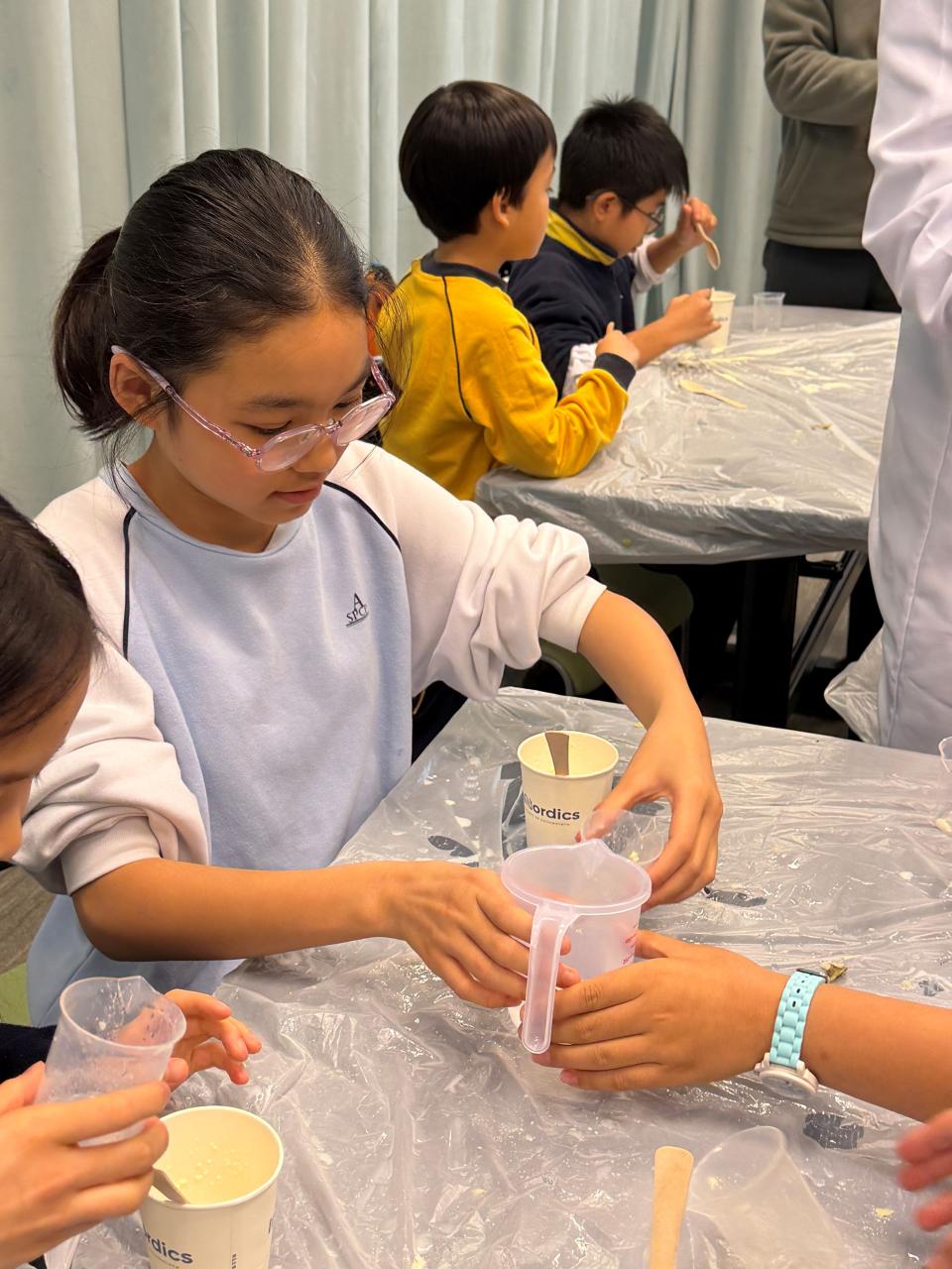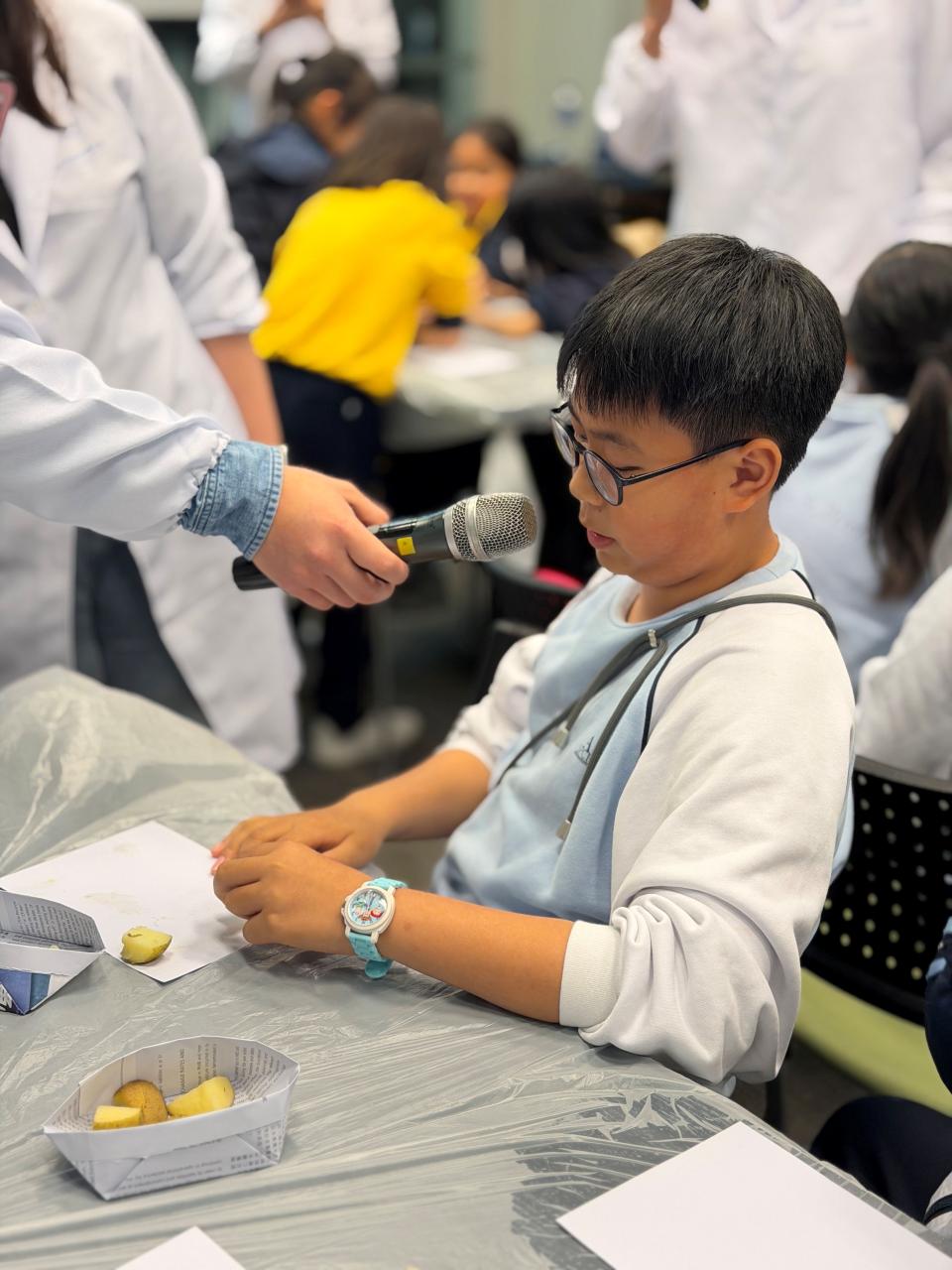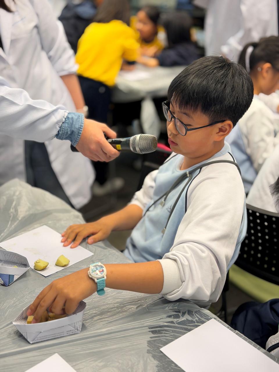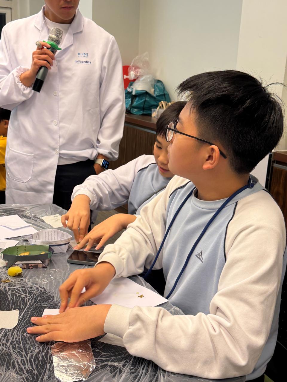 學生參加了STEM培訓工作坊。工作坊介紹了香港、芬蘭及其他北歐國家的環保概念,讓學生認識如何處理及減少廚餘。學生被分成不同小組進行匯報,向參與者分享如何在校內以3R(Reduce、Reuse、Recycle)原則推廣減少食物浪費的理念。又以芬蘭STEM教育模式,指導學生利用過期食品——薯仔和牛奶進行科學實驗。