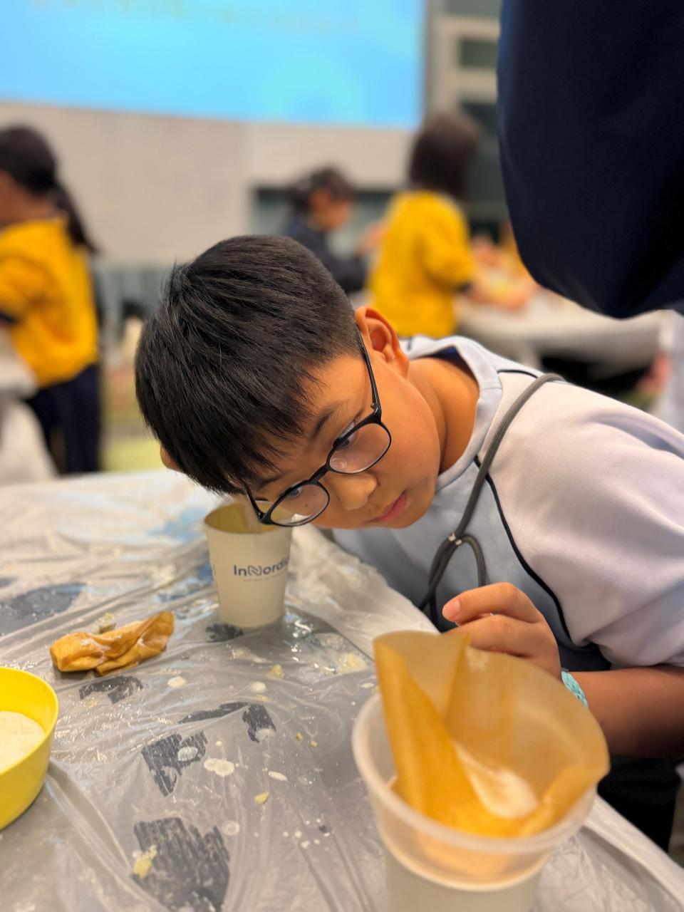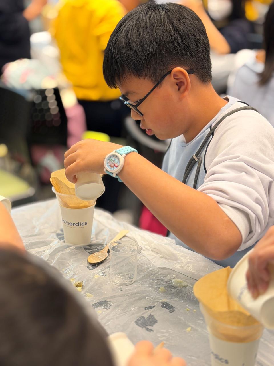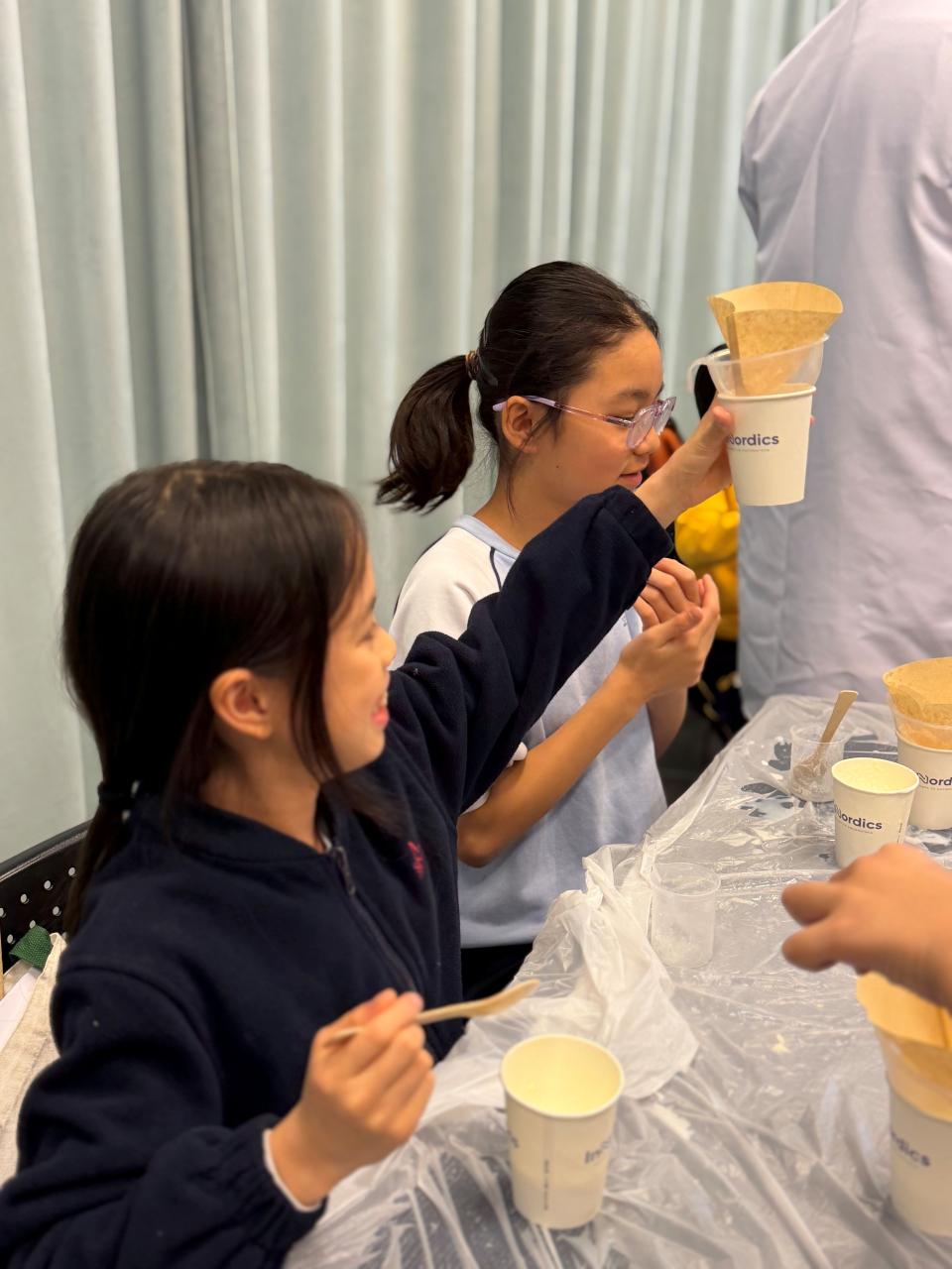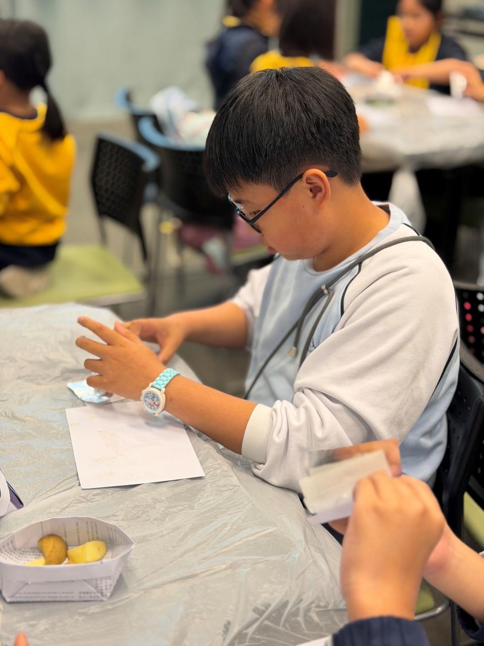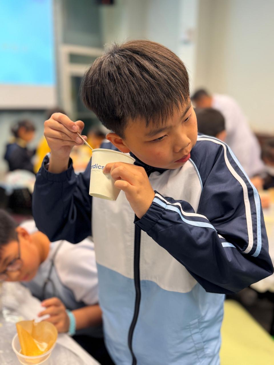 學生參加了STEM培訓工作坊。工作坊介紹了香港、芬蘭及其他北歐國家的環保概念,讓學生認識如何處理及減少廚餘。學生被分成不同小組進行匯報,向參與者分享如何在校內以3R(Reduce、Reuse、Recycle)原則推廣減少食物浪費的理念。又以芬蘭STEM教育模式,指導學生利用過期食品——薯仔和牛奶進行科學實驗。
