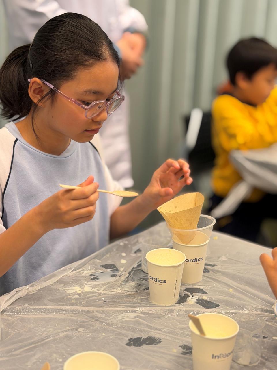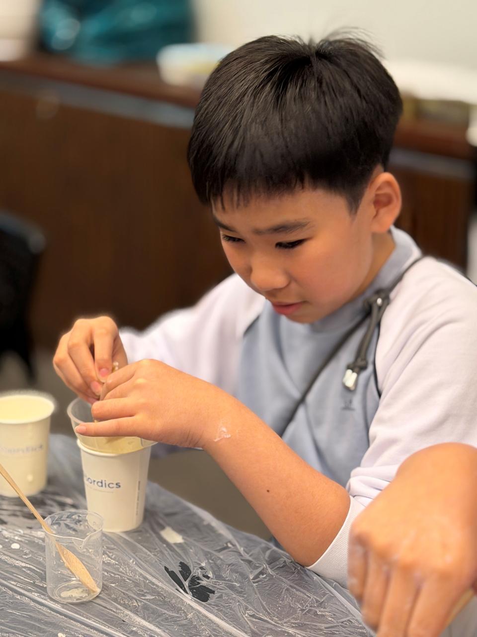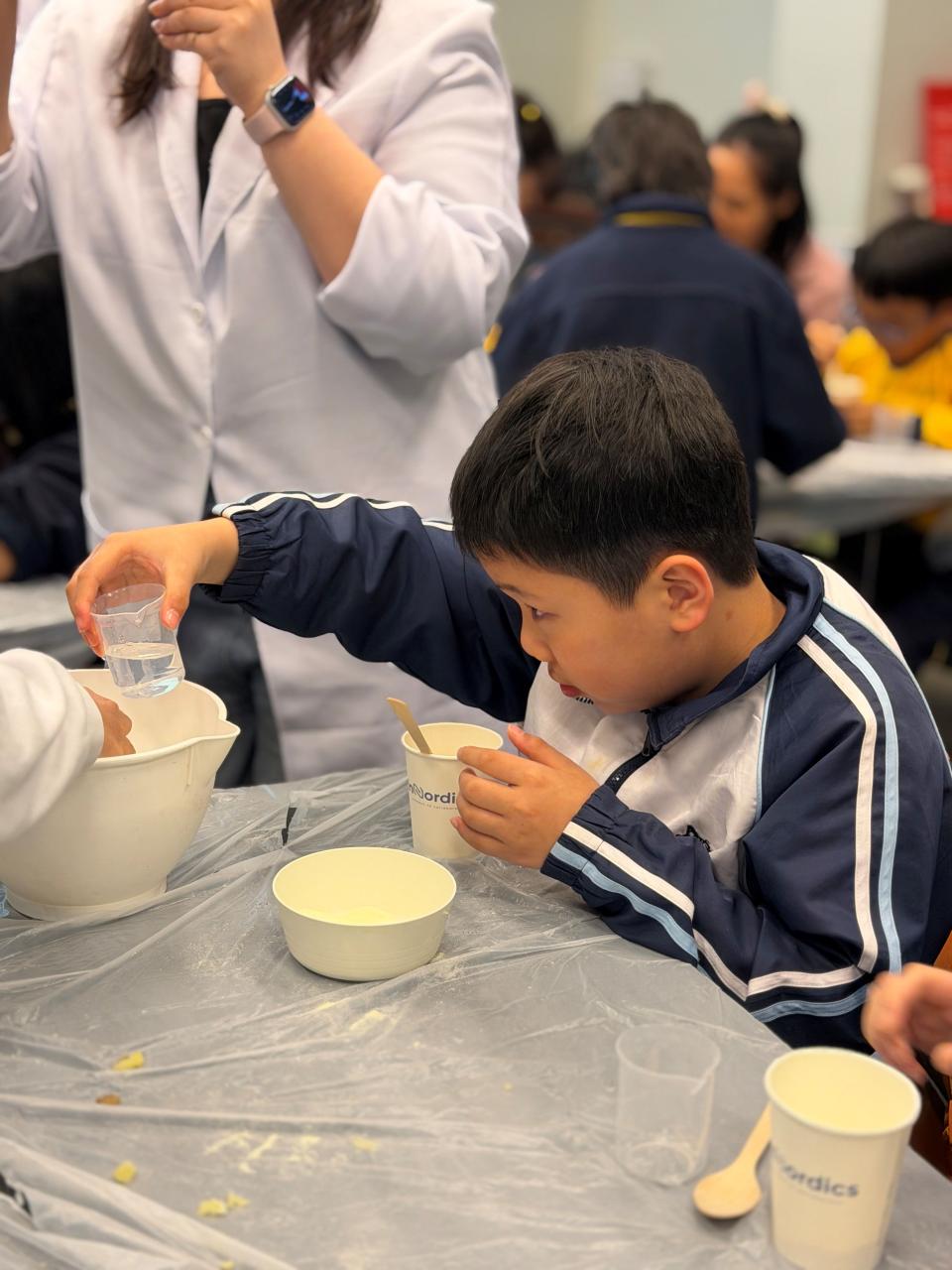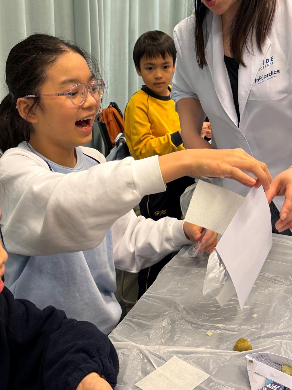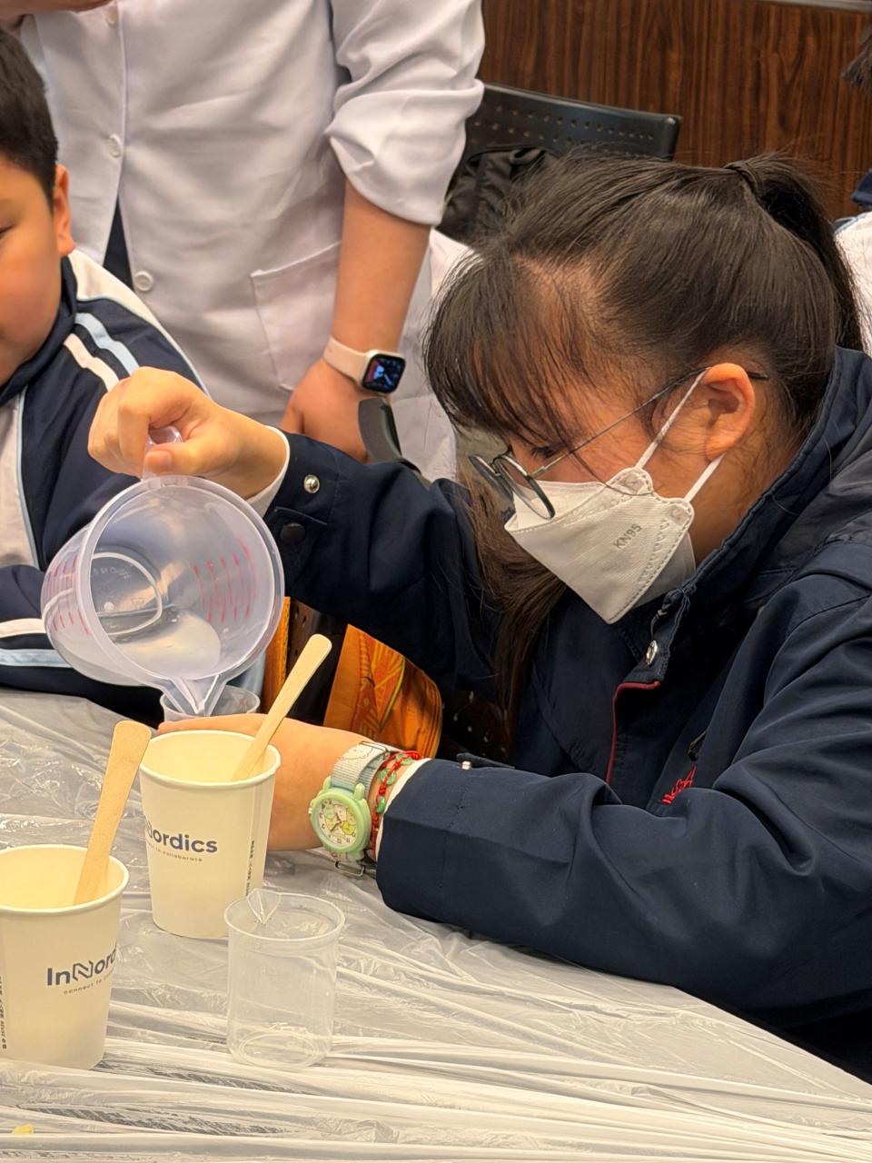 學生參加了STEM培訓工作坊。工作坊介紹了香港、芬蘭及其他北歐國家的環保概念,讓學生認識如何處理及減少廚餘。學生被分成不同小組進行匯報,向參與者分享如何在校內以3R(Reduce、Reuse、Recycle)原則推廣減少食物浪費的理念。又以芬蘭STEM教育模式,指導學生利用過期食品——薯仔和牛奶進行科學實驗。