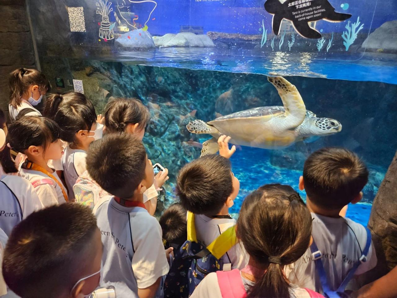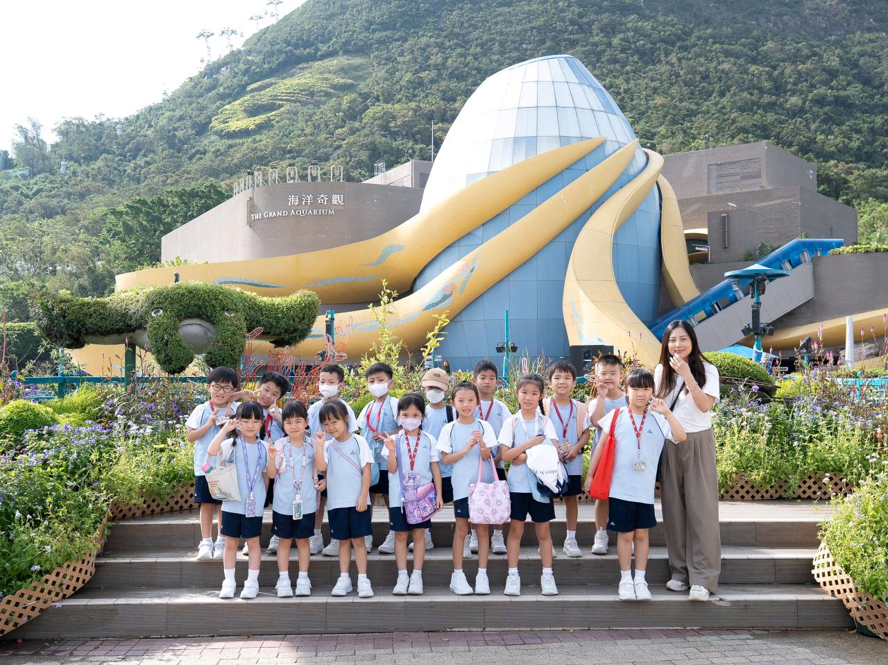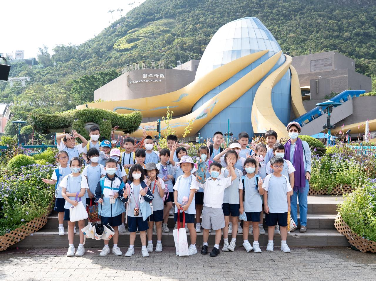 為配合本校推行環境教育,本校一及二年級學生分別於20/10/2025(一),到海洋公園進行全方位學習活動。學生透過體驗式戶外參觀活動,參觀海洋奇觀並與海岸生物近距離接觸,欣賞牠們特別的身體構造,並透過層層疊遊戲解構海洋食物鏈密不可分的關係,以助完成專題研習「海洋生物初接觸」,欣賞天主所創造的海洋世界。