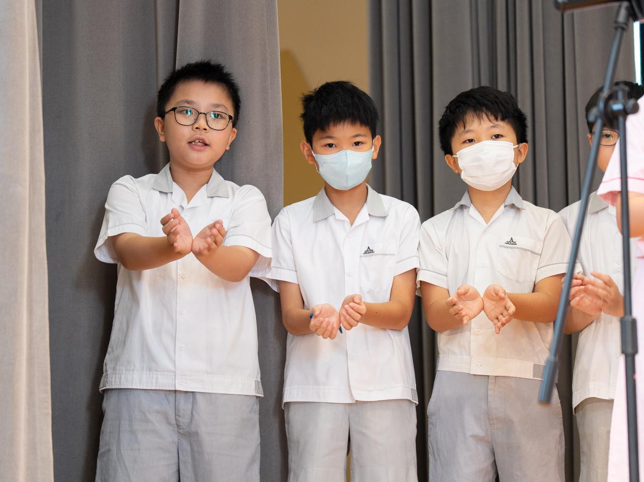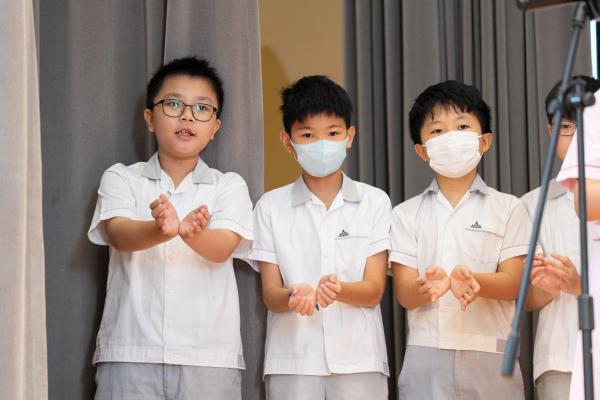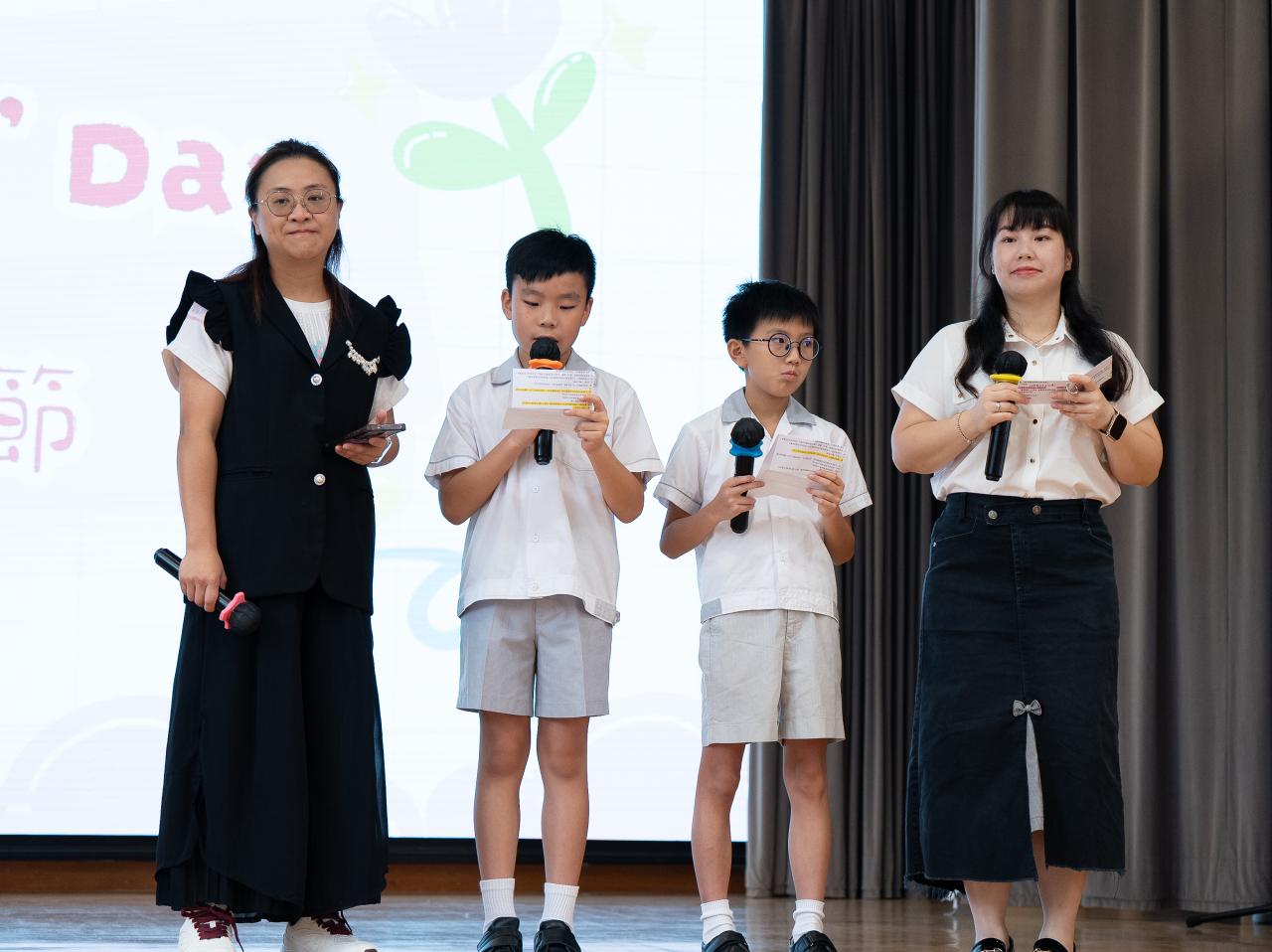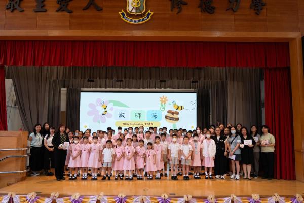 10/09/2025(三)在敬師日活動中,家長教師會主席葉佩恩女士、副主席陳子敏女士,5A 陳孜濬同學與陳冠明同學共同主持是此次活動。 活動內容豐富,首先播放了孩子表達對老師感恩之情的片段,緊接著 6A 班同學獻上唱歌表演。其後,同學向校長、副校長及全體老師致送敬師卡和水果,以表達深深的感激之意。 隨後,校長勉勵同學銘記感恩之心,同時代表學校老師向家長和同學的心意致以謝意。校長強調要實踐校訓「敬主愛人 修德力學」,來報答老師的教導。