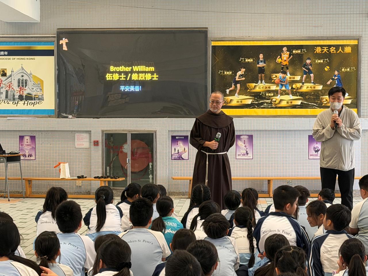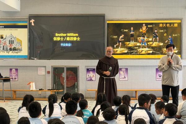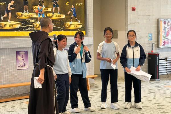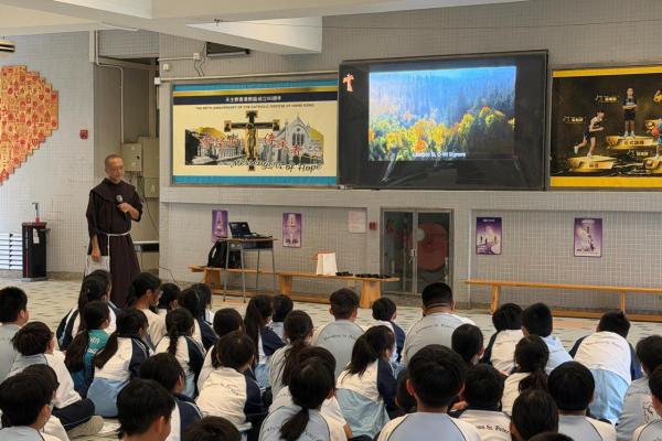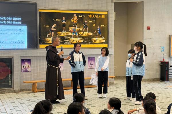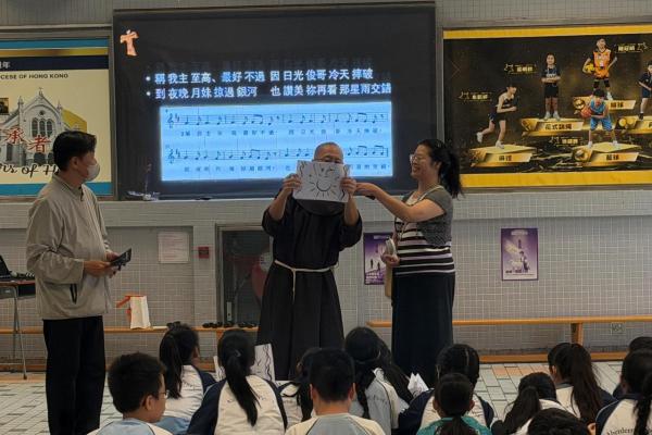 本校參加了賽馬會節能減電學校計劃,於27/03/2026(五)邀請了天主教方濟會的伍維烈修士為我們主持「方濟各遇上聖方濟:唱歌學通諭」講座,學生透過歌唱LAUDATO SI的粵語版,輕鬆學習方濟造物讚及方濟各通諭的重點。