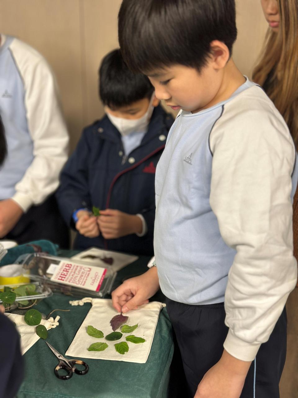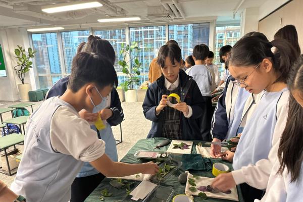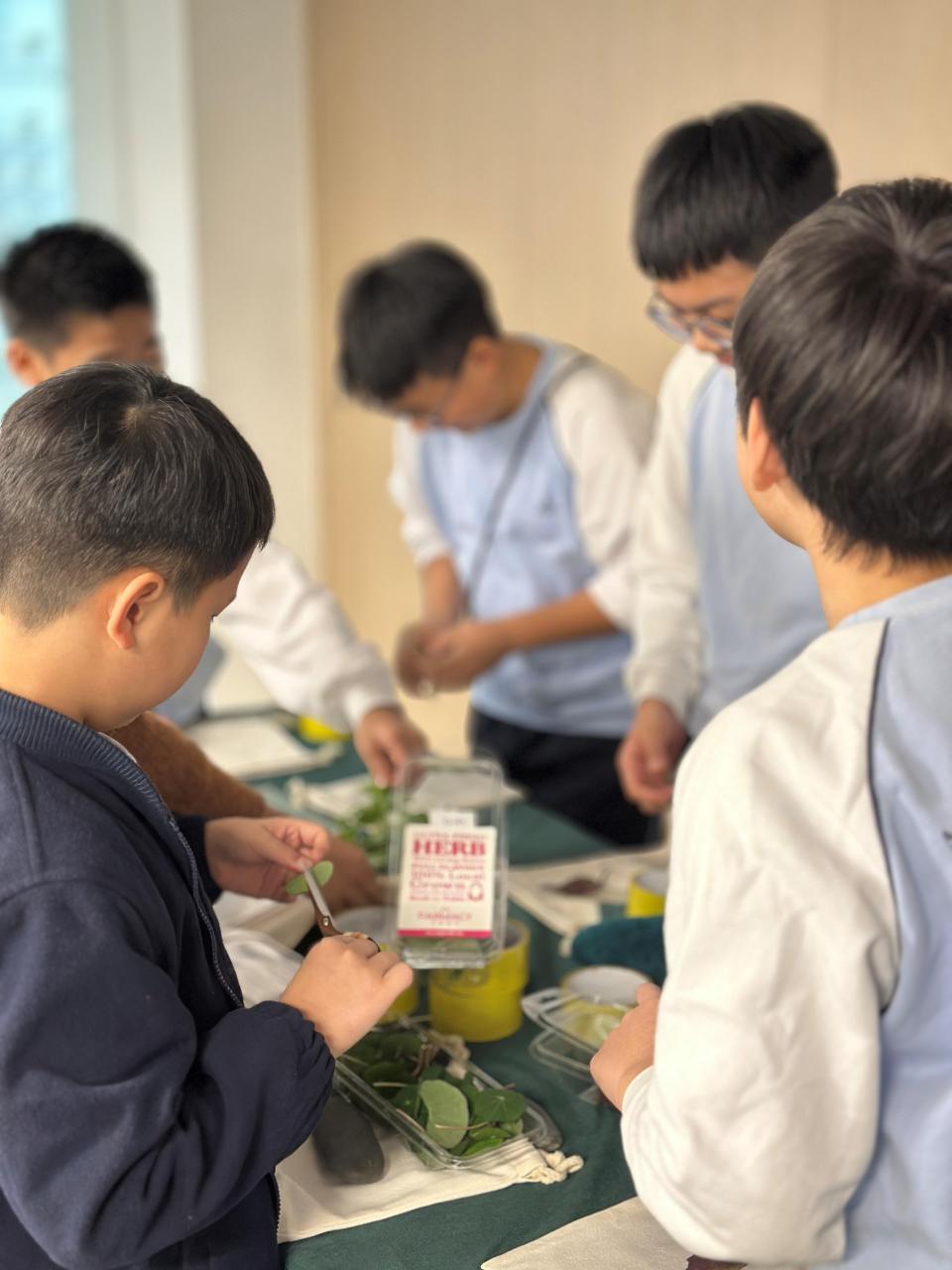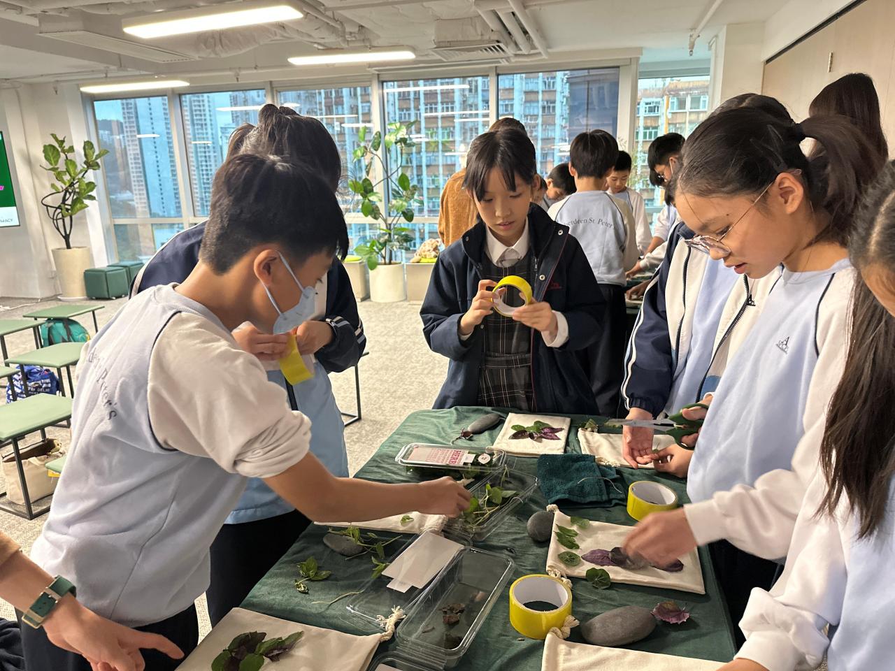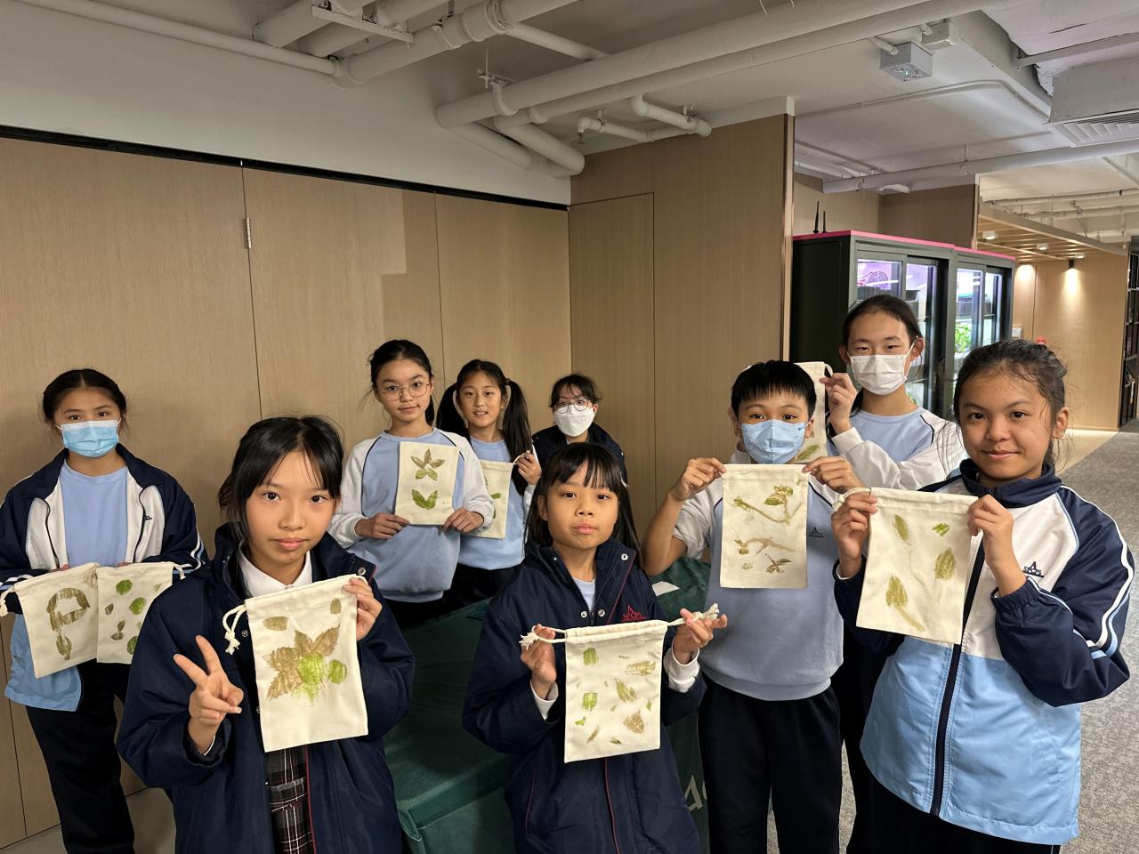 同學們在工作坊中製作了擴香石、布袋等日後用於學界本地農墟上出售的商品。其中,以香草葉汁為布袋上色的製作過程,兼具園藝治療的效果,有助於提升學生對精神健康的關注。