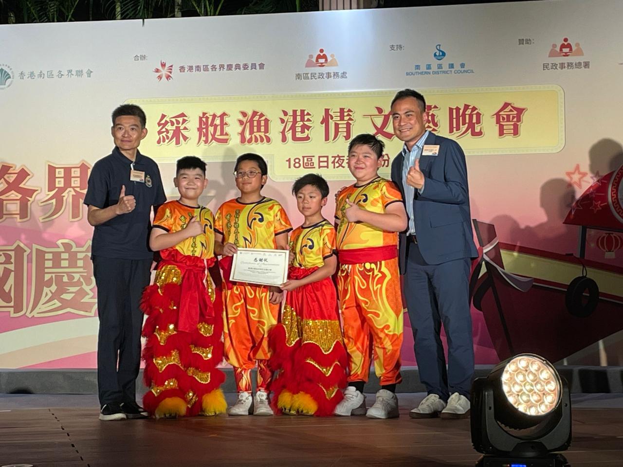 香港南區各界聯會,香港南區各界慶典委員會、南區民政事務處於29/09/2025(一) 在香港仔海濱公園合辦「慶祝中華人民共和國成立75周年-熊貓綵艇漁港情繽紛光影耀南區」,本校醒獅隊獲邀請到場表演,氣氛熱烈,表演獲各方一致讚許。