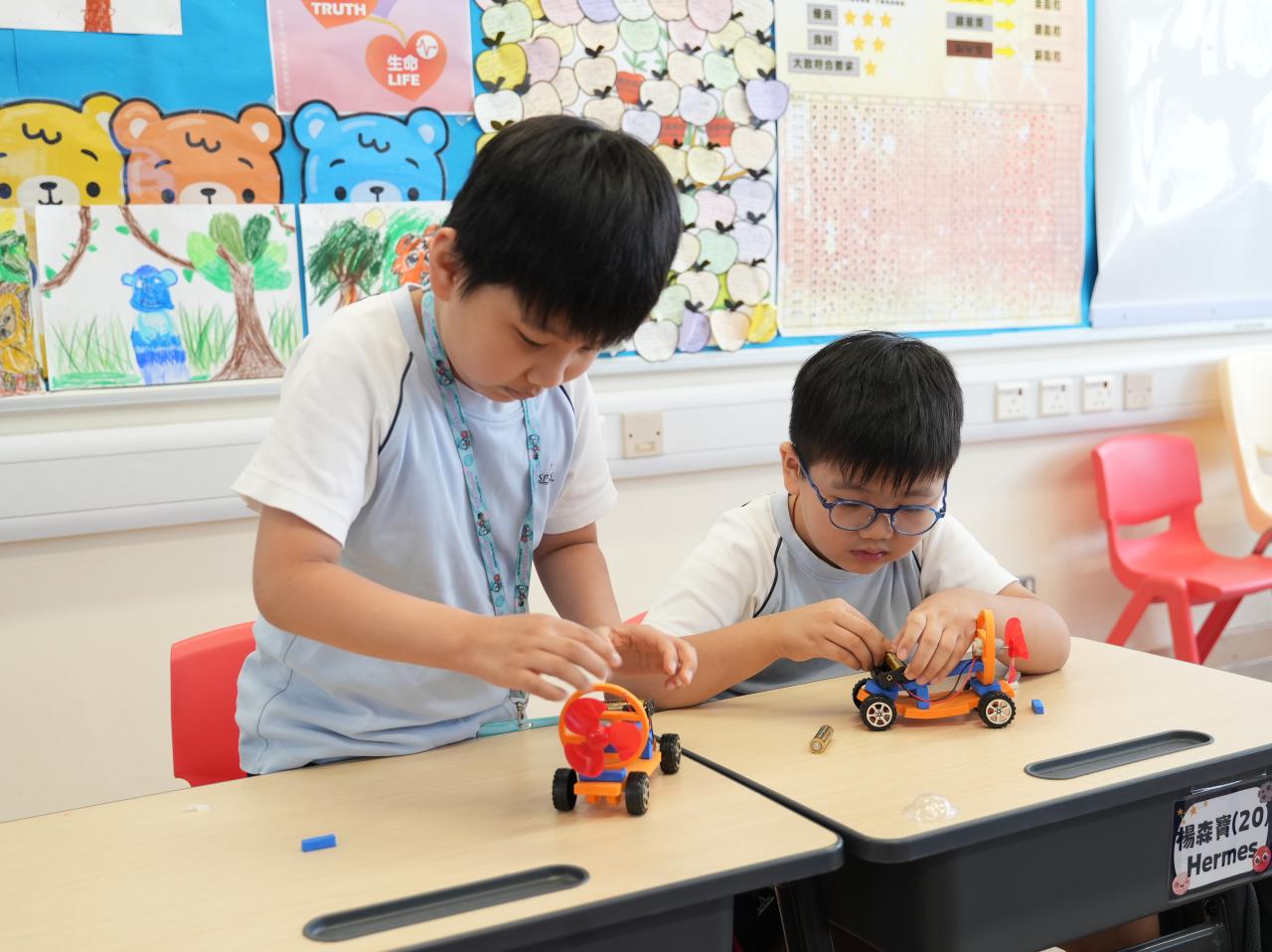為了加強學生對節能減碳、創新科技及機電安全的認識,小一和小二學生在18/06/2025(三)通過「機電青少年大使」校園計劃進行了有趣的STEAM探究活動。他們分別製作了「小小風力車」和「懸浮球」。此活動不但能提升學生對STEAM教育的興趣,也能加深學生對機電行業發展的了解。