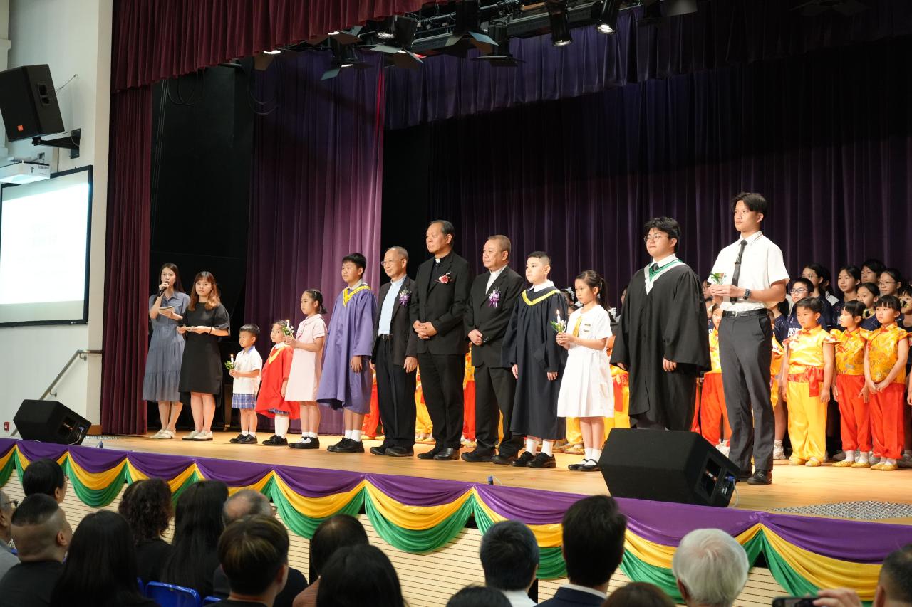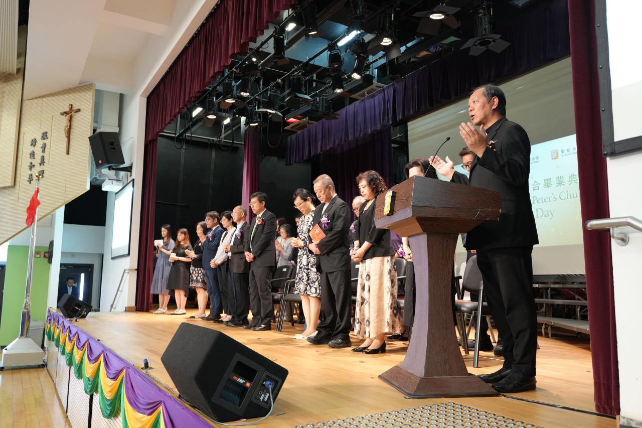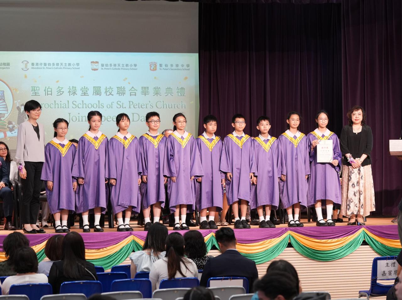 2024-2025聖伯多祿堂屬校(聖伯多祿中學、聖伯多祿天主教小學、天主教聖伯多祿幼稚園及本校)聯合畢業典禮已於23/05/2025(五)假聖伯多祿中學禮堂順利舉行。當日出席的嘉賓眾多,包括主禮嘉賓民政事務總署民政事務專員區家盛太平紳士、天主教香港教區陳永超副主教、天主教聖伯多祿幼稚園校董陳德雄神父、本校校監伍國寶神父及各校校董等人,場面既莊嚴又熱鬧。於授憑及頒發獎狀後,四校的畢業生代表演說致謝辭,向一眾校監、校董、校長、老師及家長表示謝意。除此之外,本校更有花式跳繩表演,而聖伯多祿天主教小學學生則表演中國舞、聖伯多祿中學學生表演敲擊樂及天主教聖伯多祿幼稚園學生也有舞蹈表演。最後,聯合畢業典禮在薪火相傳及祝福禮下圓滿結束。