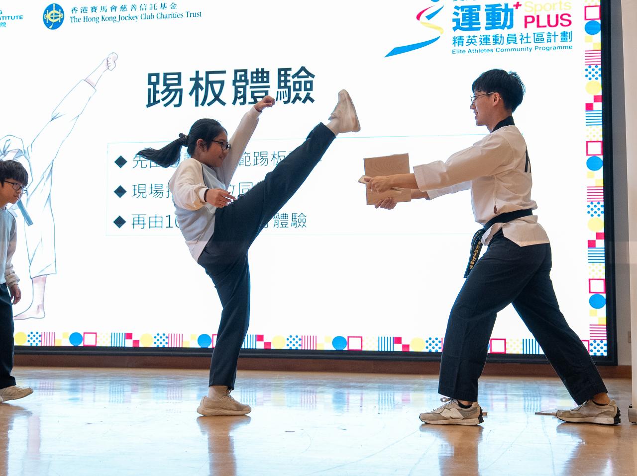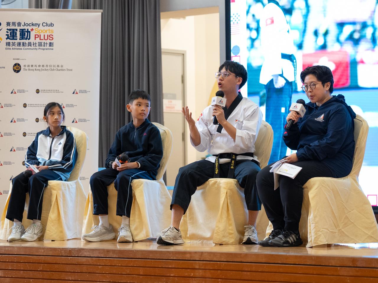 配合本年度的關注事項-「專才教育」,本校獲「賽馬會運動+精英運動員社區計劃」協助,榮幸能邀請香港跆拳道代表呂靖楠先生為四至六年級學生作分享活動,分享內容講述運動員生涯的艱苦及必須保持堅毅的精神,是次分享會作為學生生涯規劃的教育,學生亦有在活動中體驗跆拳道的活動,表現積極踴躍。