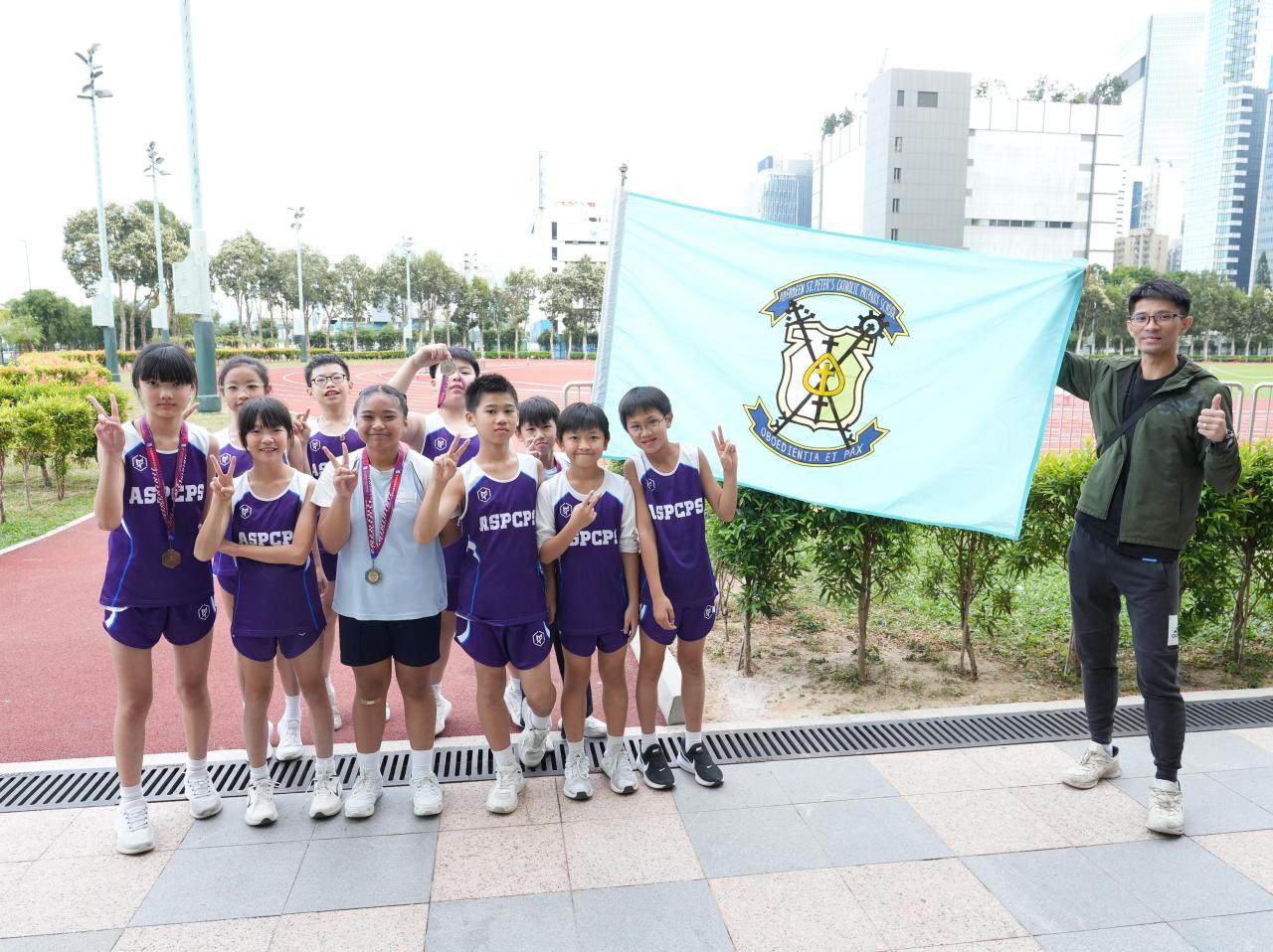 本校田徑隊於11月21日參加由中國香港學界體育聯會主辦的2025-2026年度港島西區小學校際田徑比賽。各隊員於比賽中表現出色,其中男子乙組憑藉5C班何棨恒於擲壘球獲得亞軍、4A班關仲行於跳遠獲得殿軍、5E班高澤亨於60米跑獲得第5名,以及接力隊於4x100米接力跑獲得第7名,勇奪男子乙組團體第6名(優異獎)。此外,6A班朱凱婷及6D班GOTUAL MOIRA AGATHA PICONES亦分別於女子甲組60米跑及女子甲組擲壘球獲得季軍及殿軍,恭喜各位獲獎隊員!
