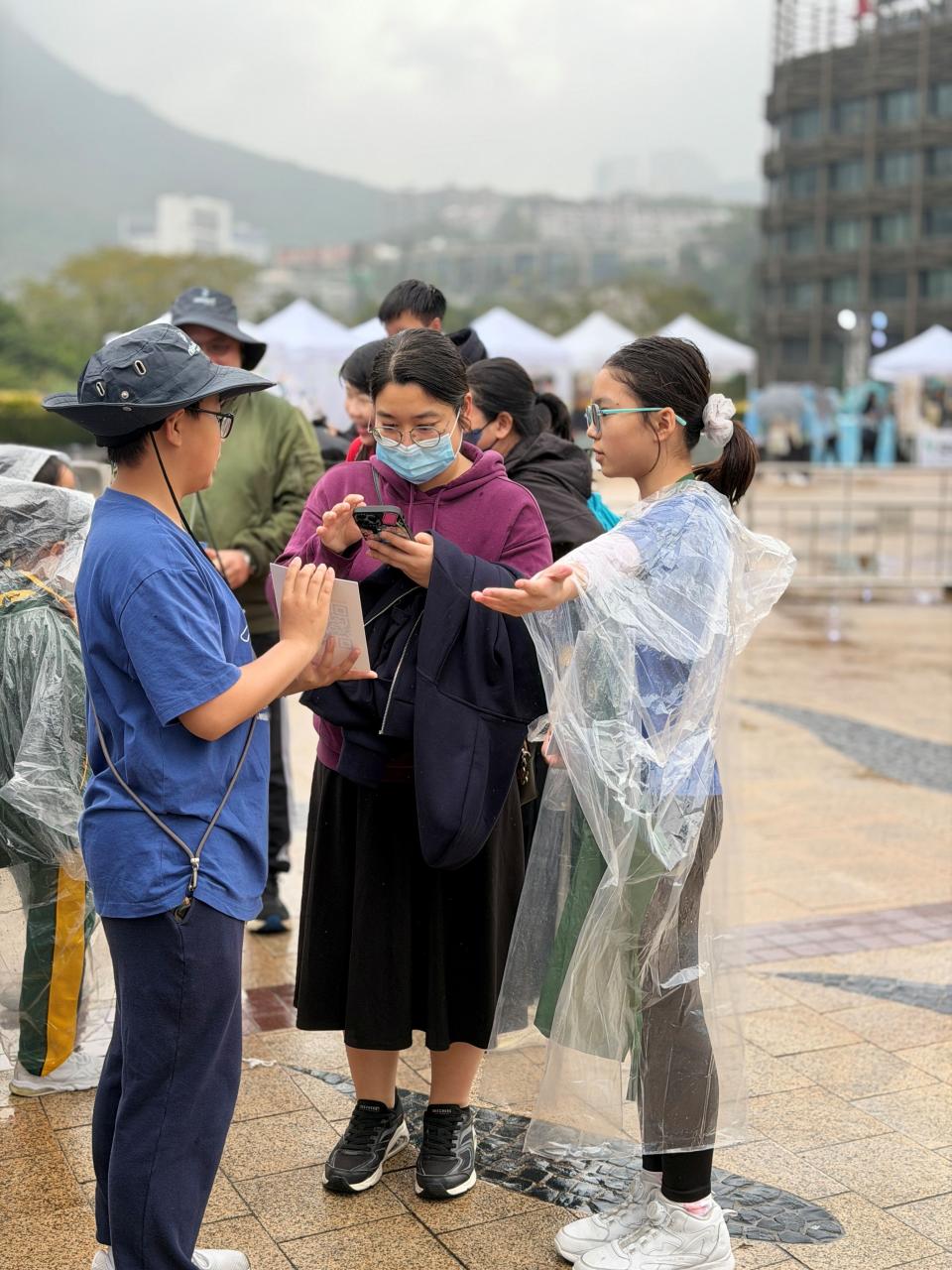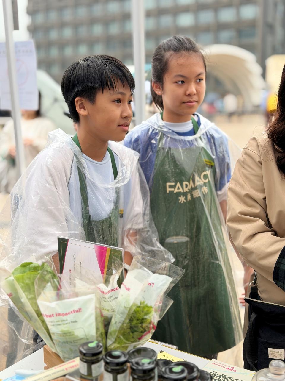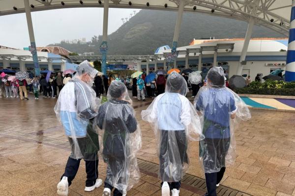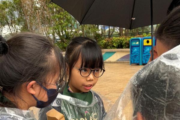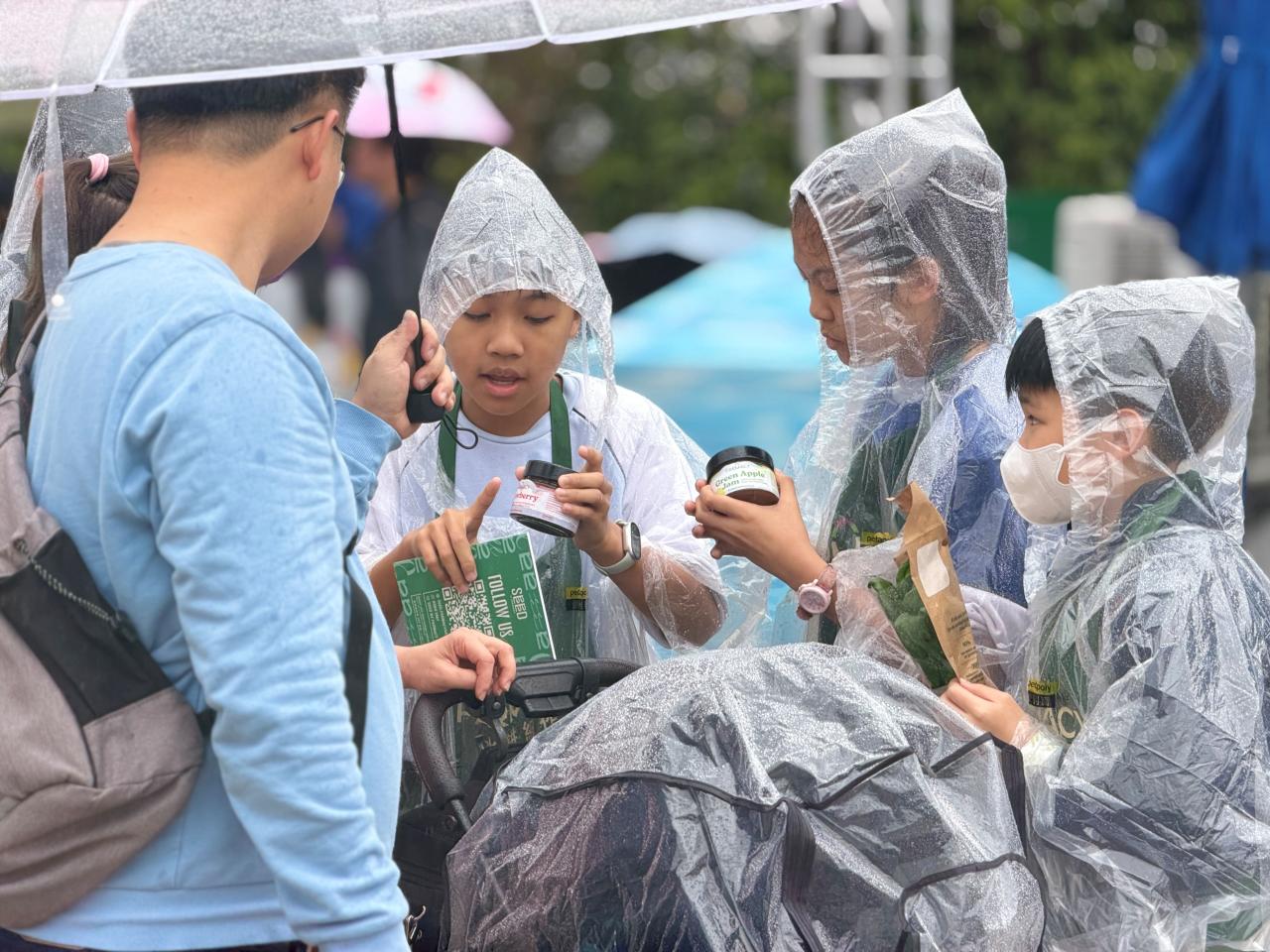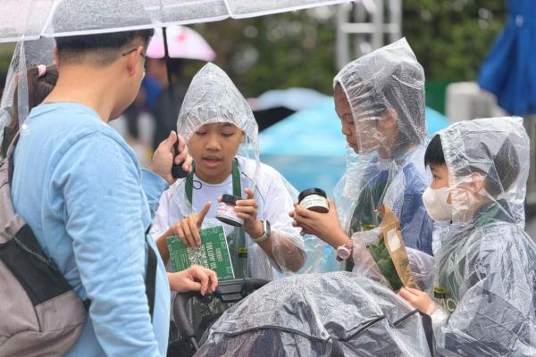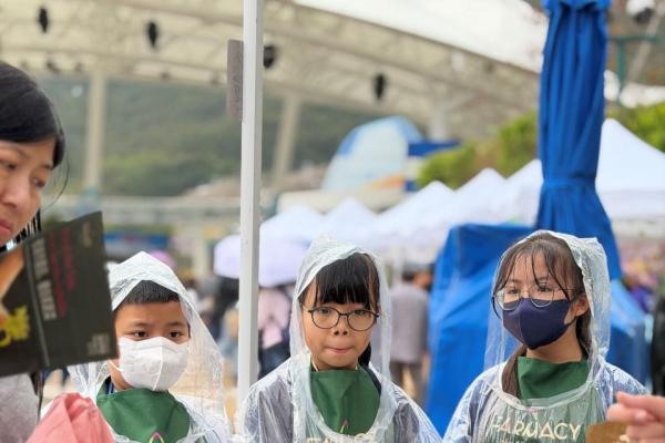 活動當日雖然遇上大雨,但同學們熱情不減,穿著雨衣主動走到廣場中央,向遊客積極推介自製商品。過程中,他們更勇於嘗試運用普通話及英語講解產品特色,展現出出色的語言應用能力與抗逆精神。