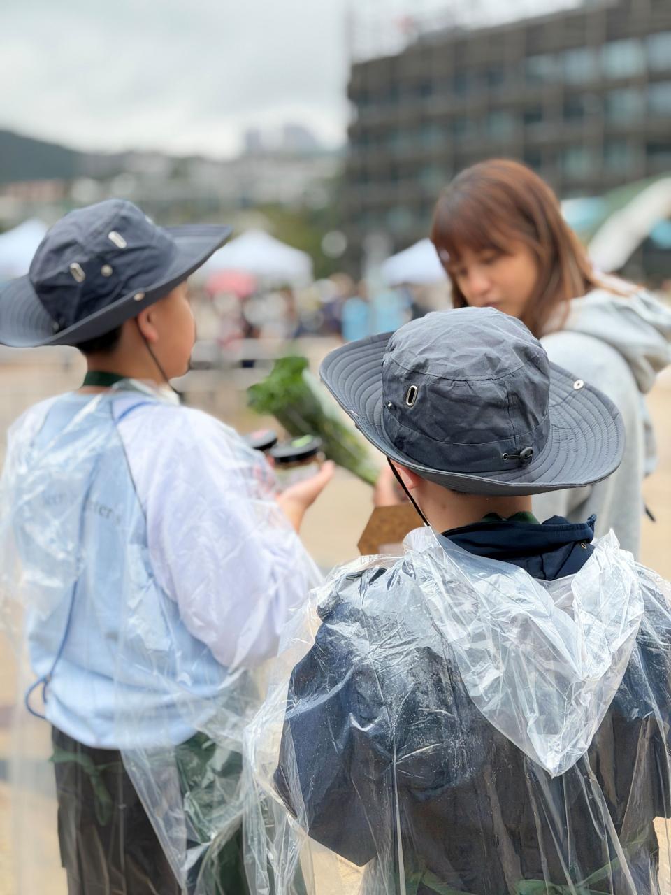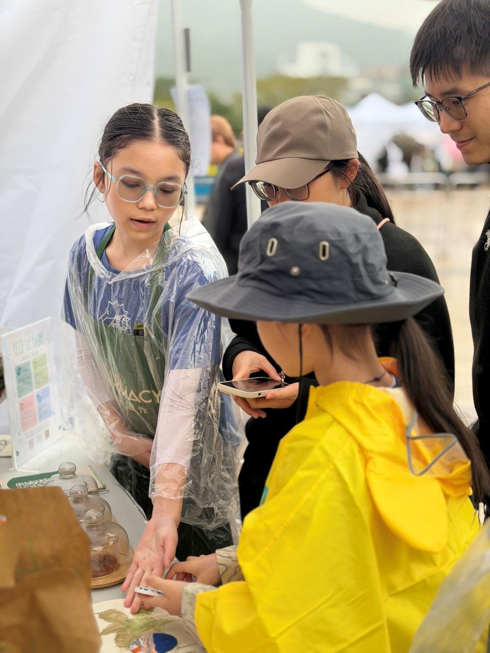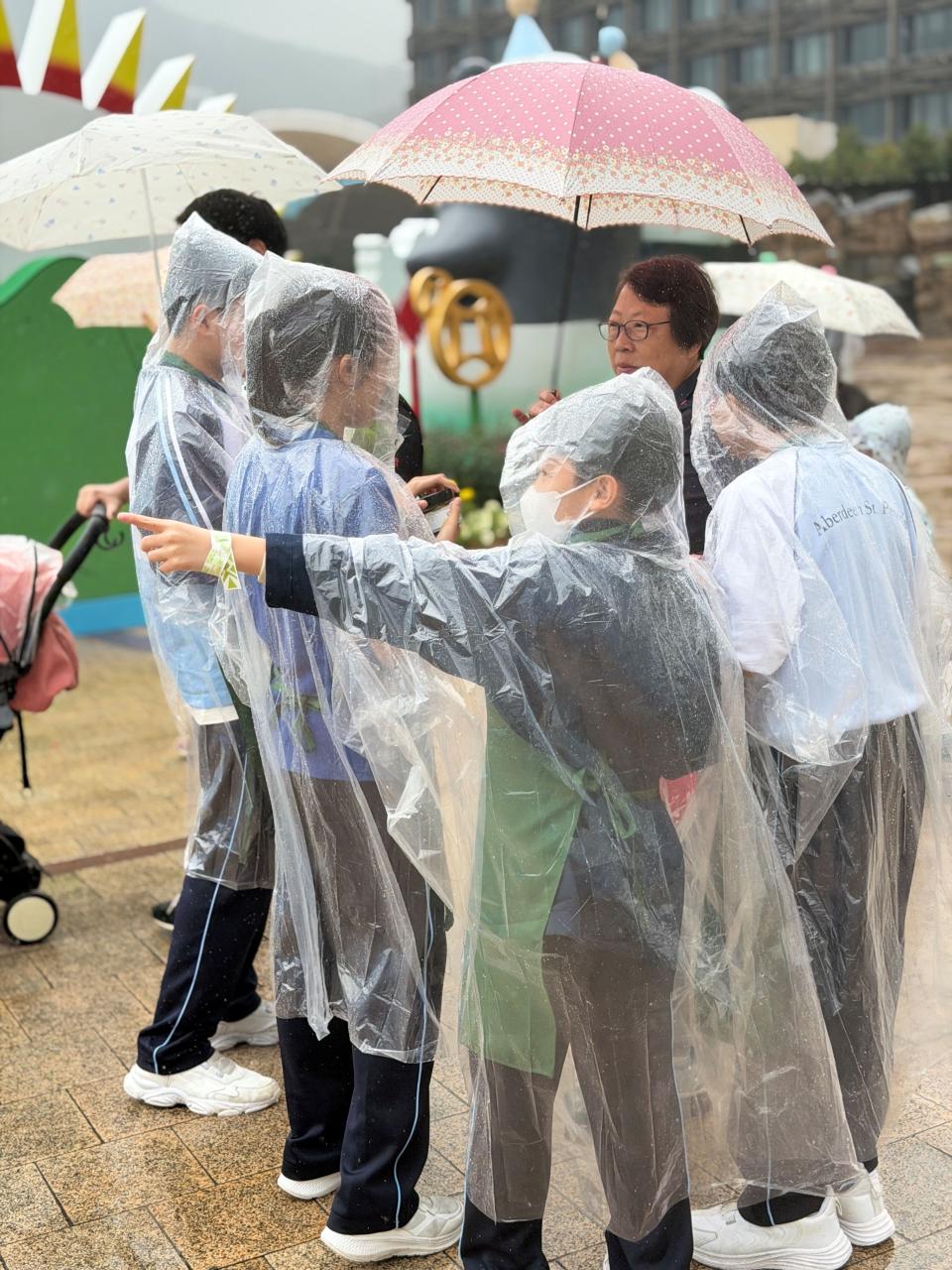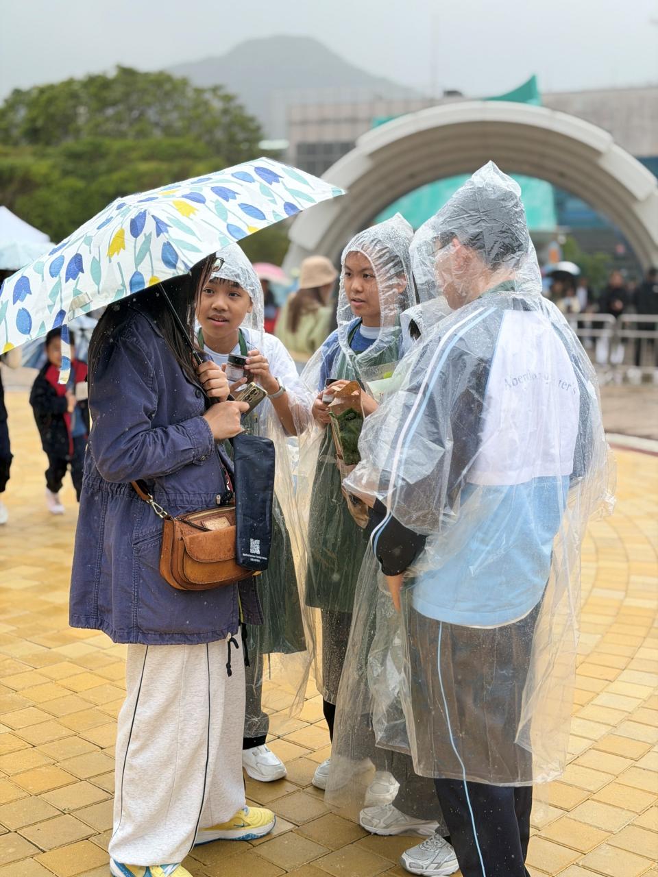 活動當日雖然遇上大雨,但同學們熱情不減,穿著雨衣主動走到廣場中央,向遊客積極推介自製商品。過程中,他們更勇於嘗試運用普通話及英語講解產品特色,展現出出色的語言應用能力與抗逆精神。