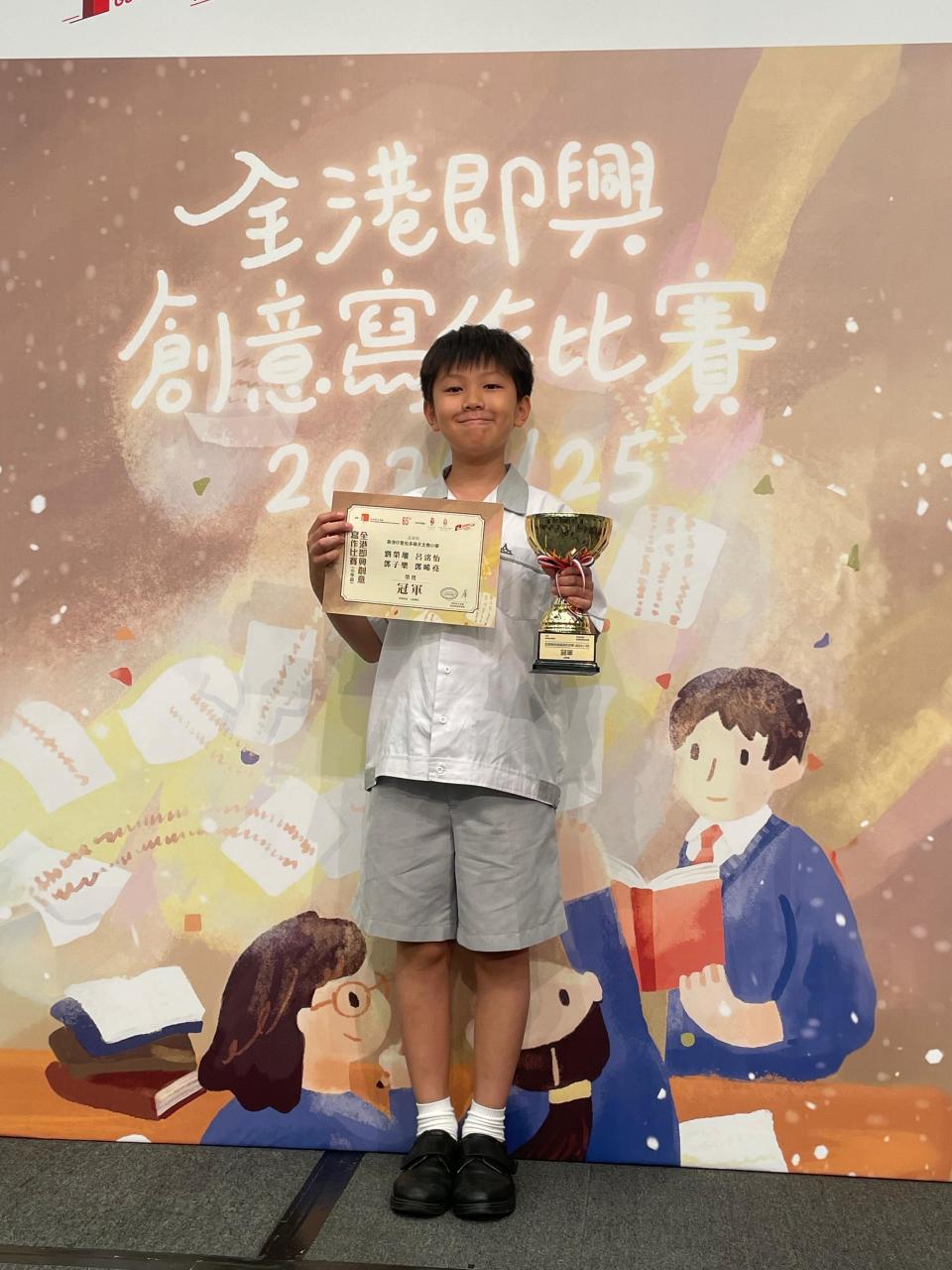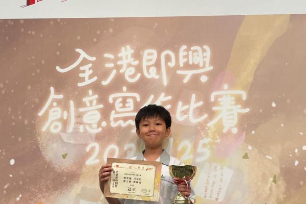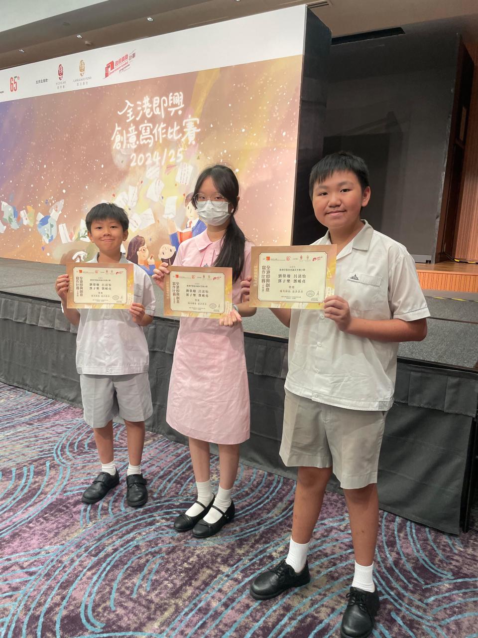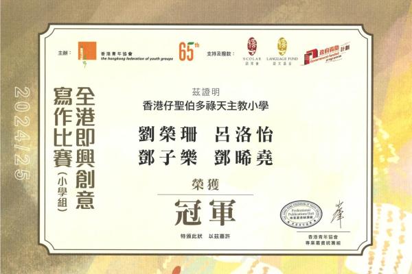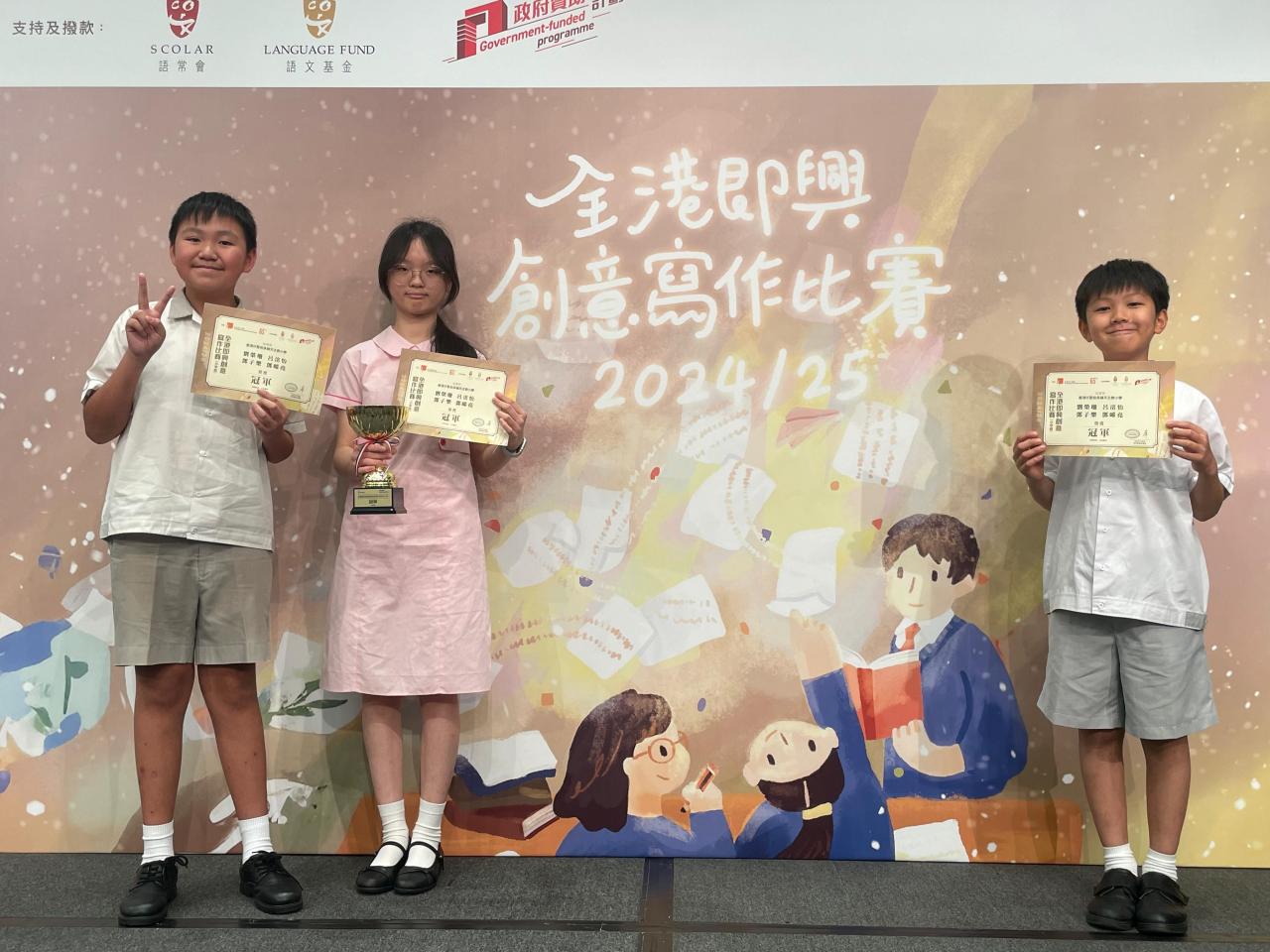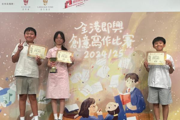 由語文教育及研究常務委員會(語常會)支持及語文基金撥款,香港青年協會主辦的「全港即興創意寫作比賽2024/25」,本校由六年級四位同學組成的隊伍榮獲小學組冠軍。
