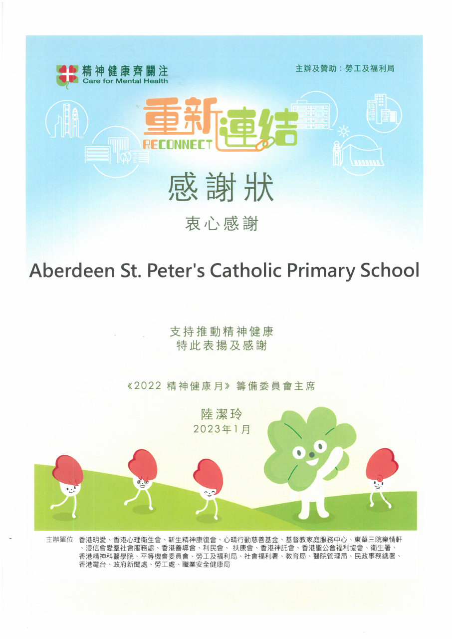 支持推動精神健康感謝狀