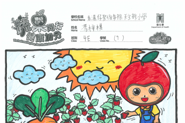 本校4E班馮梓棋同學於衞生署舉辦的「『進食充足蔬果』─ 填色創作比賽2026」中,憑藉出色的創意與細膩的填色技巧,榮獲優異獎。 是次比賽旨在鼓勵學生透過藝術創作,認識均衡飲食及多吃蔬果的重要性。馮梓棋同學的作品不僅色彩豐富、構圖生動,更能充分傳達健康飲食的正面訊息,獲得評審一致讚賞。 校方祝賀馮梓棋同學的卓越成就,並以此為榮! 願這次比賽鼓勵更多同學多吃蔬果,養成健康的飲食習慣。