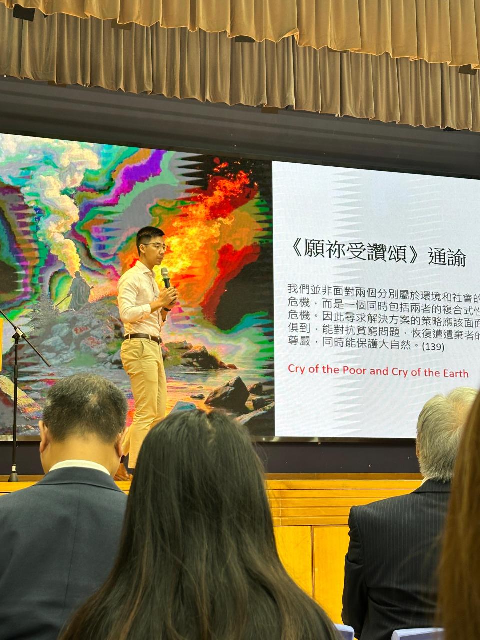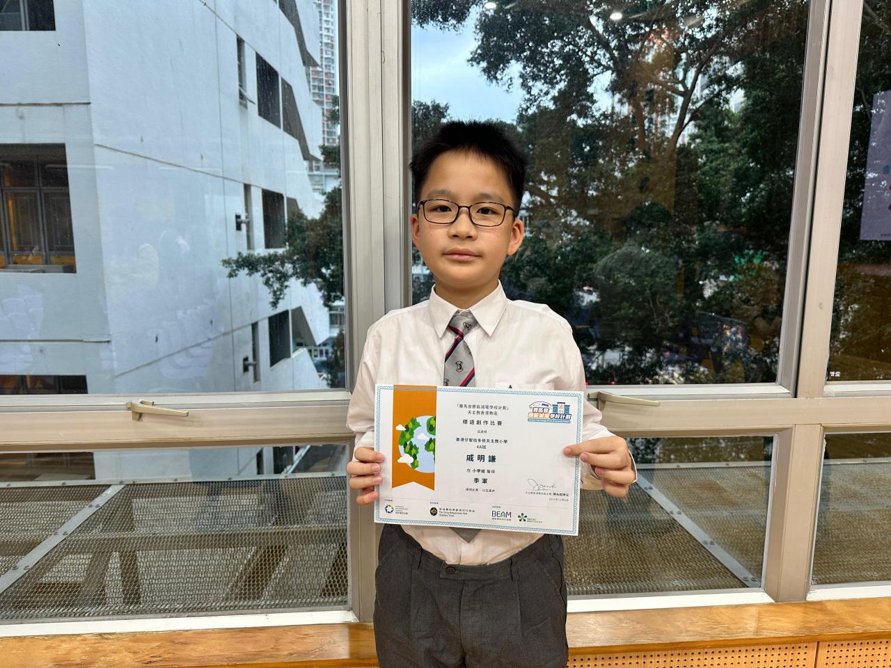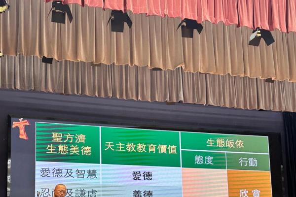 原定於2025年7月舉行的「賽馬會節能減電學校計劃——教區及明愛學校成果分享會暨頒獎典禮」因受惡劣天氣影響而延期至07/11/2025(四)舉行。當天,天主教香港教區副主教陳永超神父、天主教香港教區教育事務主教代表龔廣培先生代表致勉,回顧計劃進行一年多以來之成果。環保教育講座後,有學校代表分享參加此計劃於工程或環保教育活動取得之經驗,頒獎典禮部分則頒發了標語設計比賽的各個獎項。本校5A班戚明謙同學榮獲小學組季軍。 得獎作品: 愛主愛人愛地球,省電節能不奢求 創作理念: 天主創造萬物給人類,人類應該奉行愛主愛人的精神,並且愛地球,以求令人類可以繼續保存天主的愛。省電節能每天都要實行,以配合愛地球的目的,不奢求會有更多資源源源不絕地提供,應要減省能源作為目標,讓世世代代可享受天主的愛。