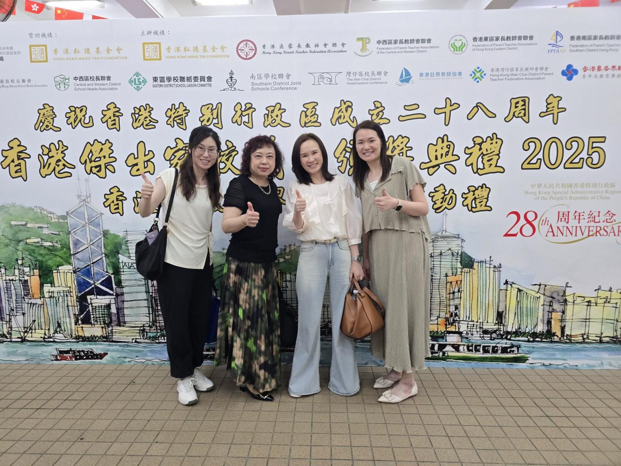 本校侯麗珊校長、眾位老師、學生及家長榮獲多個由香港弘德基金會、香港區家長教師會聯會,聯同香港島校長聯會、中西區校長聯會、東區學校聯絡委員會、南區學校聯會、灣仔區校長聯會、香港註冊教師協會、中西區家長教師會聯會、香港東區家長教師會聯會、香港南區家長教師會聯會及香港灣仔區家長教師會聯會攜手合辦,並由教育局贊助及支持的「香港傑出家校義工選舉2025」的多個獎項,以表揚一眾默默為學校付出的教師、家長及學生義工。本校獲獎的名單如下: