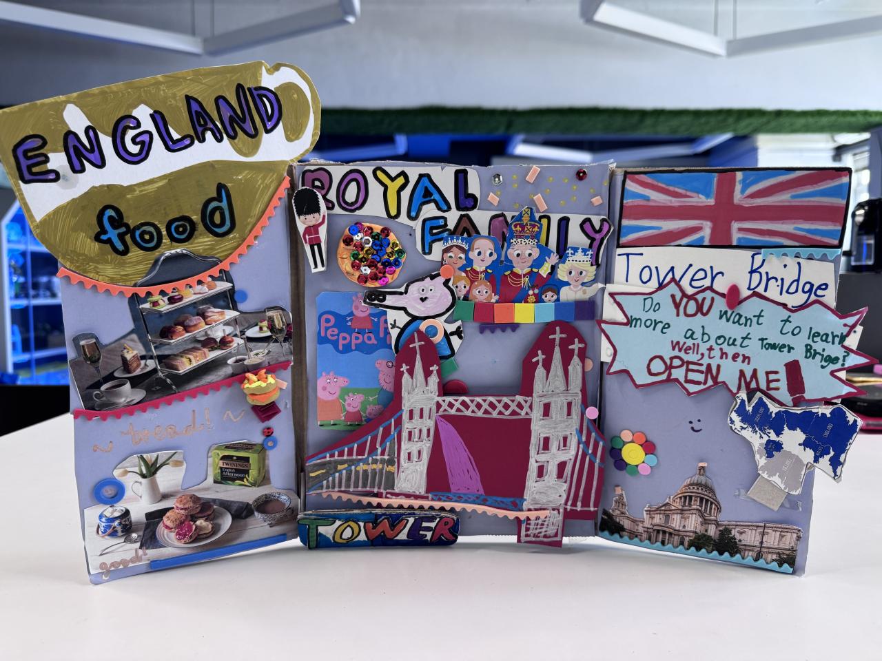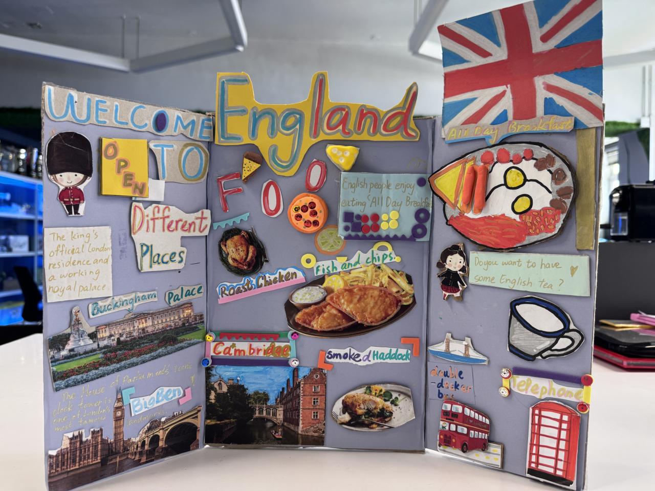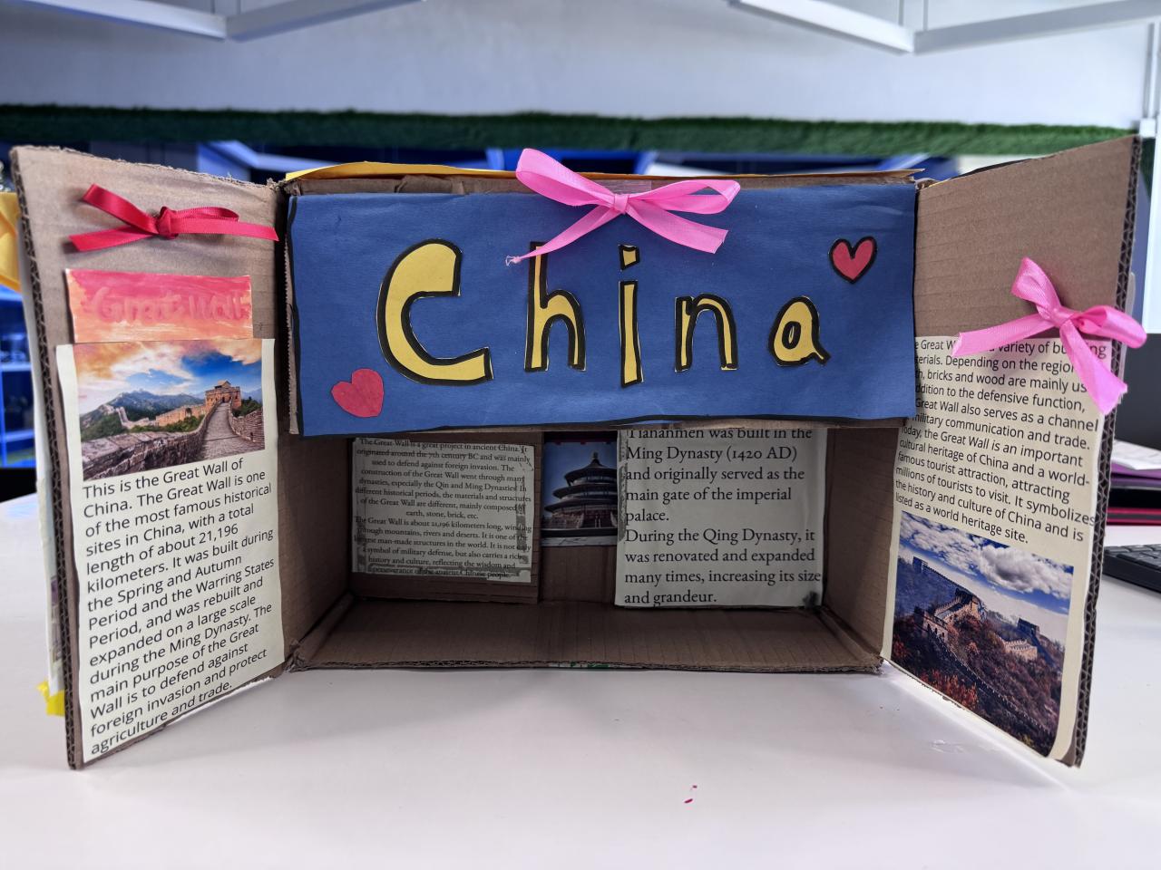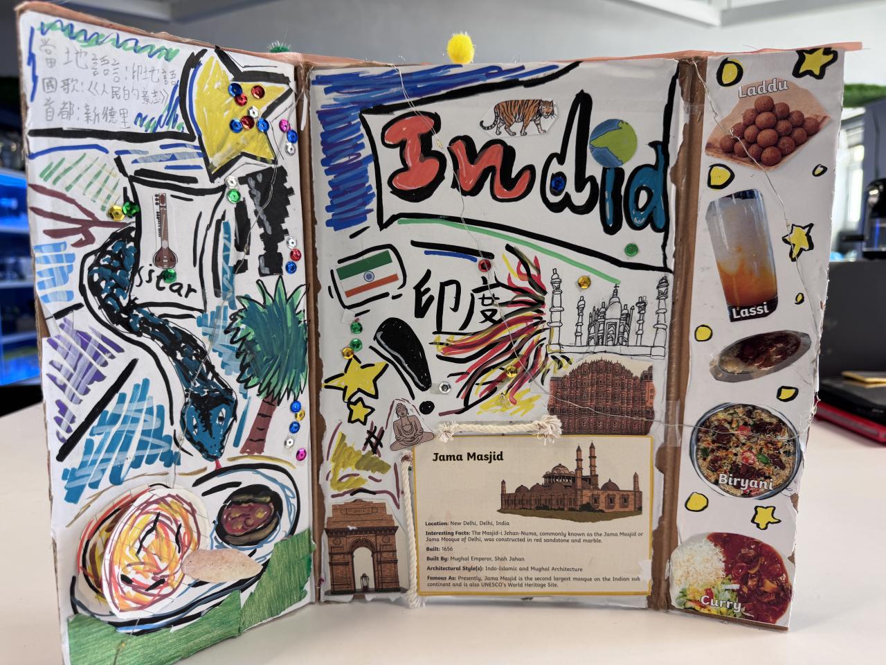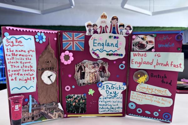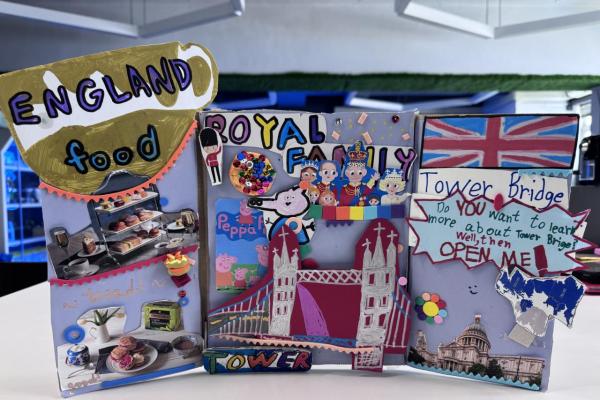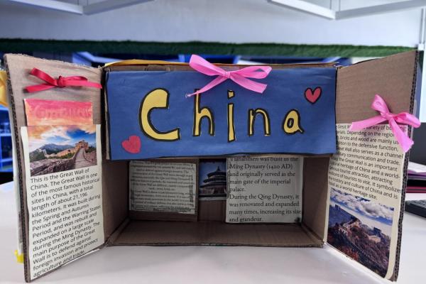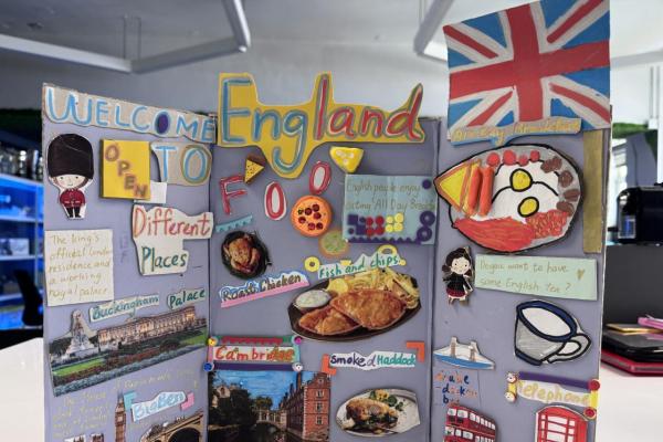 Welcome to our English learning showcase! Our Primary students created wonderful artwork inspired by the book “Around the World in Eighty Days.” They explored the cultures of China, England, France, Japan and India, and presented what they learned through drawings, collages and creative designs. Their work features Chinese symbols, English afternoon tea, French landmarks, Japanese traditions and colourful Indian patterns. Students also wrote short English descriptions to explain the cultural elements they chose. This project helped them learn about different countries, practise English in a meaningful way and develop creativity. We are proud of their effort and imagination!