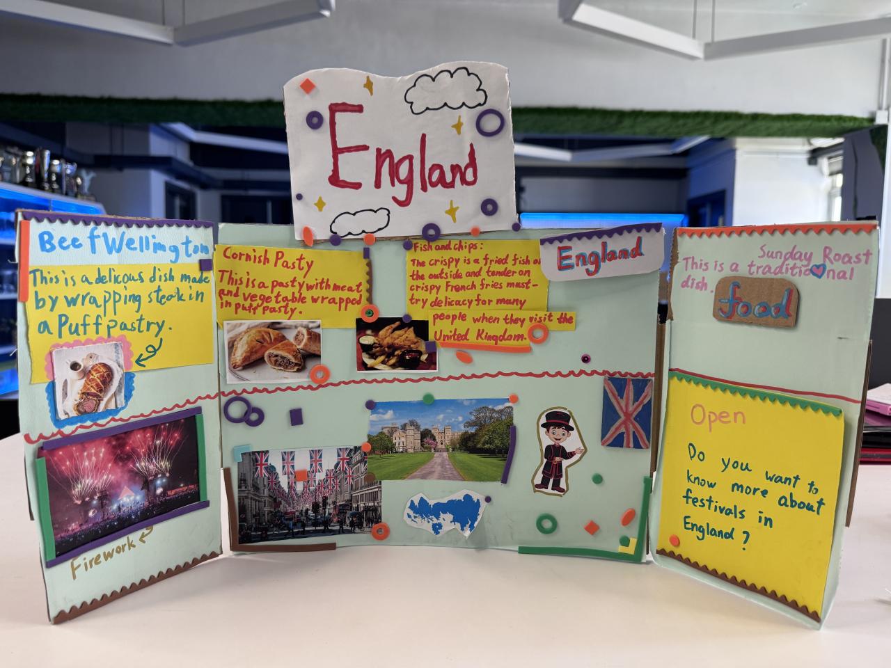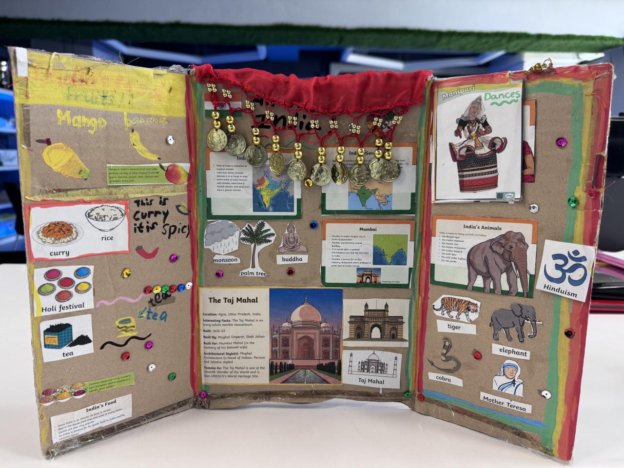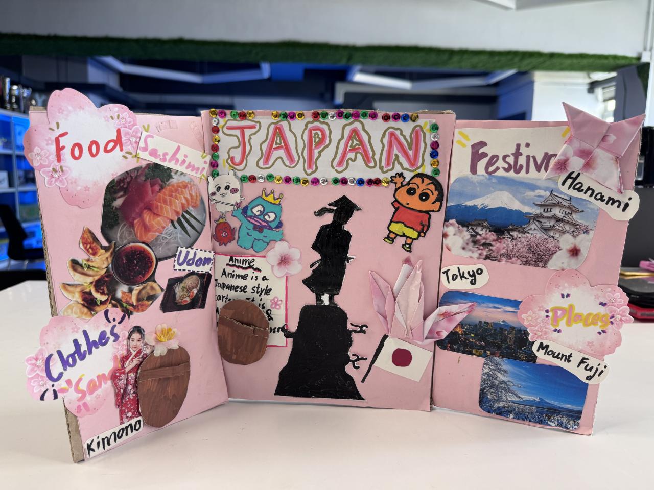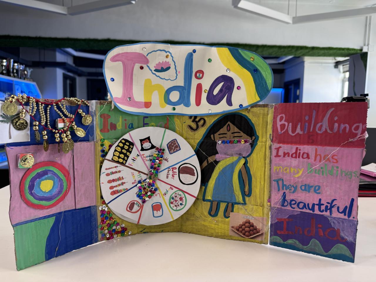 Welcome to our English learning showcase! Our Primary students created wonderful artwork inspired by the book “Around the World in Eighty Days.” They explored the cultures of China, England, France, Japan and India, and presented what they learned through drawings, collages and creative designs. Their work features Chinese symbols, English afternoon tea, French landmarks, Japanese traditions and colourful Indian patterns. Students also wrote short English descriptions to explain the cultural elements they chose. This project helped them learn about different countries, practise English in a meaningful way and develop creativity. We are proud of their effort and imagination!