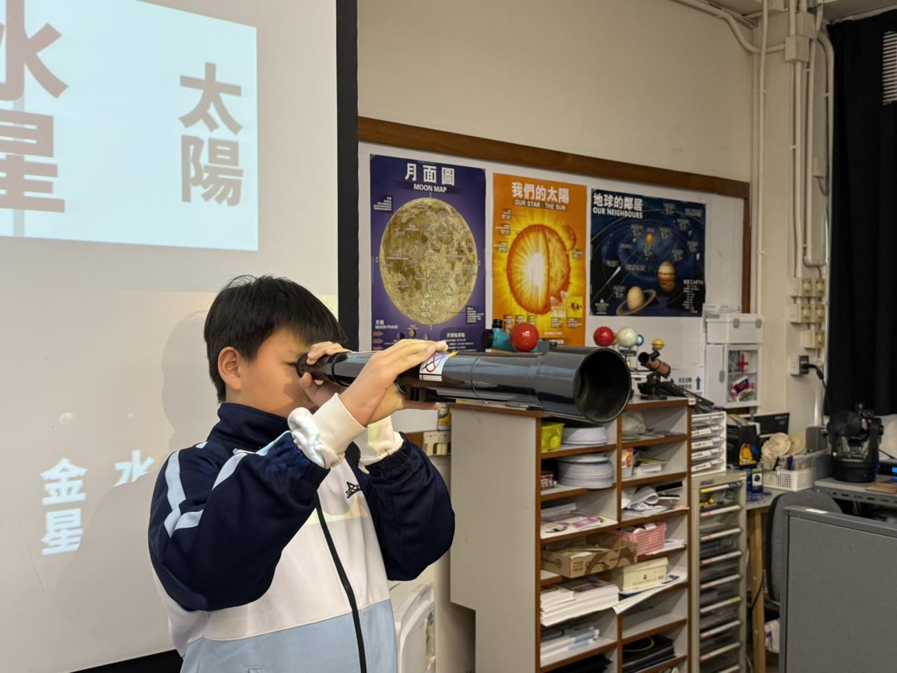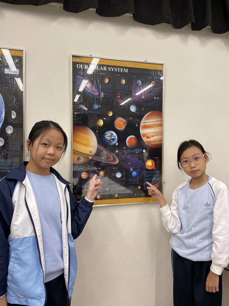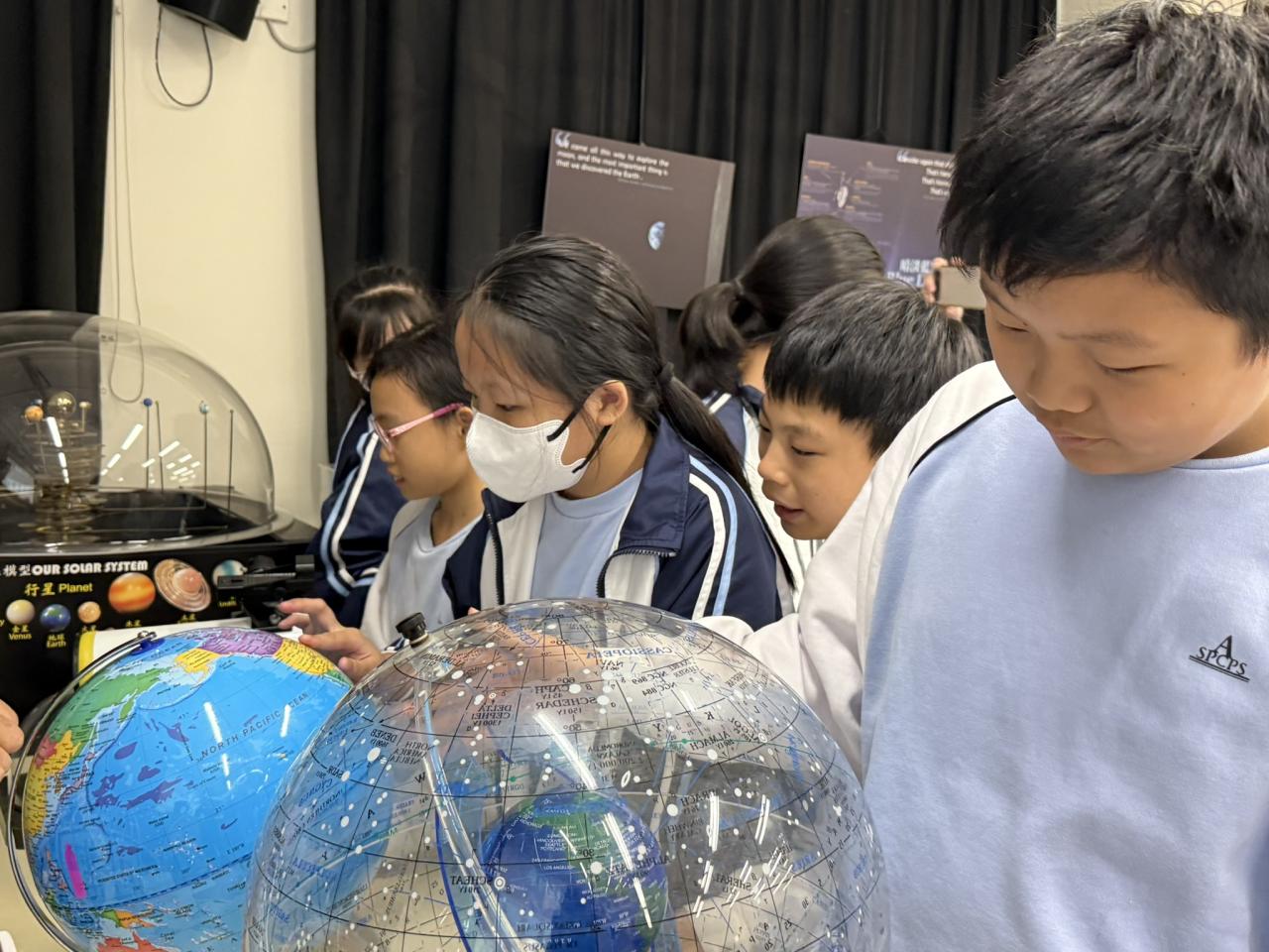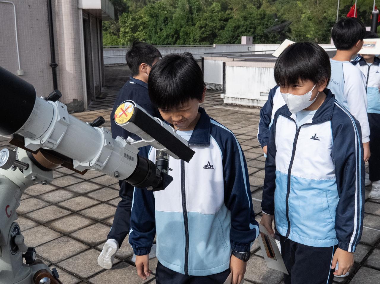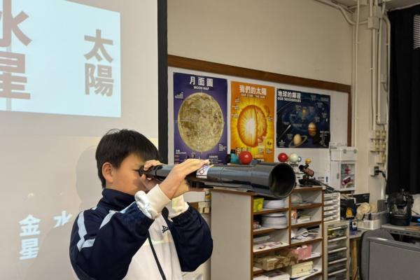 為配合常識科學習主題「科技與創新」,本校安排六年級各班學生分別於11月尾及十二月初參與「可觀詮宇宙」小學科學探究課程(我們的太陽系),他們透過體驗式戶外參觀活動進行全方位學習。學生在學習過程中透過製作活動、運用濾光鏡觀測太陽、模擬星象館等設施,了解太陽系、地球與宇宙星空的關係,以培養學生保護環境的態度。