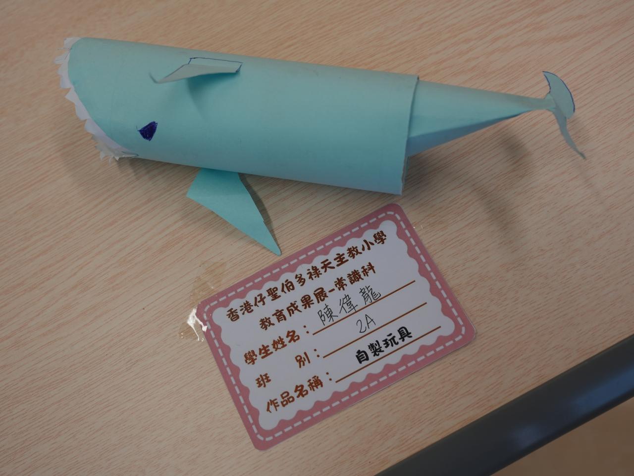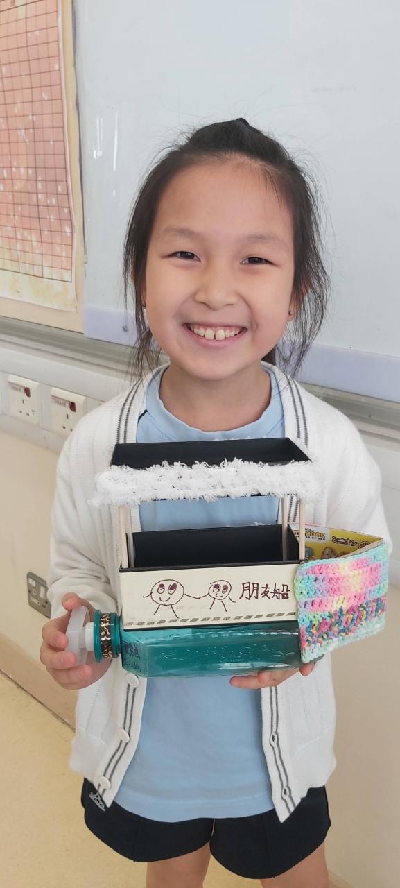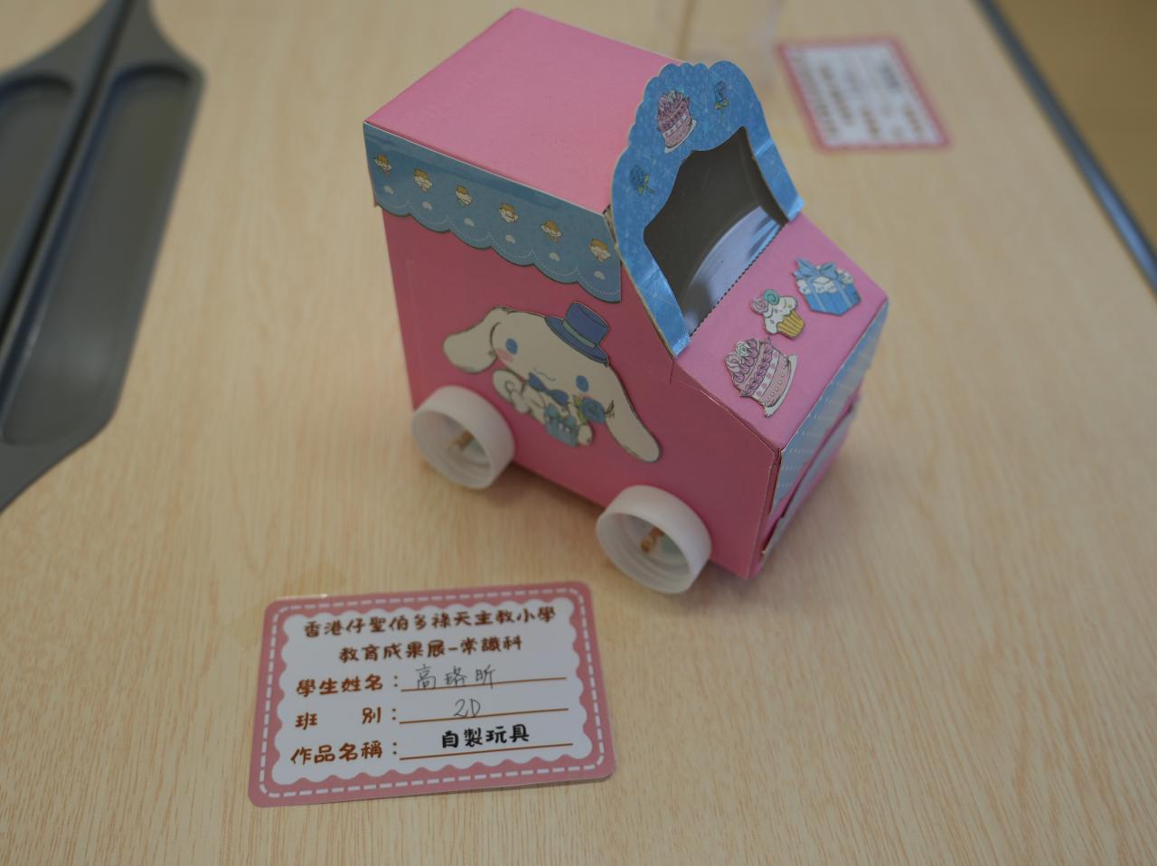 二年級學生利用回收物自行製作一個玩具,讓學生發揮創意之餘,亦希望他們養成環保生活的習慣。