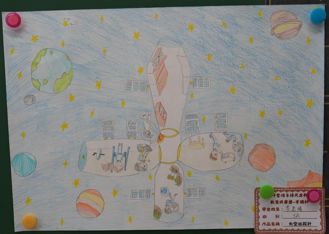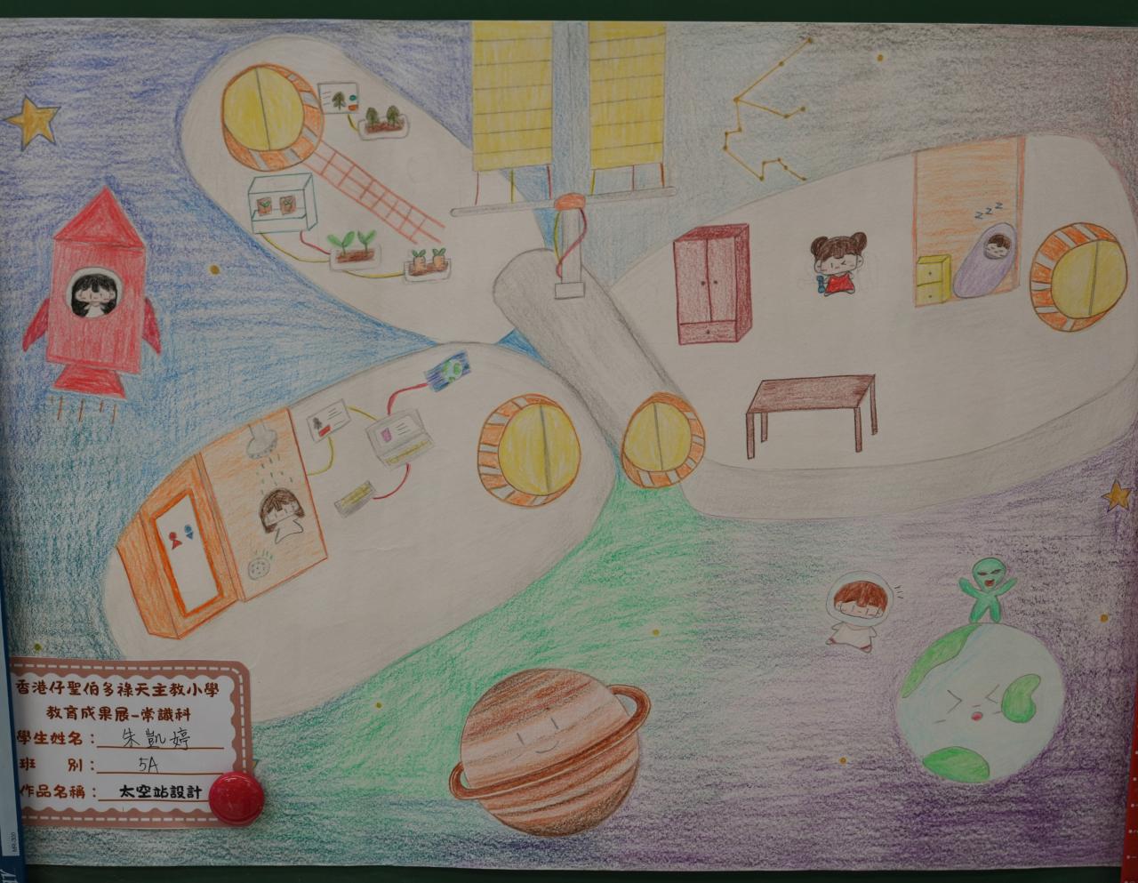 五年級學生為解決太空人在太空生活中遇到的困難,學生設計太空站,希望能給太空人在太空中有舒適的環境居住,藉此讓學生發揮創意之餘,亦認識太空科技與日常生活的關係。