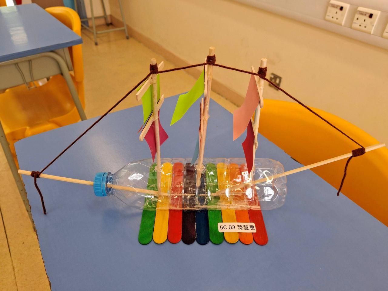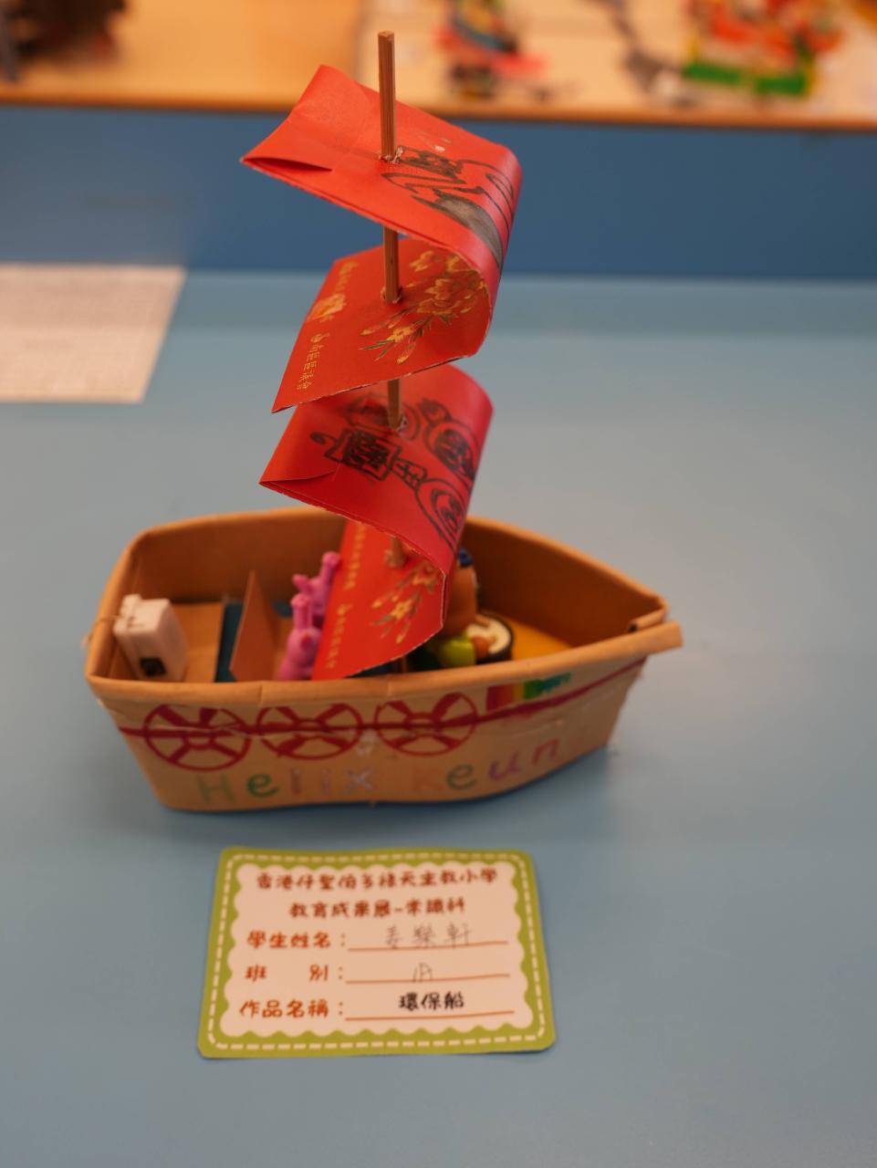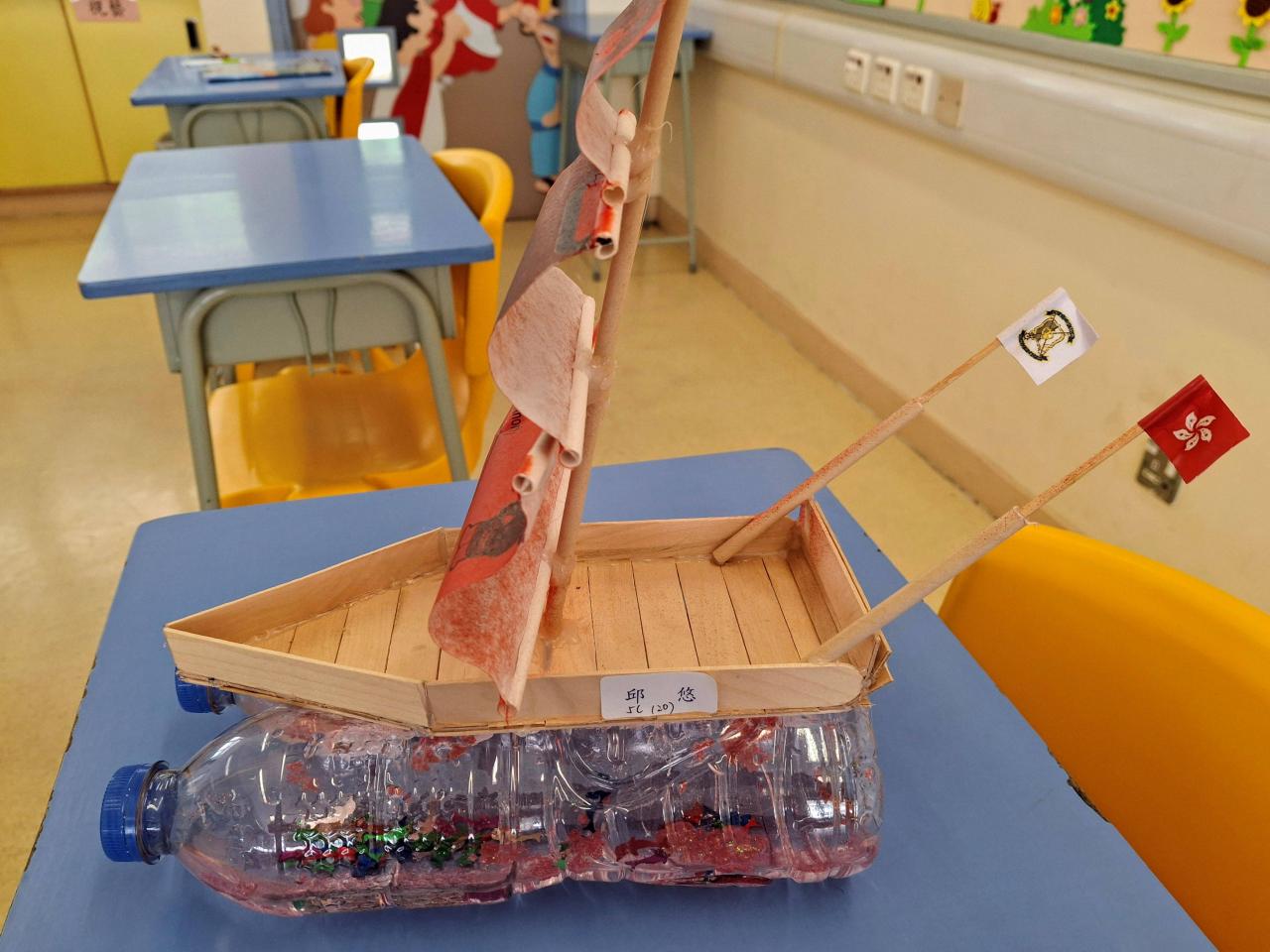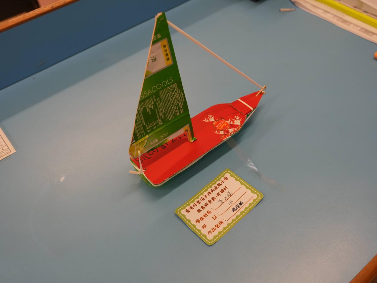 配合學校的學習主題口號–乘風破浪勇往前,學生於假期中設計並製作了一艘利用回收物製成的船,讓學生發揮他們的創意。