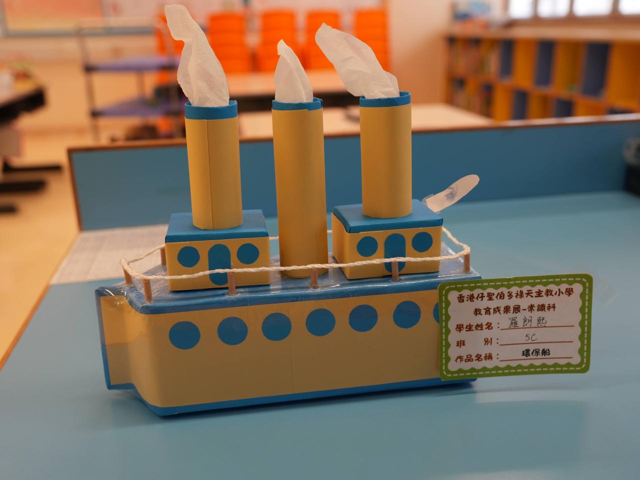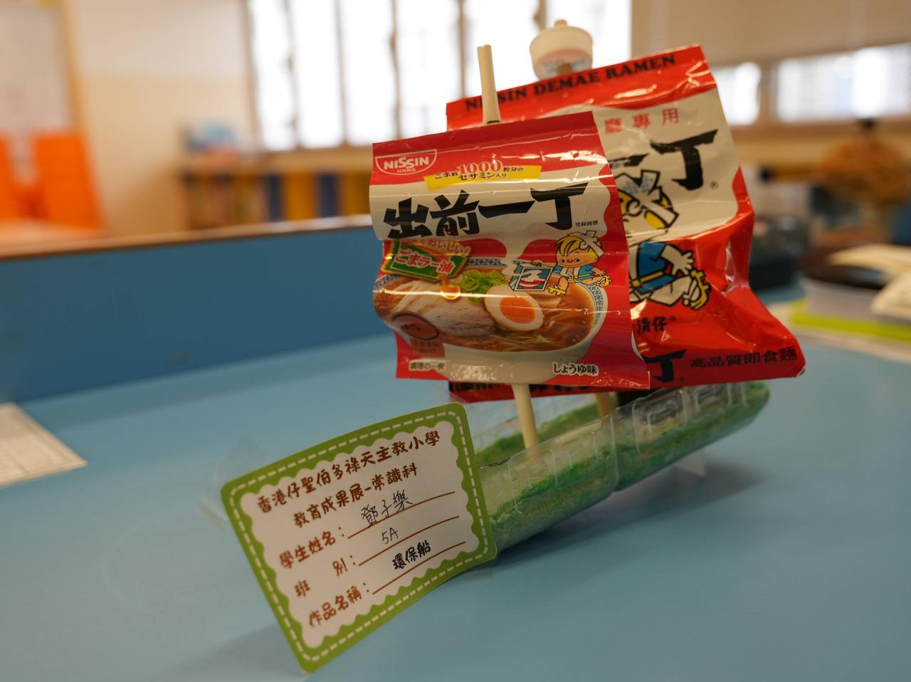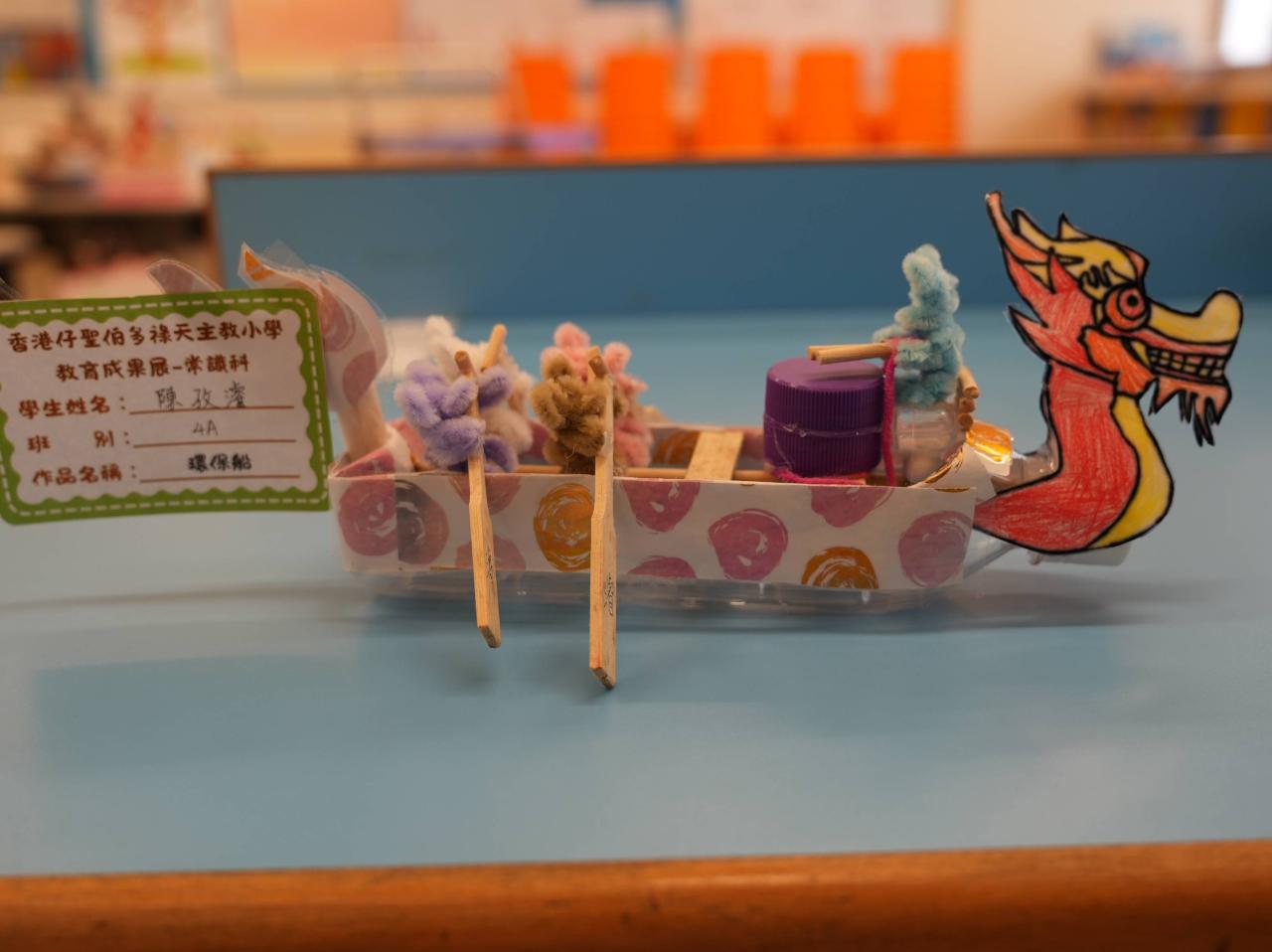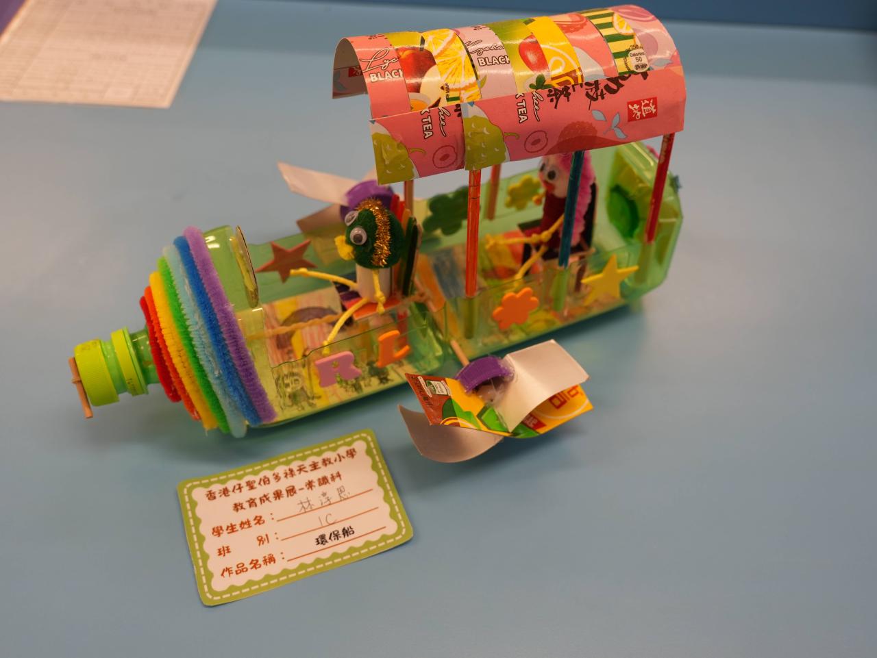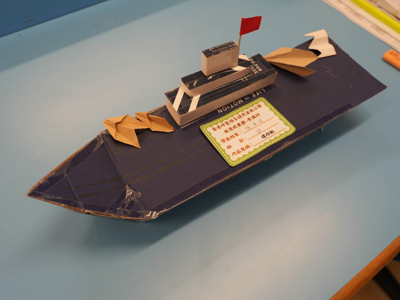 配合學校的學習主題口號–乘風破浪勇往前,學生於假期中設計並製作了一艘利用回收物製成的船,讓學生發揮他們的創意。