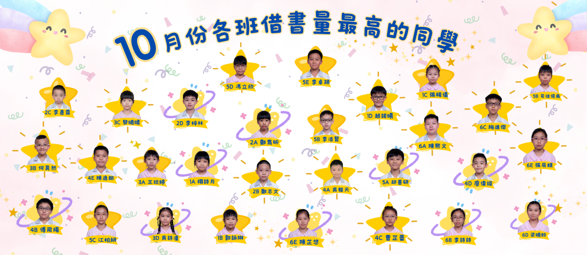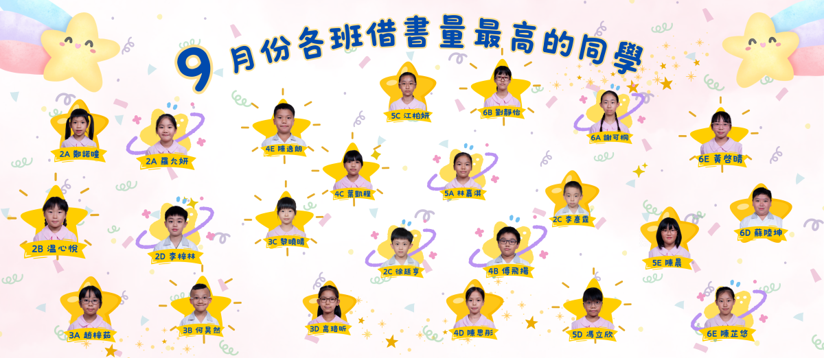 由9月份開始,每月統計各班借書量,借書最多的該名同學便獲「每月之星」獎。