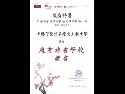 26/10/2022本校榮獲腹有詩書學校證書 -