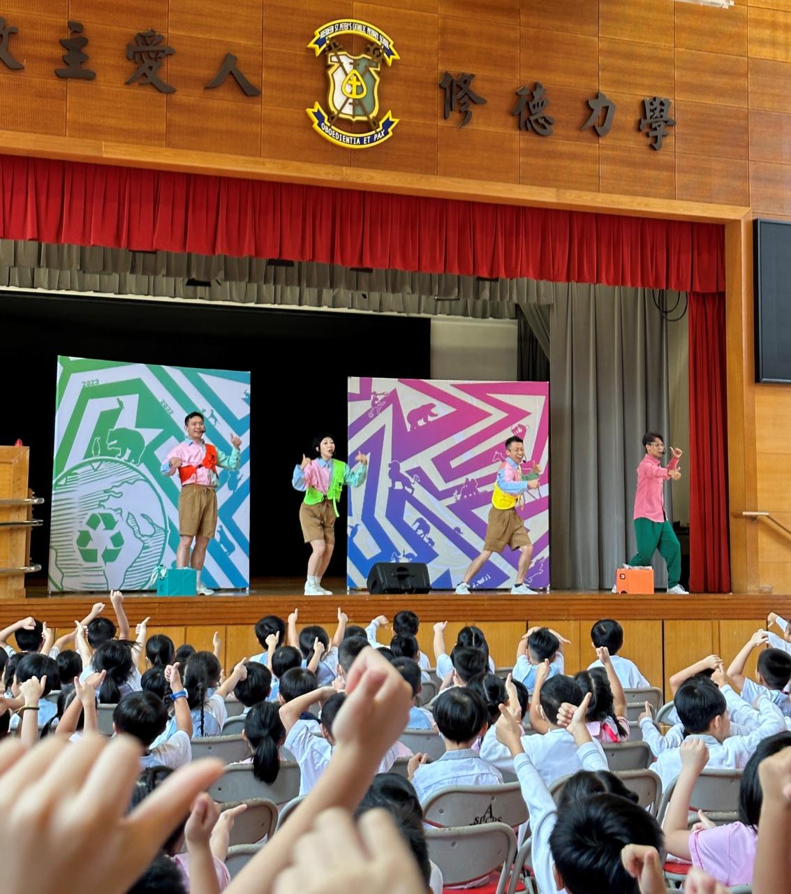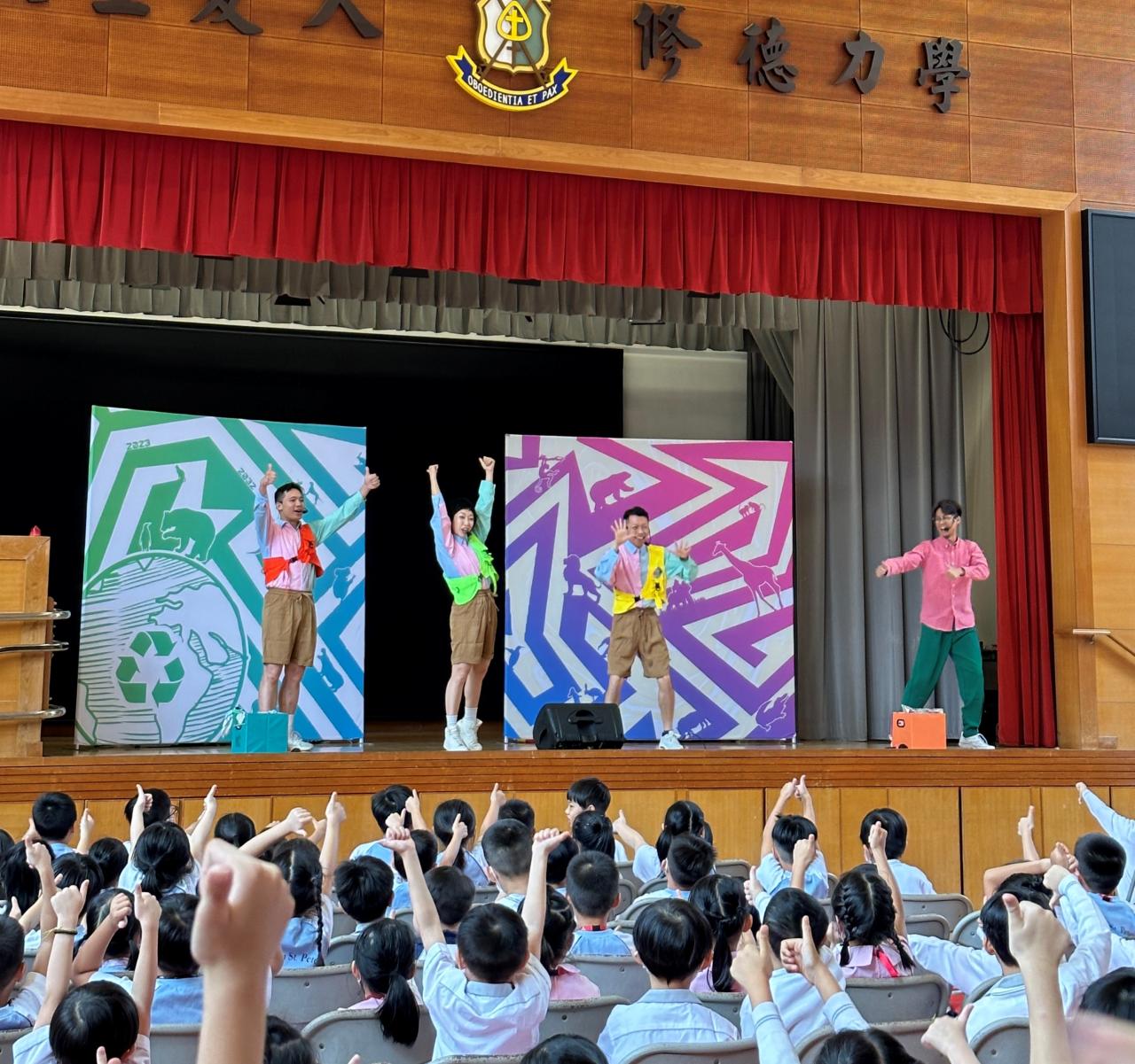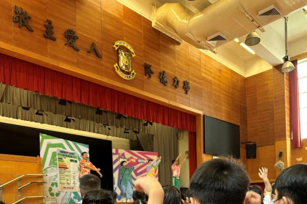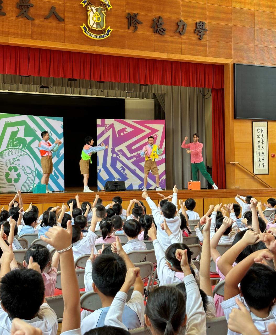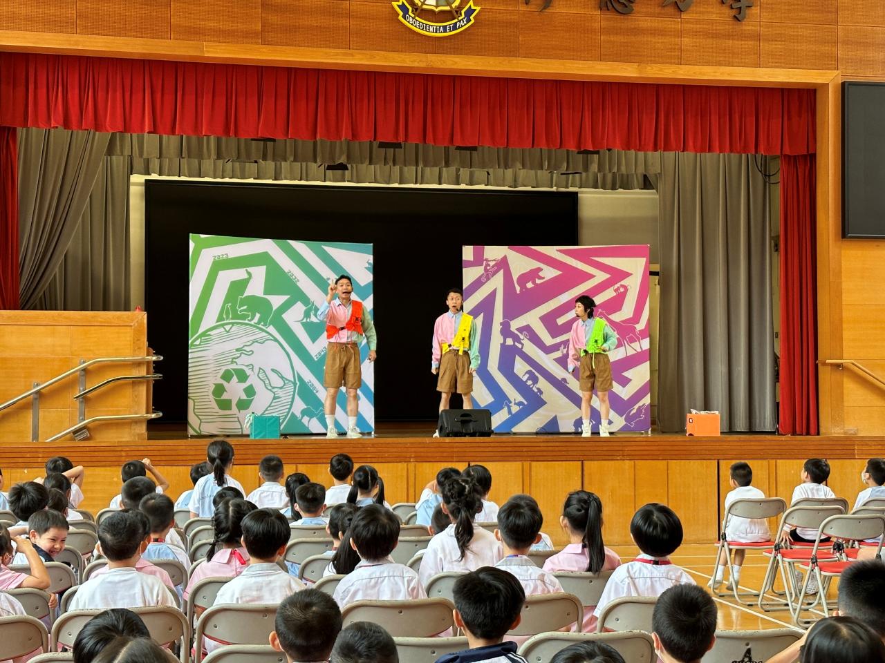 15/09/2023(五)一至三年級同學觀看了由環境及自然保育基金贊助的《節能減碳救地球》教育劇場演出。劇團除了透過劇情,還藉著歌舞、問答環節讓學生認識如何在生活中實踐節能減碳。一眾港天學生更承諾會成為「零碳小勇士」,保護大自然,愛護天主所創造的萬物。