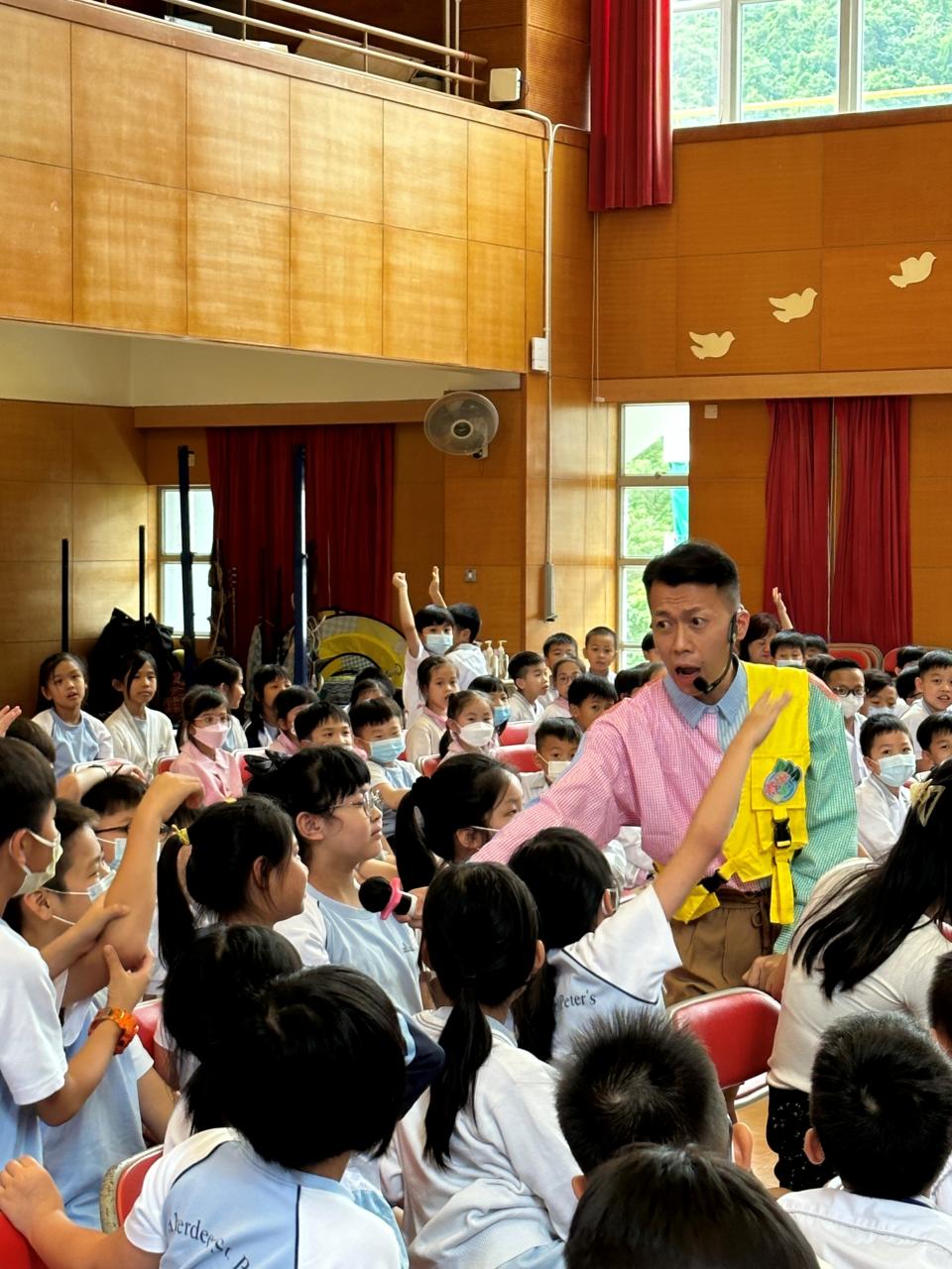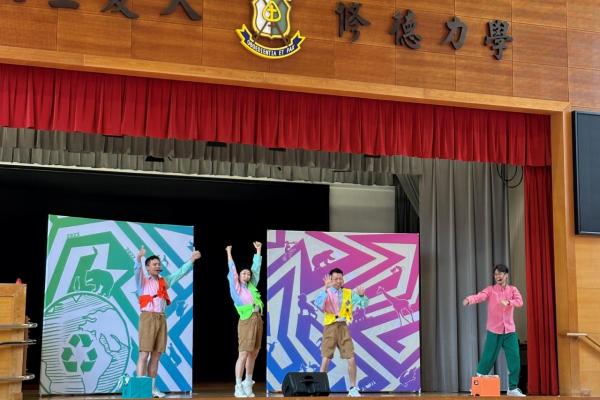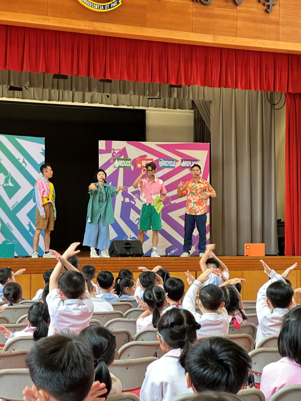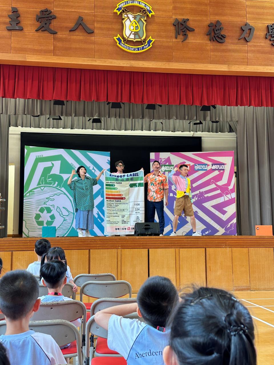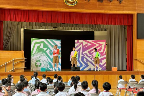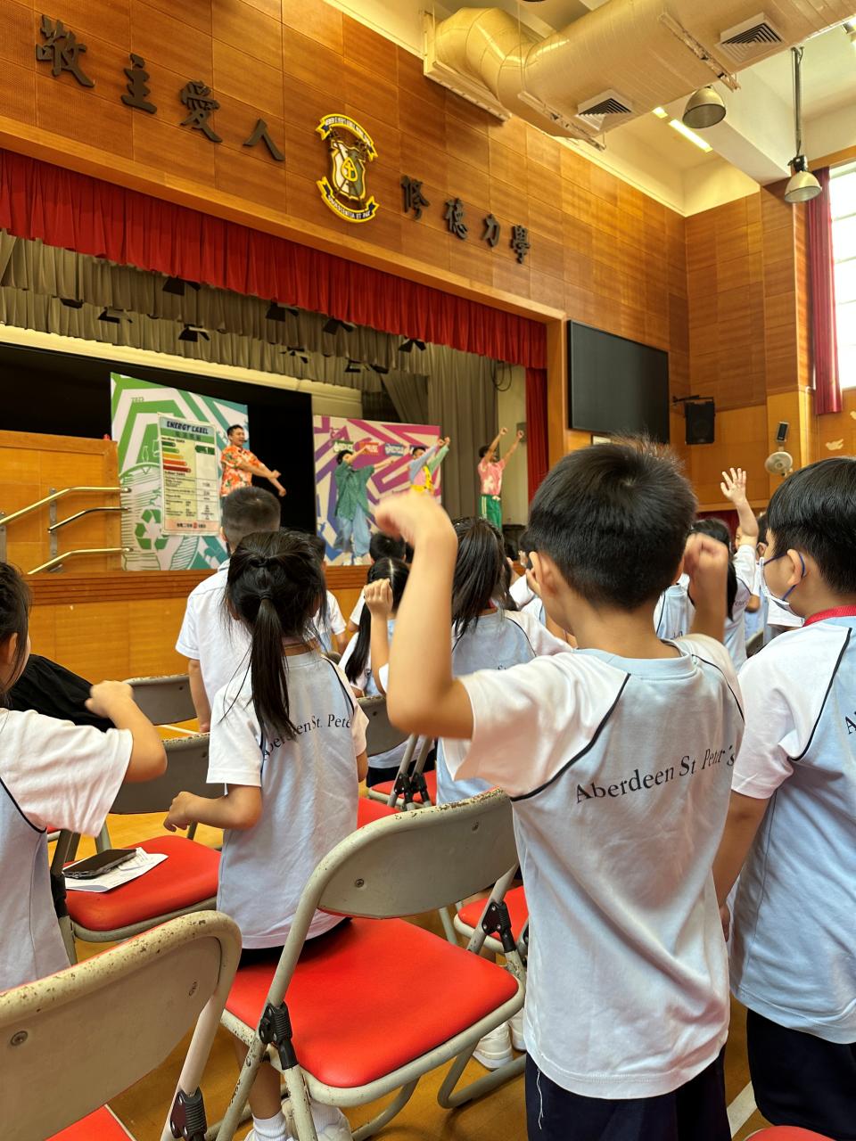 15/09/2023(五)一至三年級同學觀看了由環境及自然保育基金贊助的《節能減碳救地球》教育劇場演出。劇團除了透過劇情,還藉著歌舞、問答環節讓學生認識如何在生活中實踐節能減碳。一眾港天學生更承諾會成為「零碳小勇士」,保護大自然,愛護天主所創造的萬物。