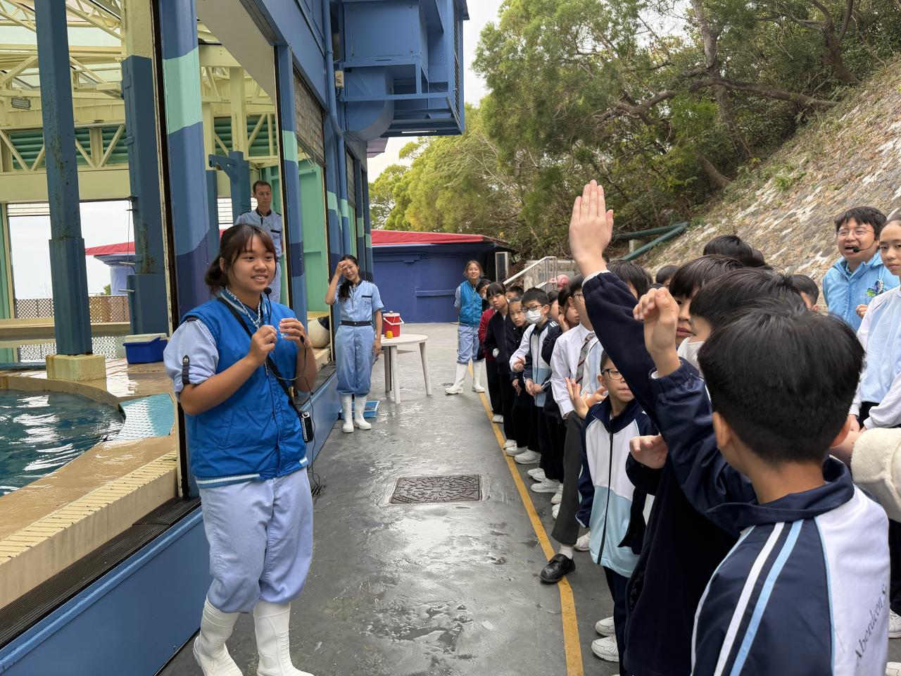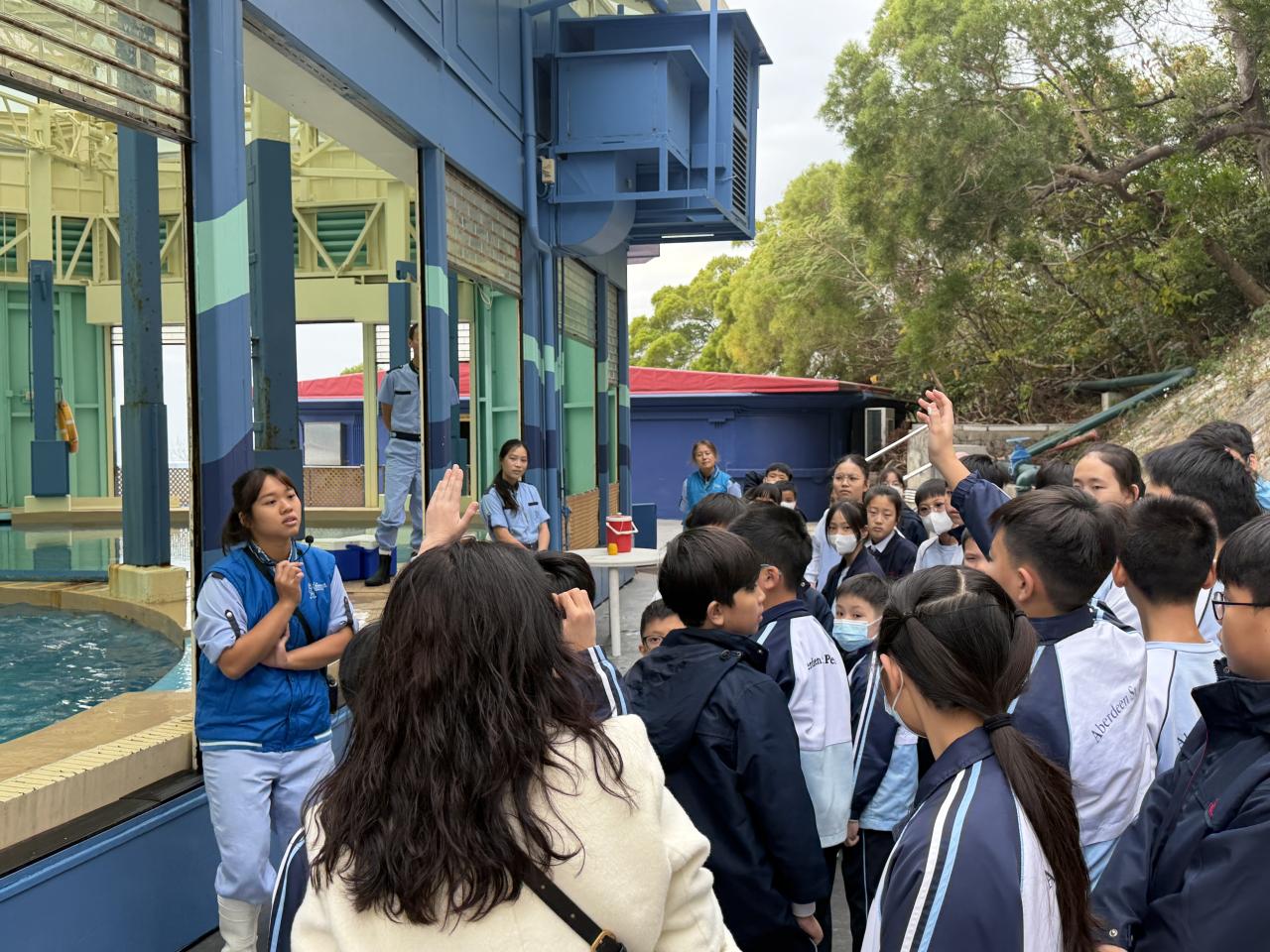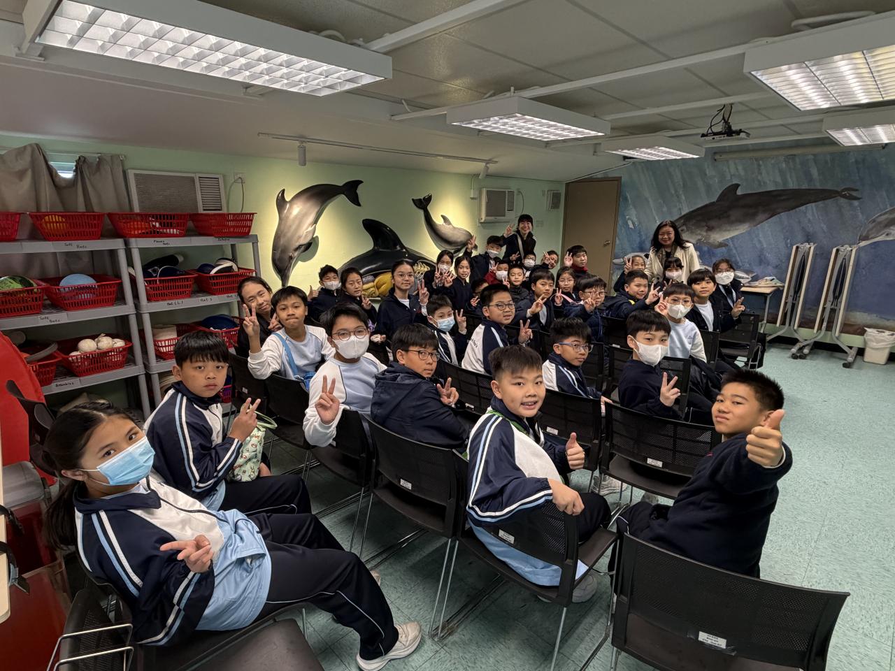 本校學生環境保護大使及小四至小六部分節能大使,前往香港海洋公園參加「搜證遊學豚」活動。同學們認識到海豚的特徵、生活習性與面臨的危機等,他們更踴躍參與搶答環節,勝出的同學贏得與海豚近距離互動的機會。活動中,大家積極向保育員提問,充滿好奇心的同學想知道海豚最長壽命、海豚智商等趣味知識。是次活動讓同學們在實踐中增長見識,了解到海豚面對的生存危機,知道要肩負起保護海洋的責任,亦會以環境保護大使及節能大使的身份,向同學們宣揚愛護環境的信息。 請觀看同學們的訪問,看看他們在這次活動的收穫。