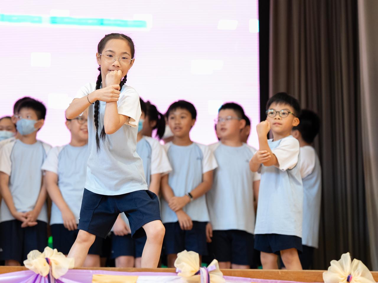 「樂動港天 Get Moving」啟動禮已於02/09/2025在本校禮堂圓滿結束。當天由四位學生擔任司儀,向全體師生介紹計劃的具體內容。侯麗珊校長、楊文健副校長、關愷慇副校長及家長教師會主席葉佩恩女士共同擔任主禮嘉賓,在啟動儀式上,一個重要的環節是嘉賓手持火炬,燃點火盆,這一舉動寓意著學生的團結與合作。 隨後,李樂恩老師與6A班學生獻唱了計劃的主題曲,而初小同學則以舞蹈形式,一同為整個啟動禮增添了無限的活力與色彩。 侯麗珊校長在致辭中,以「Get Moving」,深入淺出地闡釋了夢想與行動的關係,唯有制定周詳的計劃,並持之以恆地付諸努力才能達成目標。校長還引領全體師生齊聲朗讀了本年學習主題,「港天之星意志堅 與主偕行創新篇」,激勵著大家不斷奮進,以堅毅意志與信仰同行,開拓嶄新學習里程。